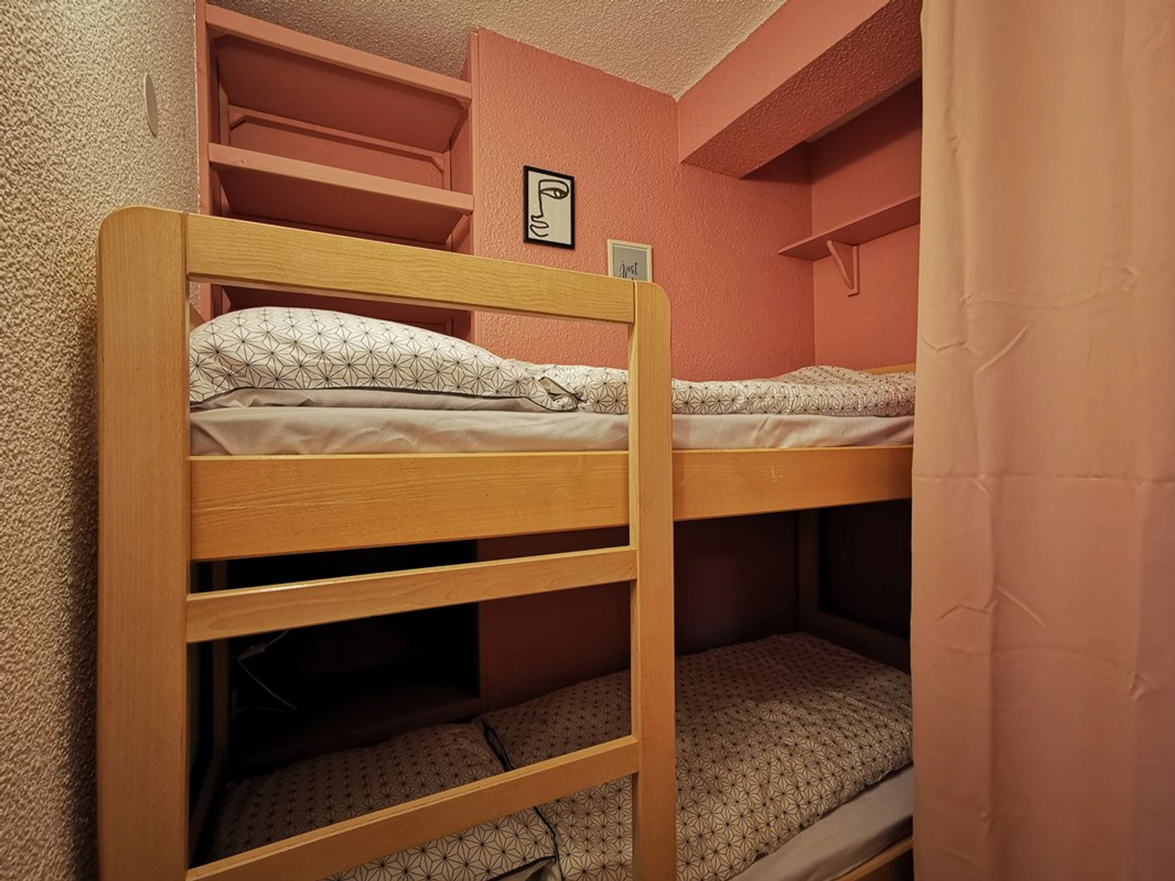 Ref:213, Résidence sécurisée à 10m de la plage de sable du Lavandou et proche du centre ville. Joli Studio Cabine pour 4 couchages, au rez de chaussée sur élevé avec un aperçu mer. Entrée avec un coin nuit: 2 lits superposés de 80 cm. (les lits superposés sont déconseillés aux enfants de - de 6 ans) Une Salle d'eau avec WC refaite à neuf. Séjour avec un lit de 140 x 190 cm, canapé, télévision écran plat. Coin cuisine avec 2 plaques électriques, Micro ondes et grand frigo + congélateur, lave vaisselle. Lave-linge, climatisation; Terrasse avec pare soleil. parking privatif N° 39