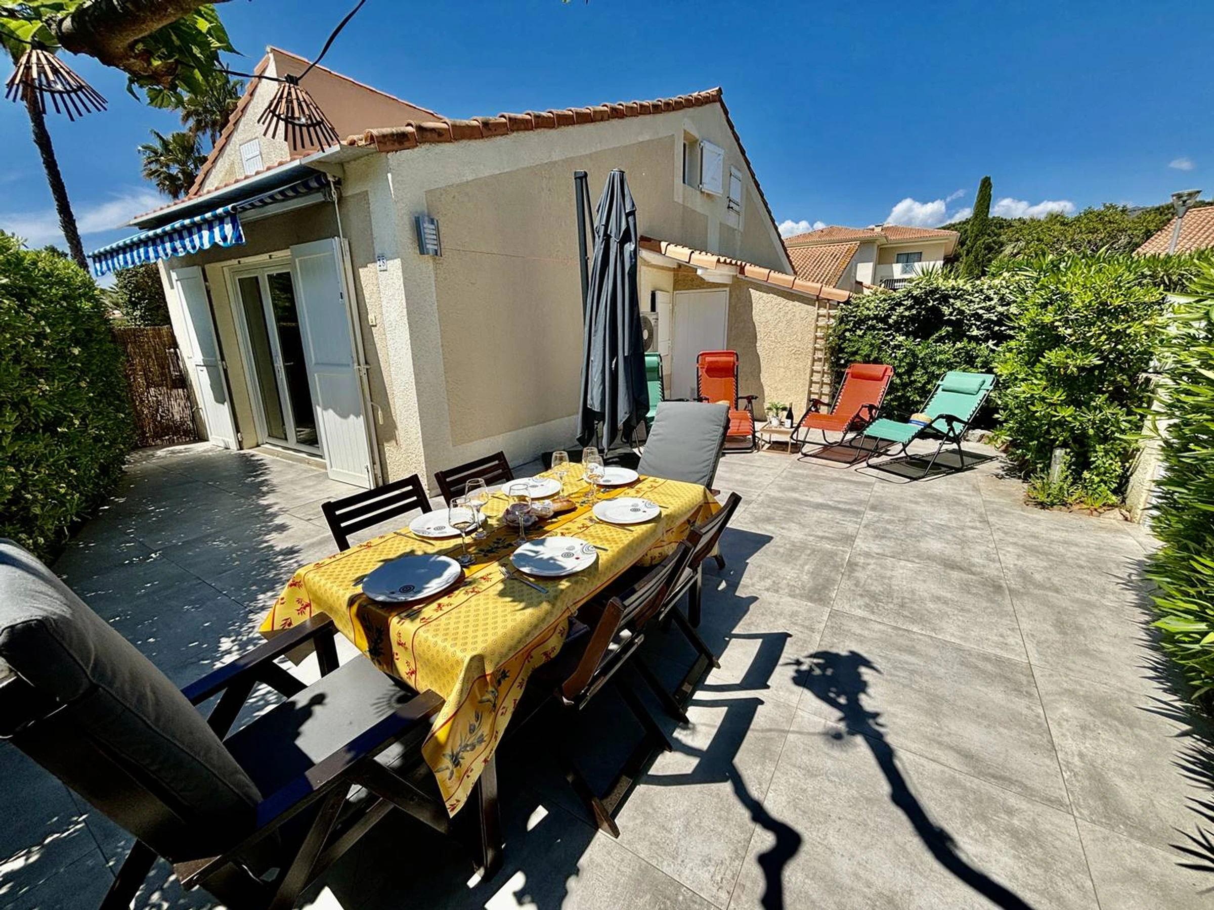 - La terrasse est parfaite pour profiter pleinement des beaux jours et de jolies repas ou apéros en famille ou entre amis.