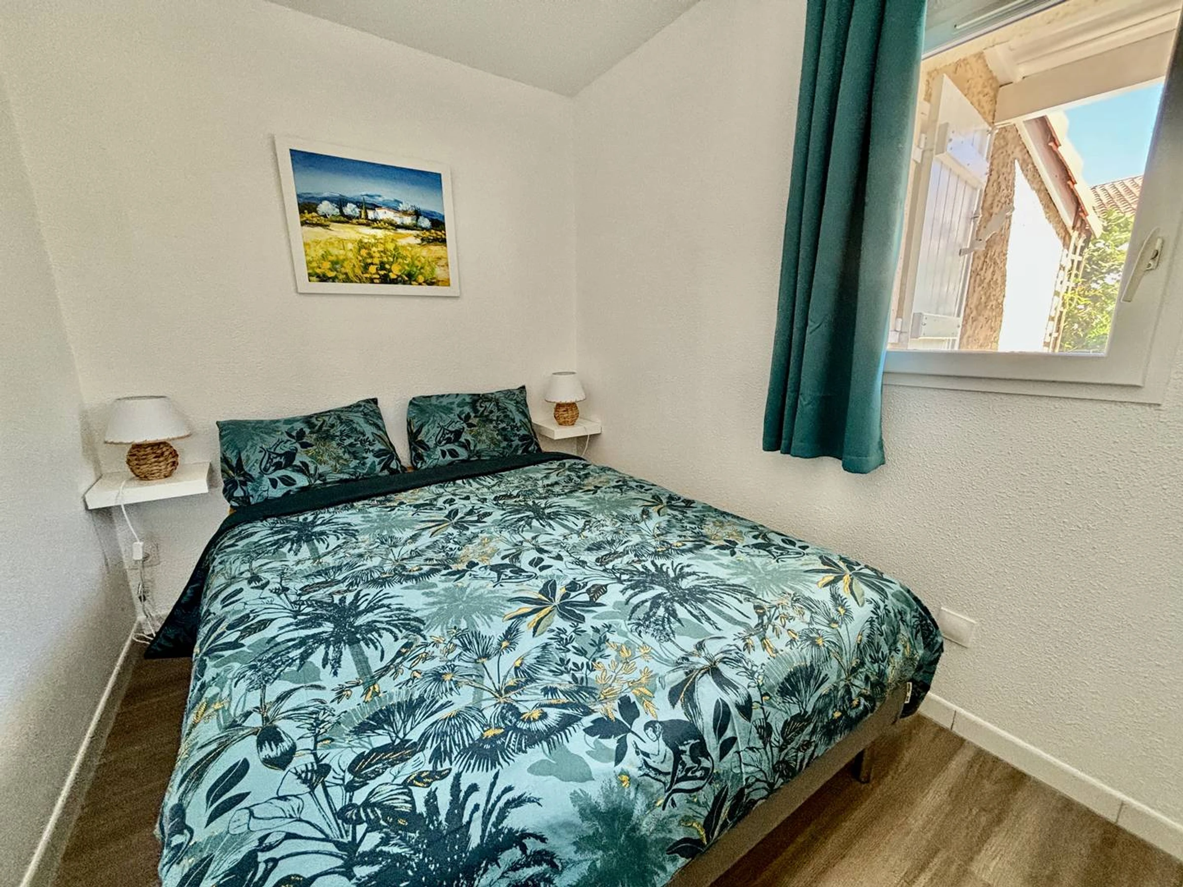 - Une chambre avec lit double en 140x190cm, fenêtre, volet battant, commodes.