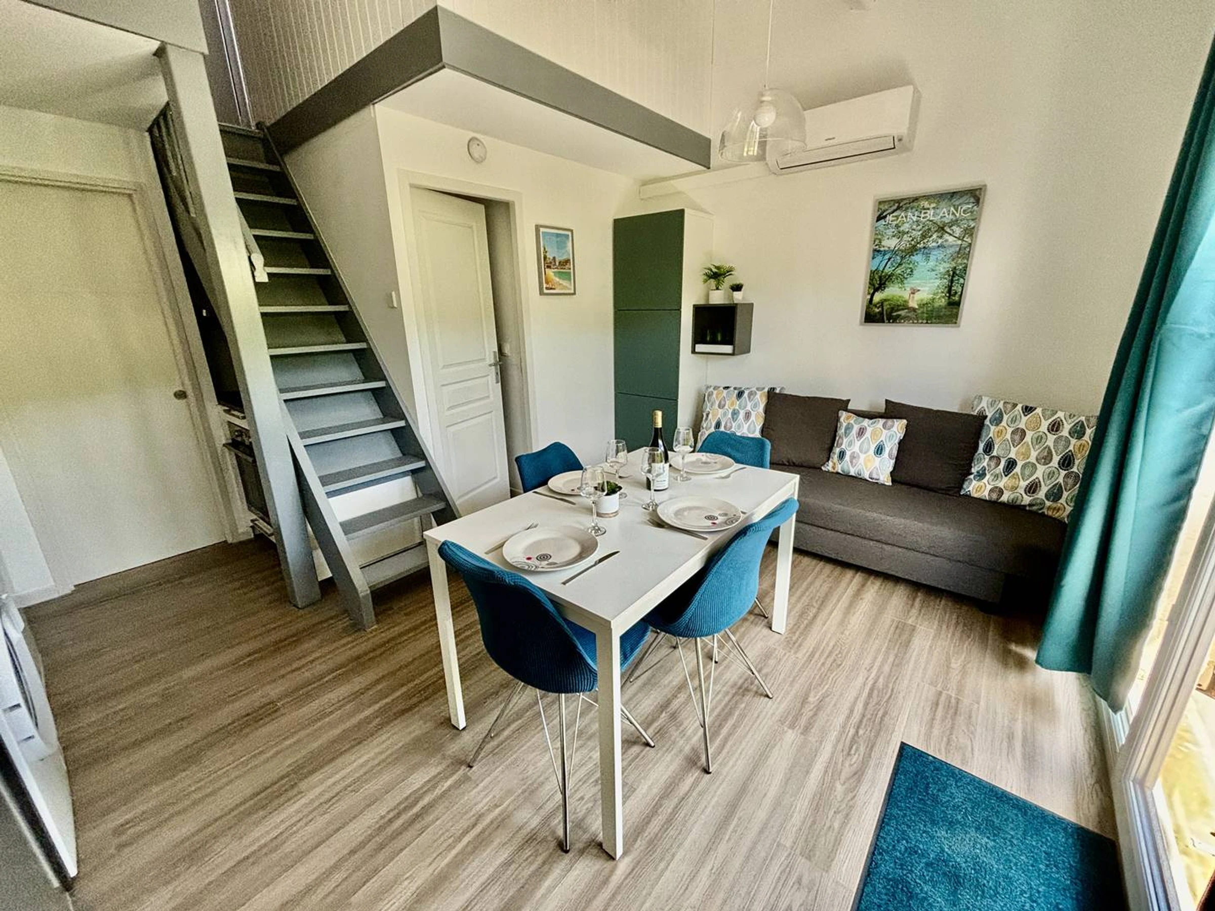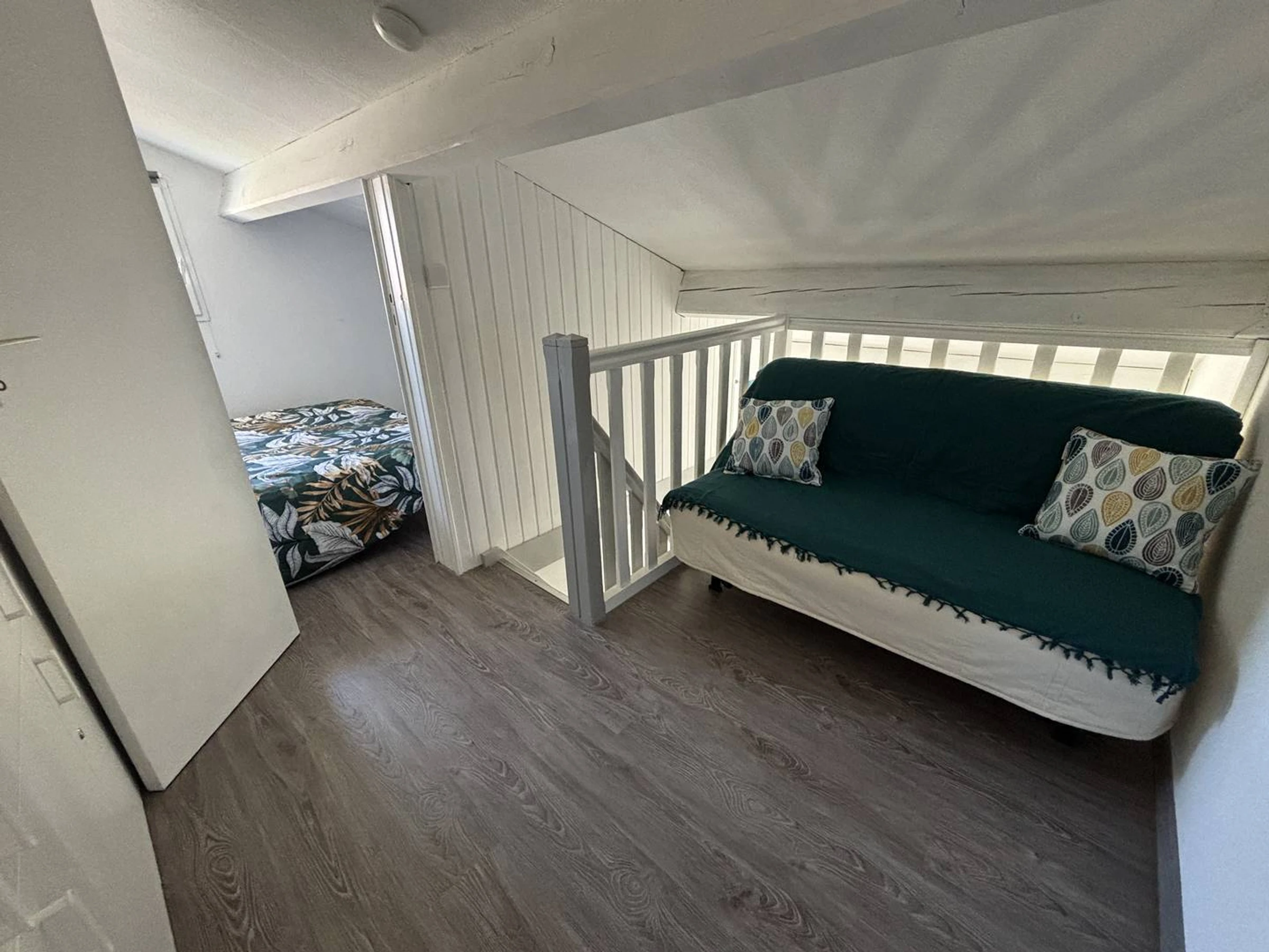 - Un coin nuit dans la mezzanine avec canapé convertible en 140x190cm, placard et penderie.