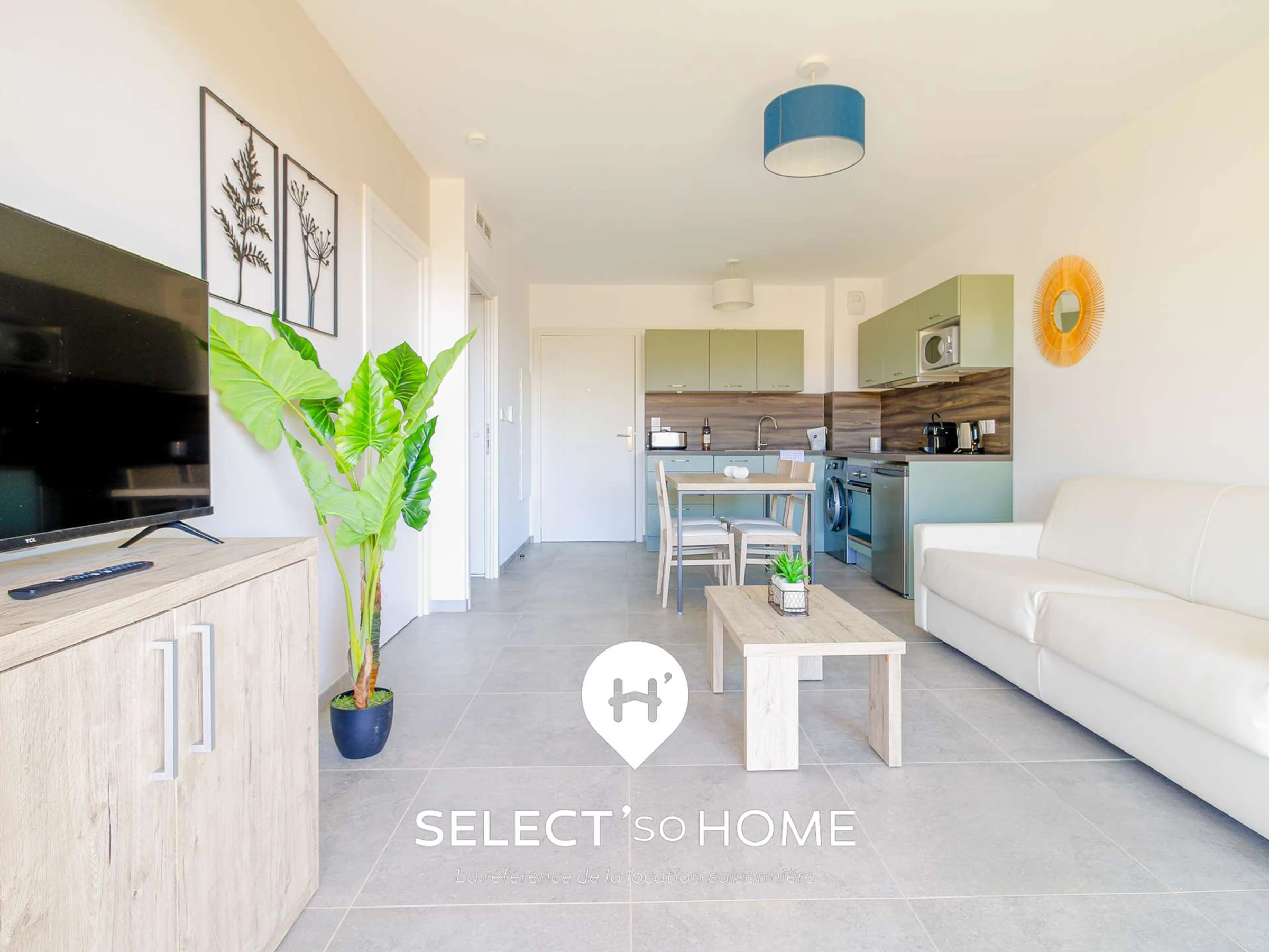 Le cœur du séjour ? Un salon généreux, où chaque recoin incite à prolonger la conversation, avec sa cuisine ouverte prête à accueillir la recette secrète des vacances (celle qui finit par un deuxième dessert). Le canapé convertible, grand comme un nuage, attend les histoires du soir. Ouvrez les baies vitrées, et c’est un jardin de 40m² plein sud qui s’offre à vous : petit-déjeuner dehors, coucher de soleil, lecture sans bruit (juste le chant des cigales). La chambre attenante, douce comme une sieste à l’ombre, donne elle aussi sur ce jardin baigné de lumière. La salle d’eau, minimaliste et chic, promet qu’en 5 minutes chrono, tout le monde est prêt à partir pour la plage.