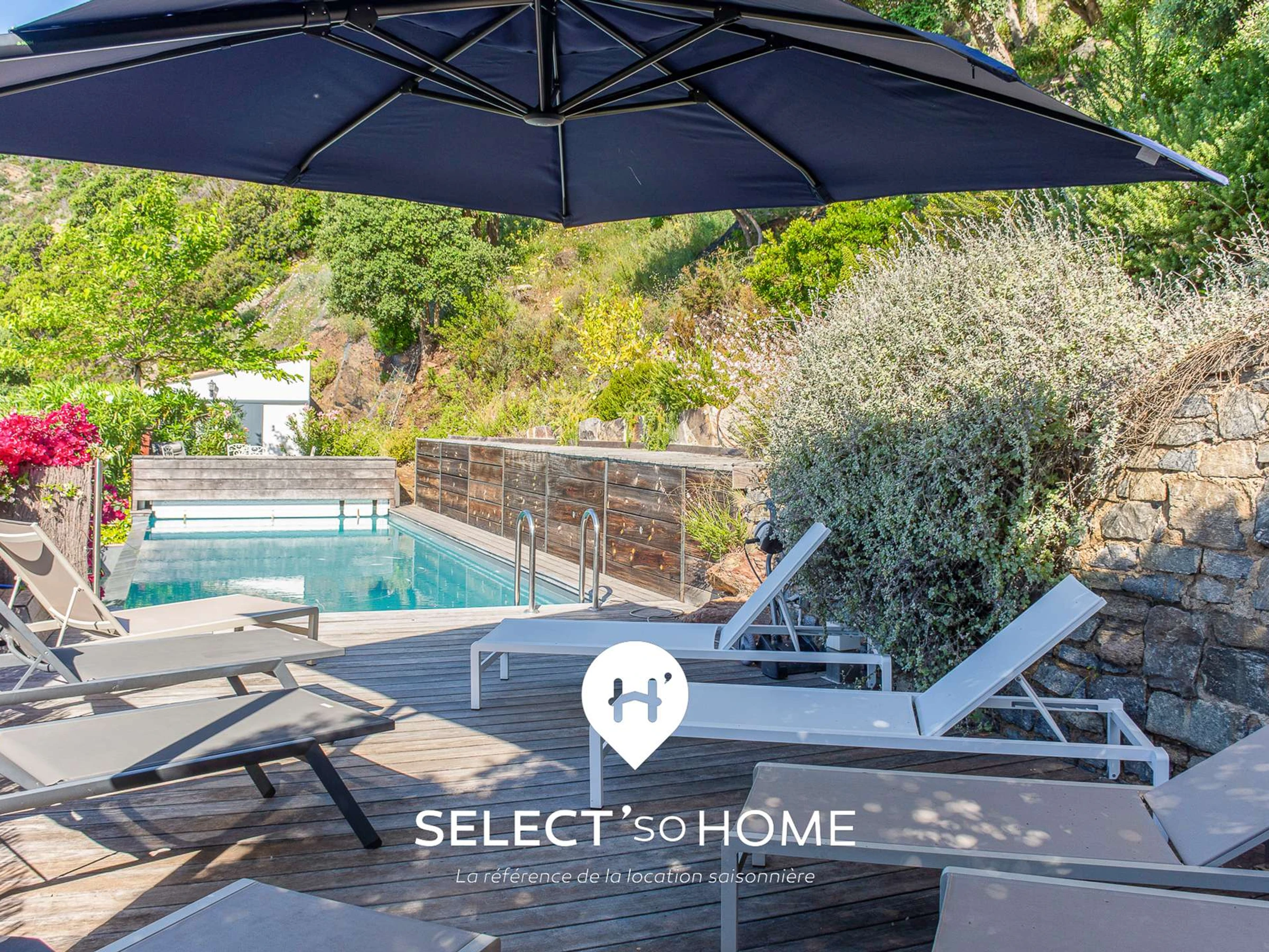 Le jardin est un petit théâtre méditerranéen où les parfums d’herbes aromatiques se mêlent aux embruns. Quelques marches plus bas, la piscine à débordement devient votre nouvelle addiction : superbe terrasse en bois, transats parfaitement orientés, eau turquoise qui se confond avec l’horizon. Baignade du matin, sieste à l’ombre, apéro au coucher du soleil… Chaque moment trouve naturellement sa place, comme si le décor l’avait anticipé.