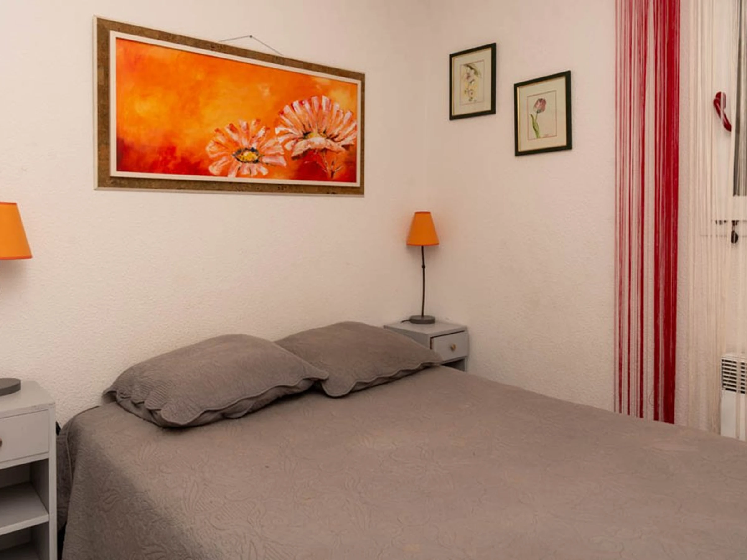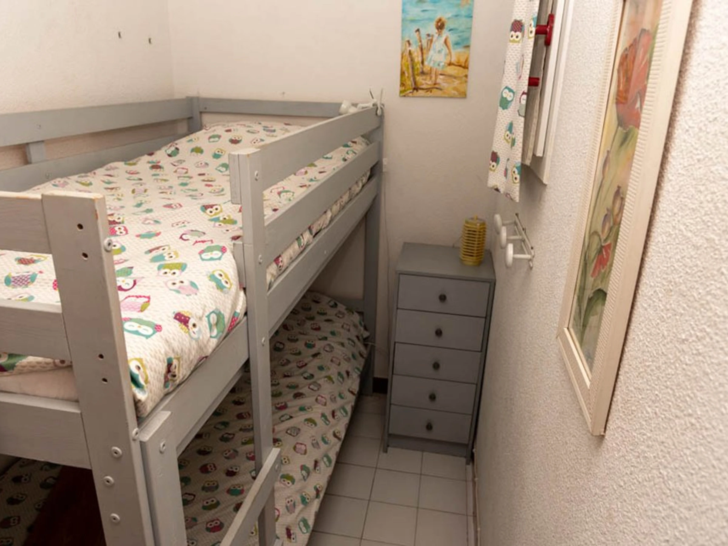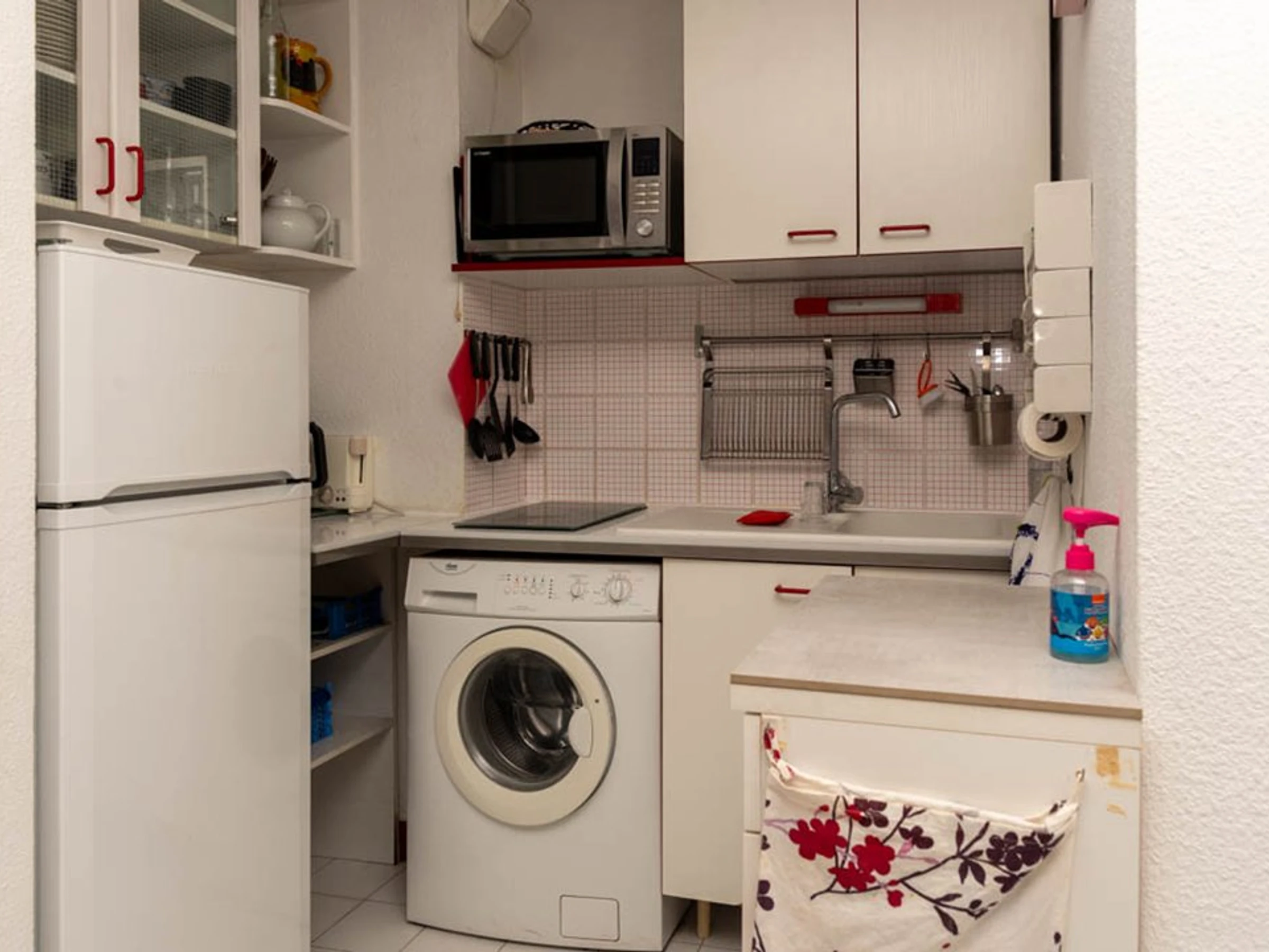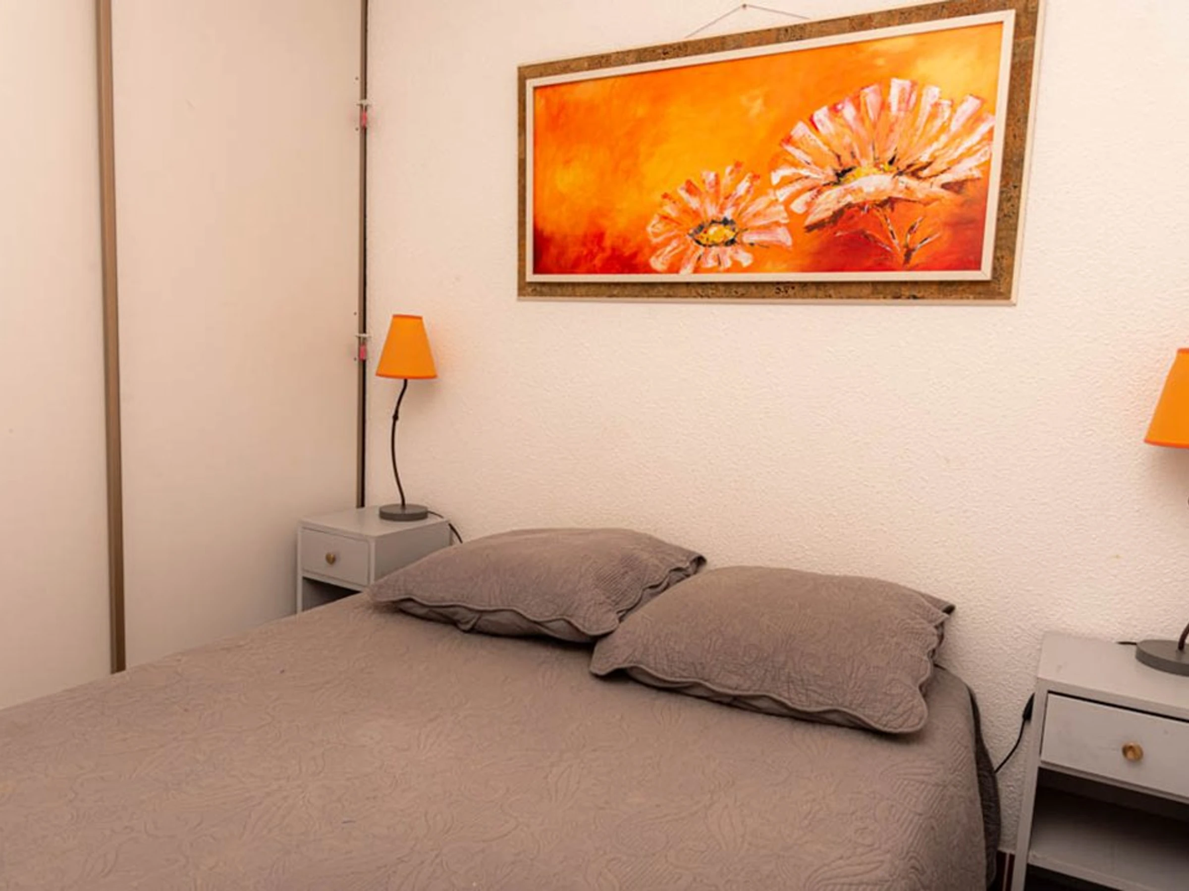 Entrée, placard + penderie, séjour ouvert sur terrasse équipée de 6m² vue rue, un canapé convertible 2 places; coin cuisine tout équipé (2 plaques vitrocéramiques, frigo+congélateur, four/MO, lave linge). Une chambre avec lit de 140x190 cm, un coin nuit avec 2 lits superposés de 90x190 cm, une salle d'eau + wc . TV. Parking privé n°249. Piscine collective ouverte de juin à septembre. barbecues et planchas interdits