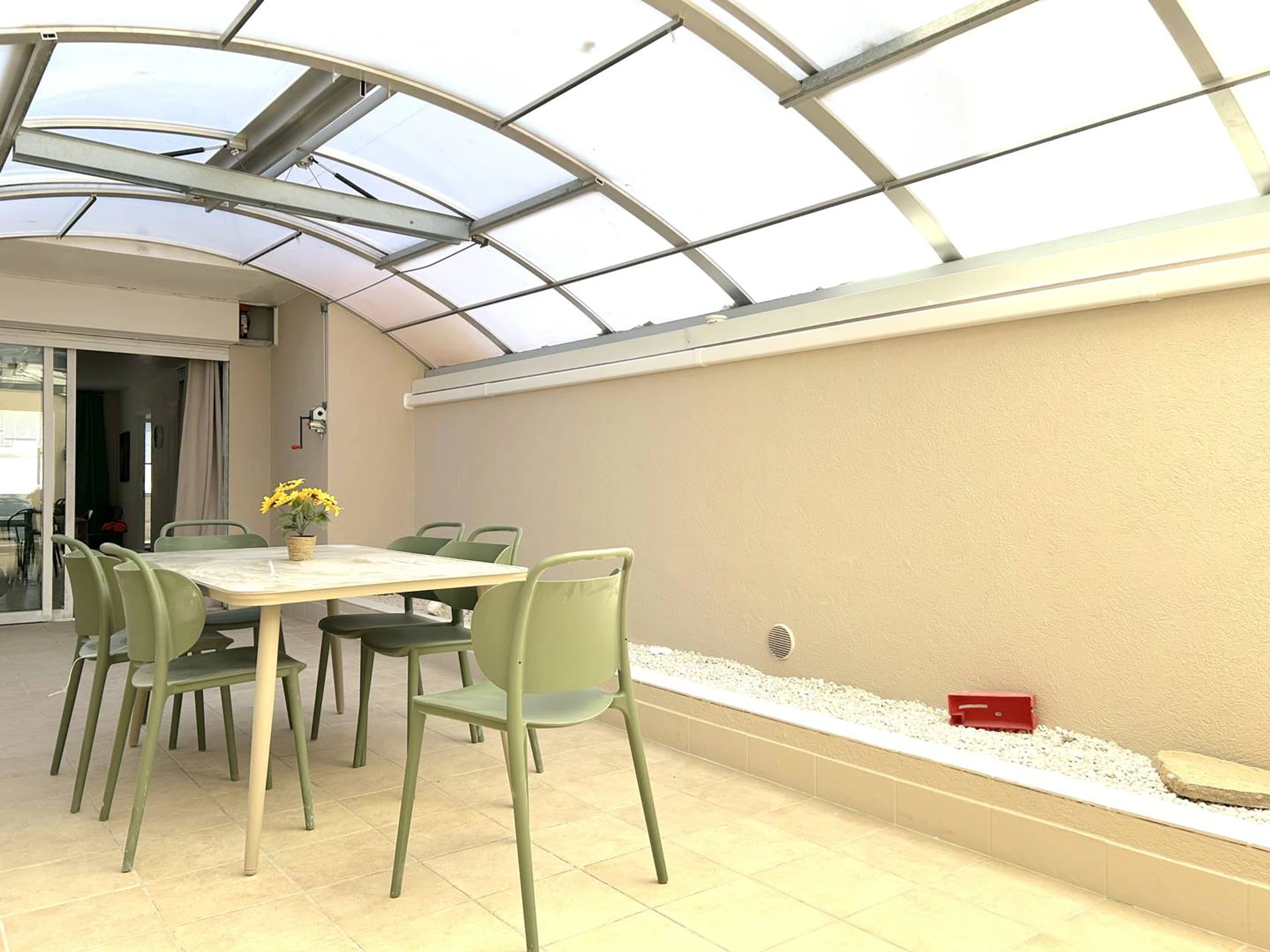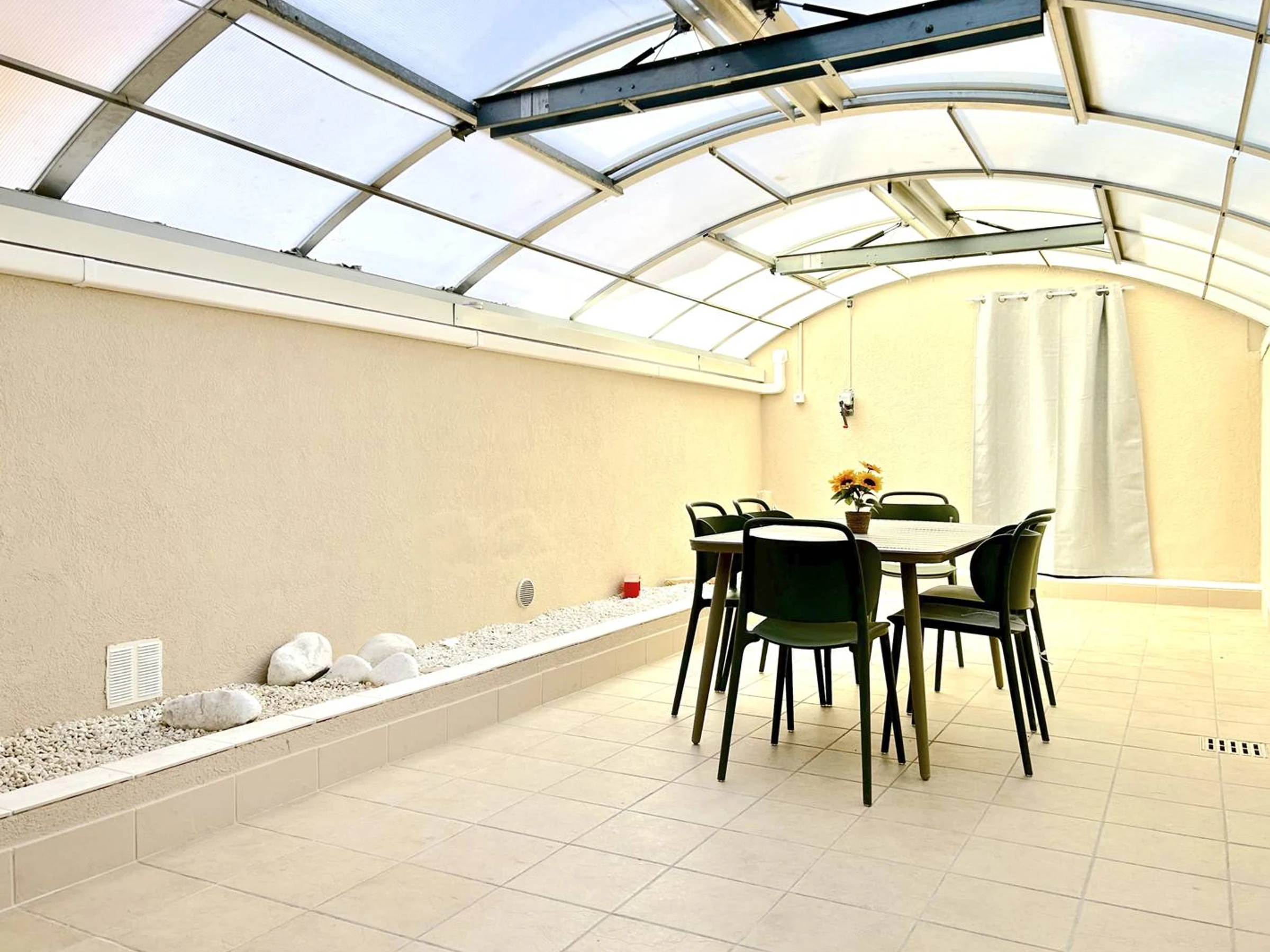En annexe, au bout de la verrière, un coin nuit disposant de deux lits en 80 avec sa salle d'eau et WC.