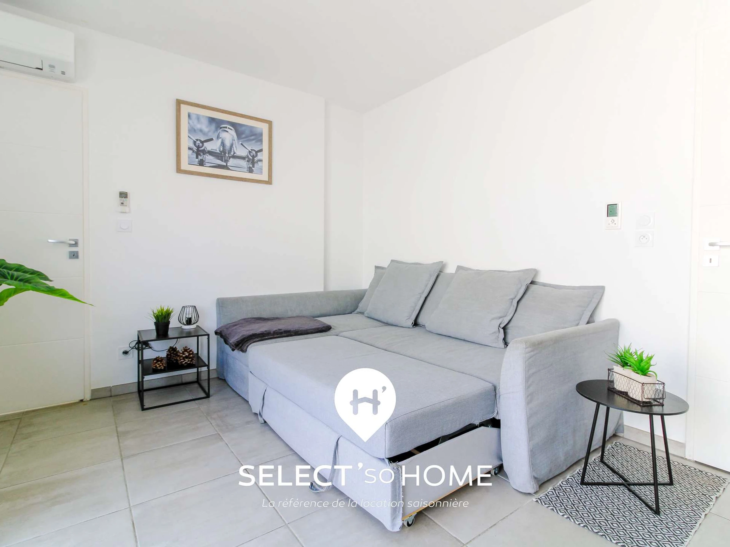 Ce n’est pas juste un appartement, c’est une invitation à la détente. La pièce de vie est équipé d’ une cuisine ouverte, un coin repas convivial et un salon avec canapé convertible (parfait pour les siestes improvisées).