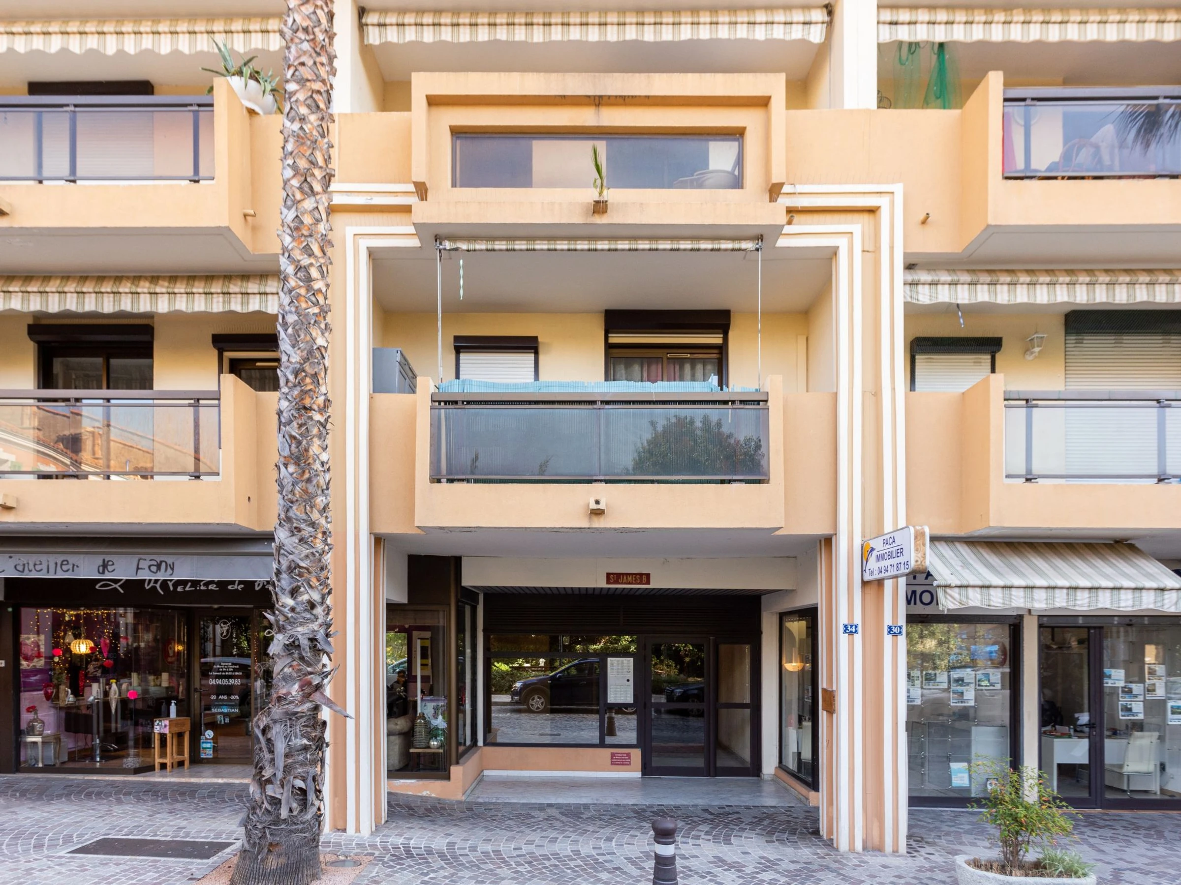 Commerces au rez-de-chaussée de l'immeuble. Immeuble "Saint James", de 7 étages, année de construction 1980. Au centre de Lavandou, situation centrale, animée, à 200 m de la mer, à 200 m de la plage. Infrastructures de la résidence: ascenseur. Parking public 200 m. Magasins 80 m, magasin d'alimentation 100 m, supermarché 900 m, restaurant, bar, boulangerie, café 50 m, cyber café 100 m, arrêt de bus "Lavandou Gare routière" 150 m, gare ferroviaire "Hyeres" 25 km, plage de sable "du Lavandou" 200 m, plage aménagée 500 m. Port plaisance 500 m, ecole de voile 600 m, tennis 500 m, golf miniature 1 km. Attractions à proximité: Magic World 27 km, Jardin Olbus Riquier 23 km, St Tropez 37 km, Le Jardin des Méditerranées 15 km. Région de randonnées: Sentiers du Littoral. La remise des clés a lieu à l’agence de Le Lavandou.