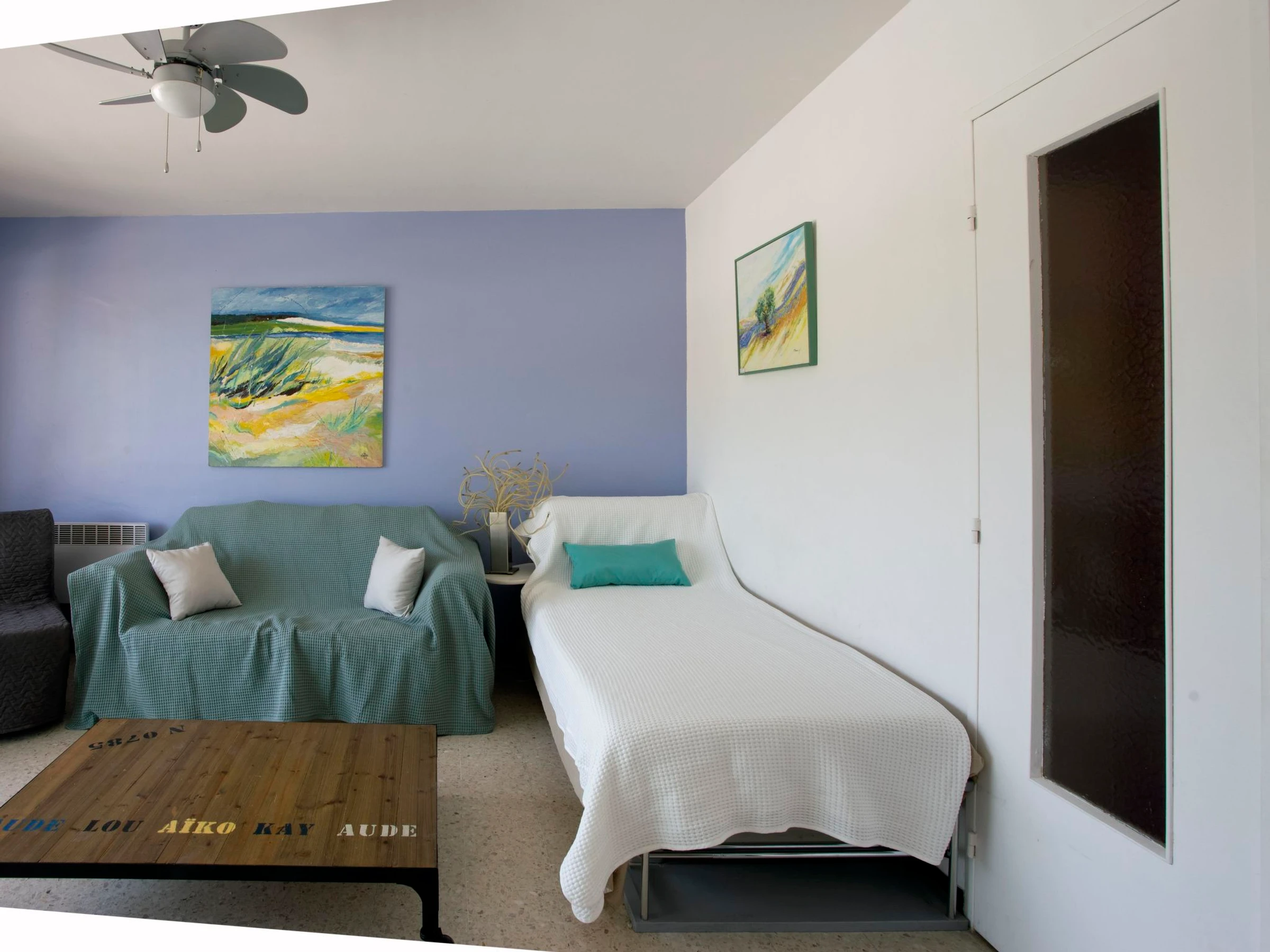 Apt 2 pièces 45 m2 au 3ème étage. Clair, aménagement confortable: séjour/salle à manger avec 1 divan-lit double (140 cm, longueur 190 cm), TV (écran plat). Sortie sur la terrasse. 1 chambre avec 1 grand-lit (140 cm, longueur 190 cm). Sortie sur la terrasse. Cuisine (4 plaques de cuisson, four, grille-pain, bouilloire électrique, four micro-ondes, congélateur, cafetière électrique). Douche/WC. Chauffage électrique. Terrasse 10 m2, situation nord. Vue latérale sur la mer. A disposition: lave-linge, sèche-cheveux. Internet (Connexion WIFI, en sus). Place de parking No 7. Veuillez noter: logement côté rue. Logement non-fumeur. TV seulement FR. Détecteur de fumée. [hidden]