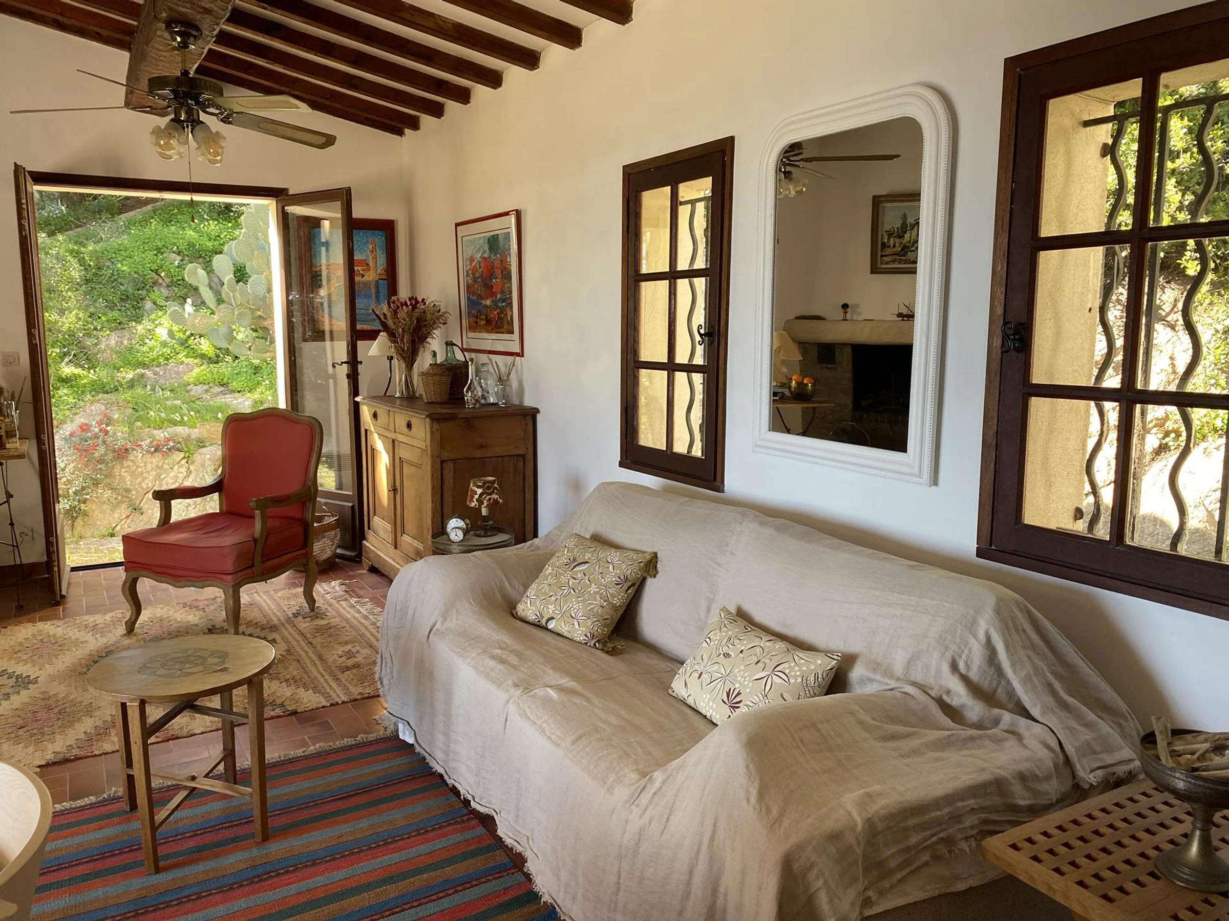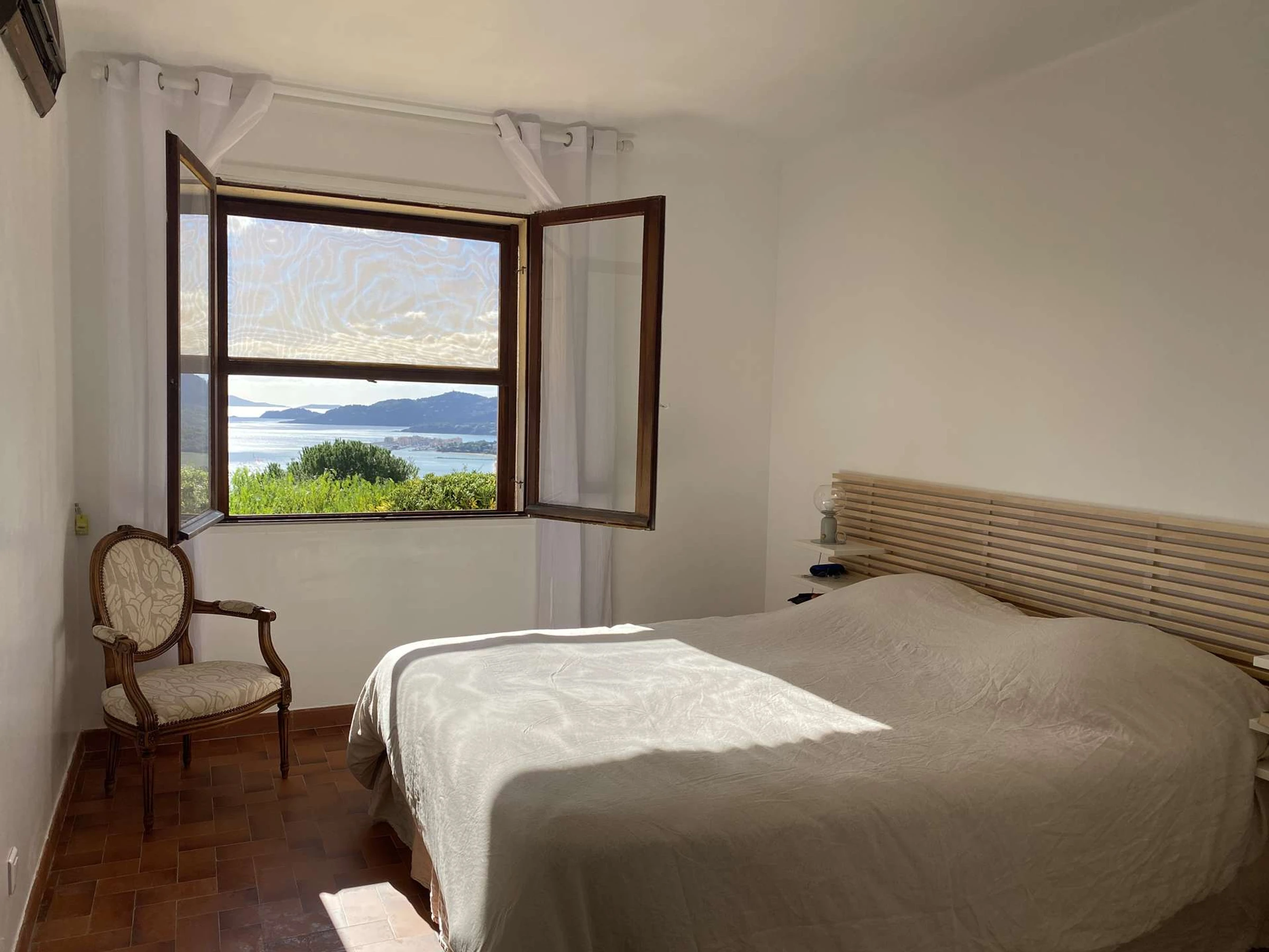 L'entrée de la villa se fait par la cuisine, qui est entièrement équipée. Le salon-séjour s'ouvre sur une terrasse orientée plein sud, offrant une vue exceptionnelle sur la mer. Ce spacieux espace de vie comprend également un canapé-lit pouvant accueillir deux personnes. Un couloir mène aux différentes pièces de la villa, comprenant une salle de bains, des WC séparés, ainsi qu'une chambre climatisée avec un lit double et une seconde chambre climatisée dotée de deux lits d'une place puis petite chambre avec un lit superposé.