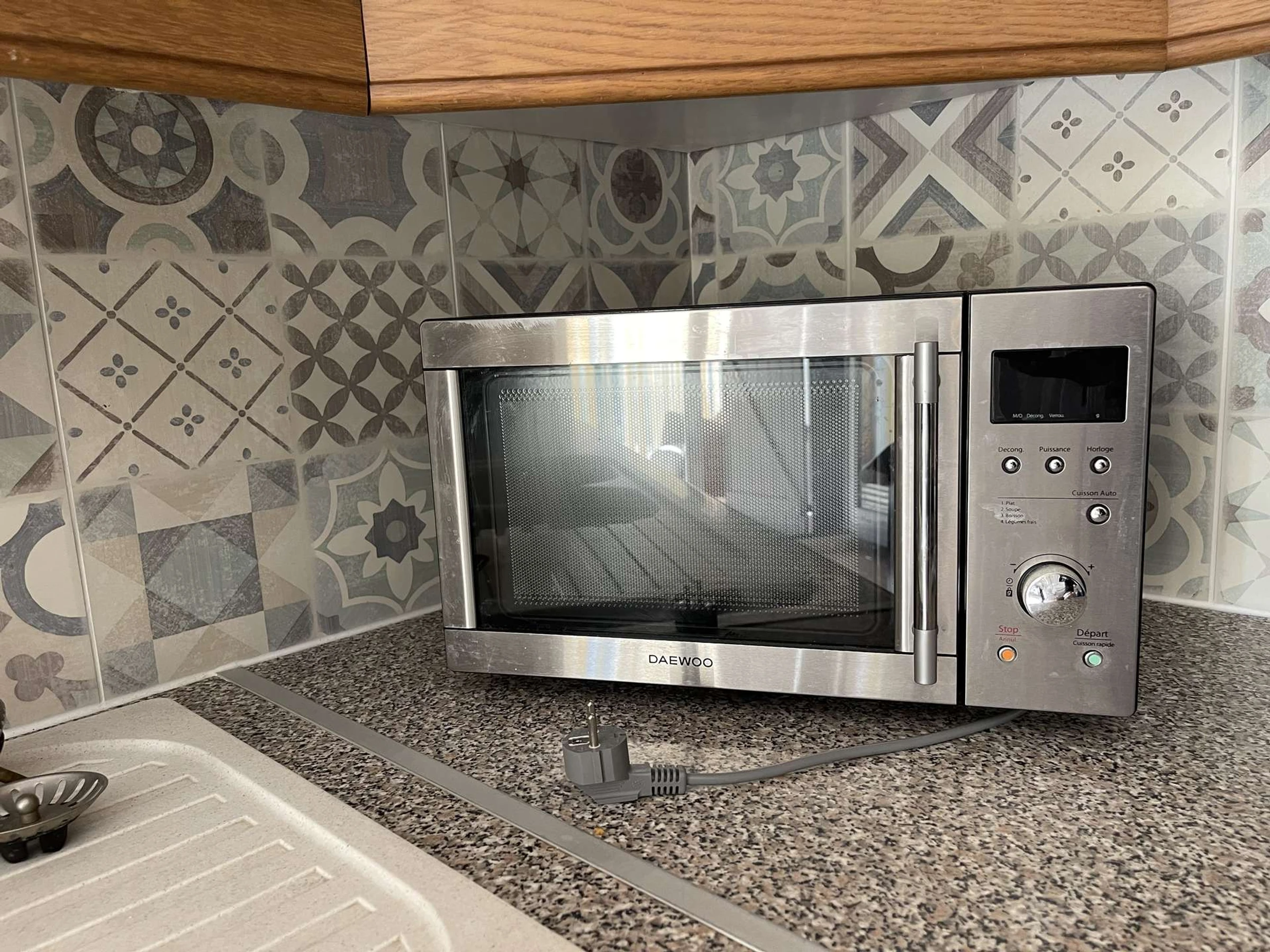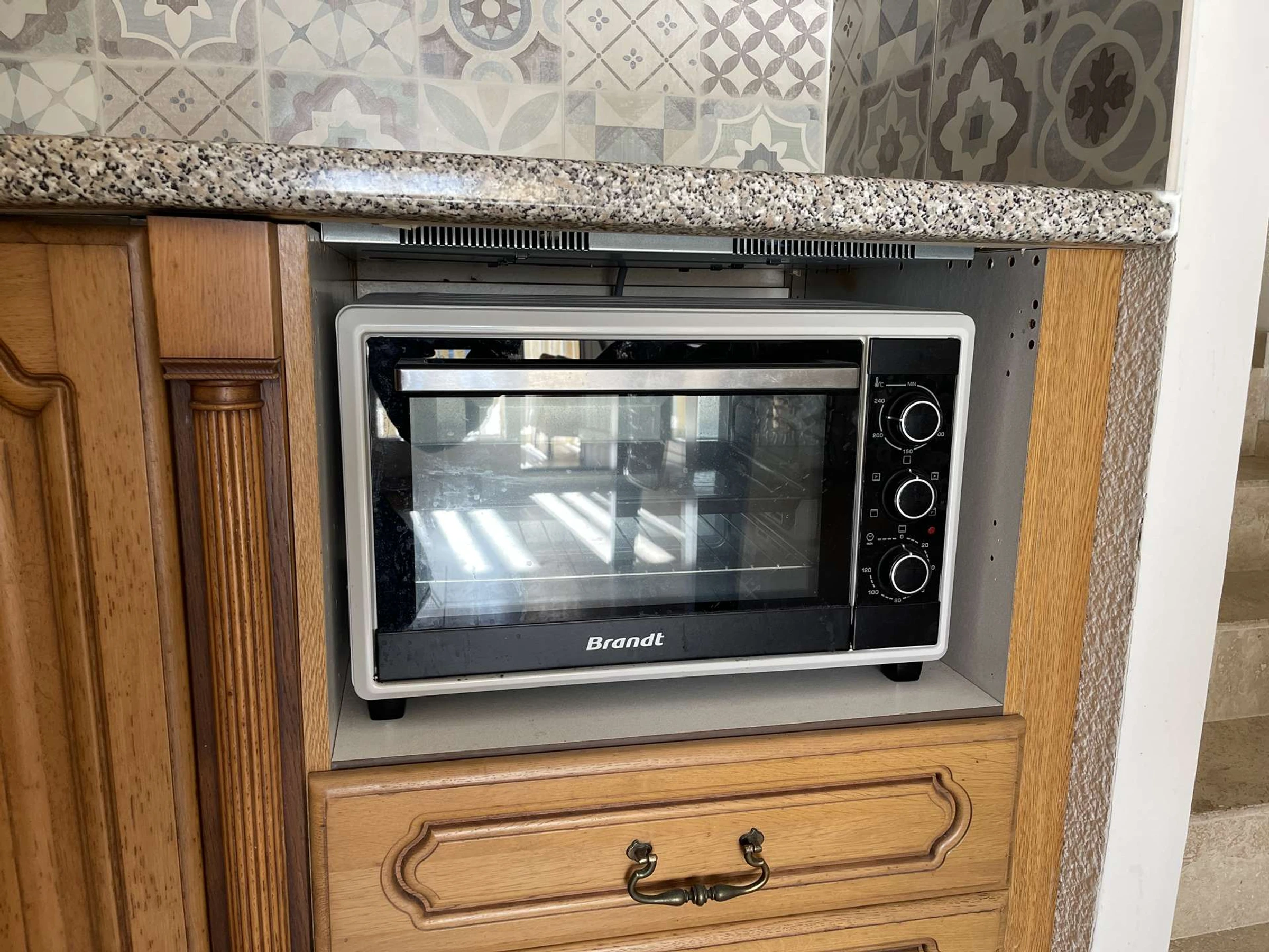 La cuisine, entièrement équipée, comprend des placards de rangement, une plaque de cuisson à induction, un réfrigérateur-congélateur, un four, un micro-ondes, un évier double et un lave-vaisselle. Elle est agrémentée d'une table avec 4 chaises pour vos repas en famille. Le salon, spacieux et convivial, dispose de deux canapés fixes, d'une table basse et d'une TV. Une véranda avec meuble de rangement offre un espace supplémentaire pour profiter de la lumière naturelle.
