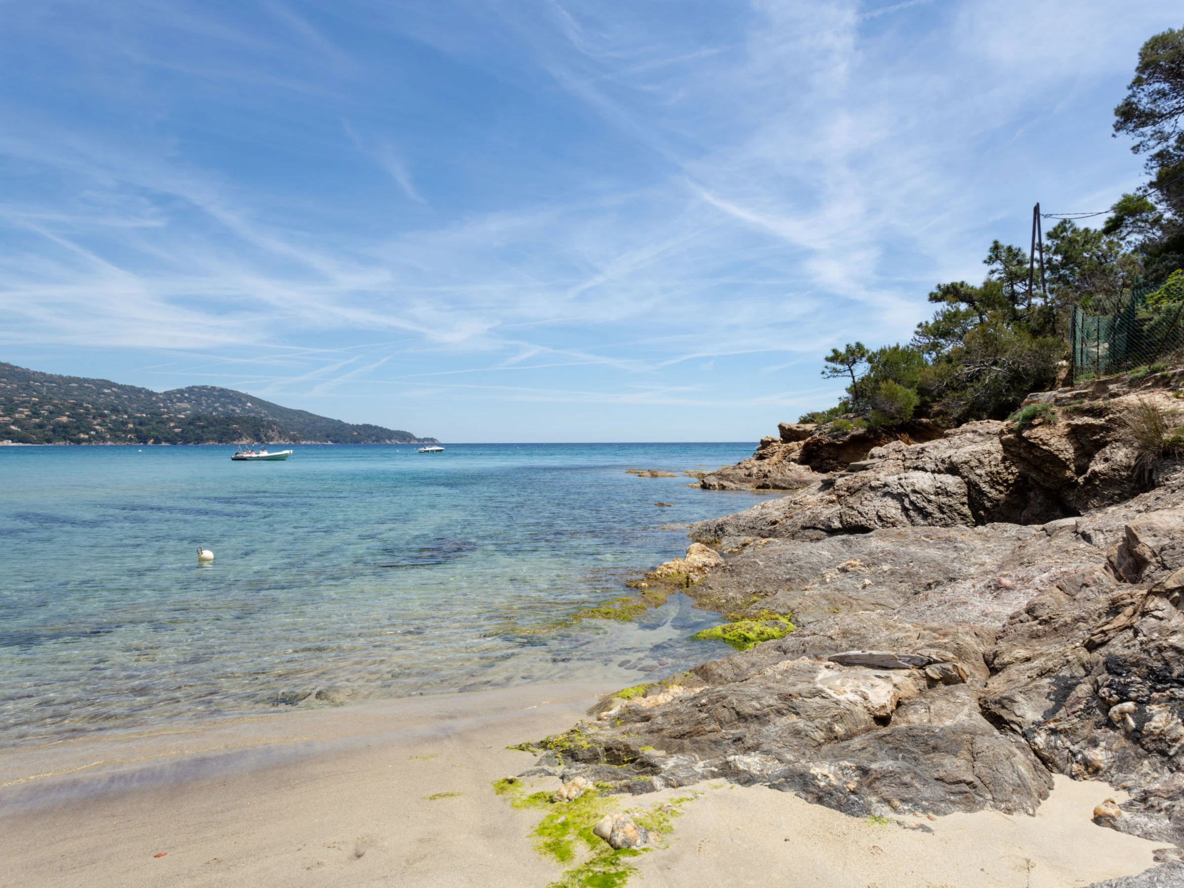 Pramousquier à 8 km de Le lavandou: Belle résidence accueillante, confortable "Cap Négre: Domaine de la Pinède", mitoyenne, environnée par les arbres. À 100 m de la mer, accès direct à la plage. En commun: jardin entretenu (pas clôturé) avec plantes et fleurs, piscine chauffée, à l'abri des regards, cloturée (17 x 9 m, profondeur 55 - 260 cm, disponibilité saisonnière: [hidden] - [hidden] Douche extérieure, terrain de pétanque. Infrastructures de la résidence: lave-linge (en commun, en sus). Sentier en escalier jusqu'à la maison. Place de parking. Magasin d'alimentation 2 km, supermarché 8 km, restaurant 500 m, arrêt de bus "Lavandou Gare routière" 6 km, plage de sable "de Pramousquier" 100 m. Port plaisance 8 km. Veuillez noter: la remise des clés a lieu à l’agence de Le Lavandou, 9 km. D’autres appartements sont également proposés à la location dans cette maison de vacances.