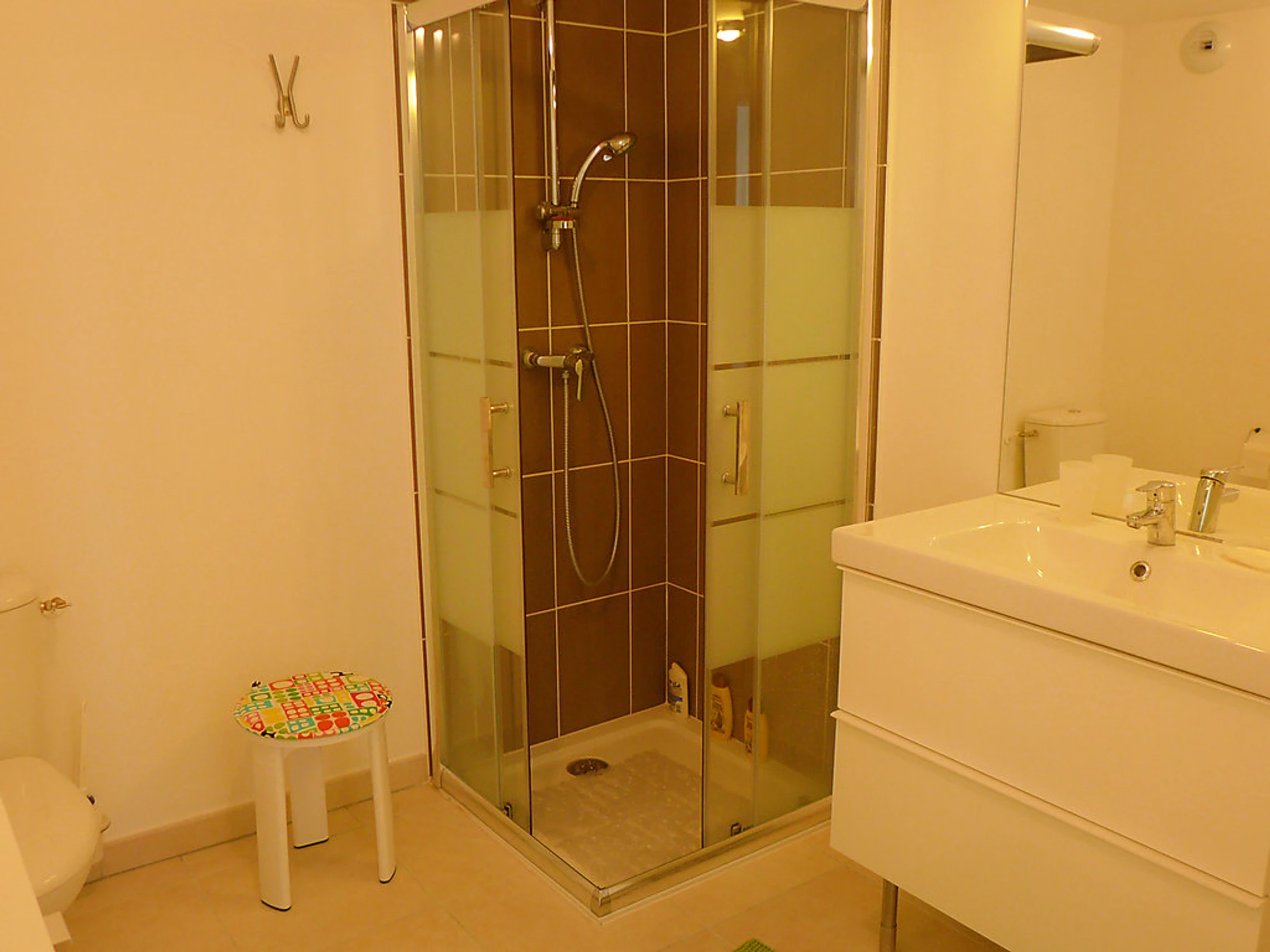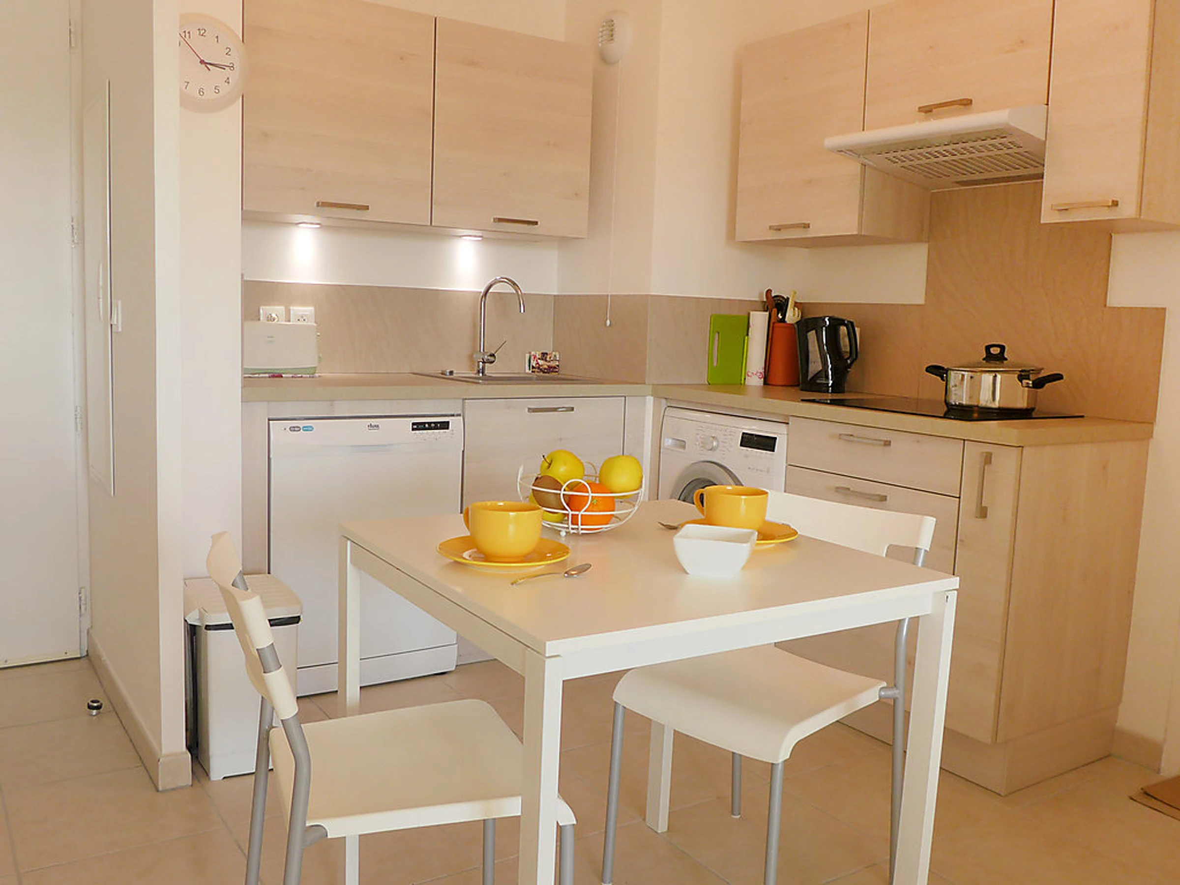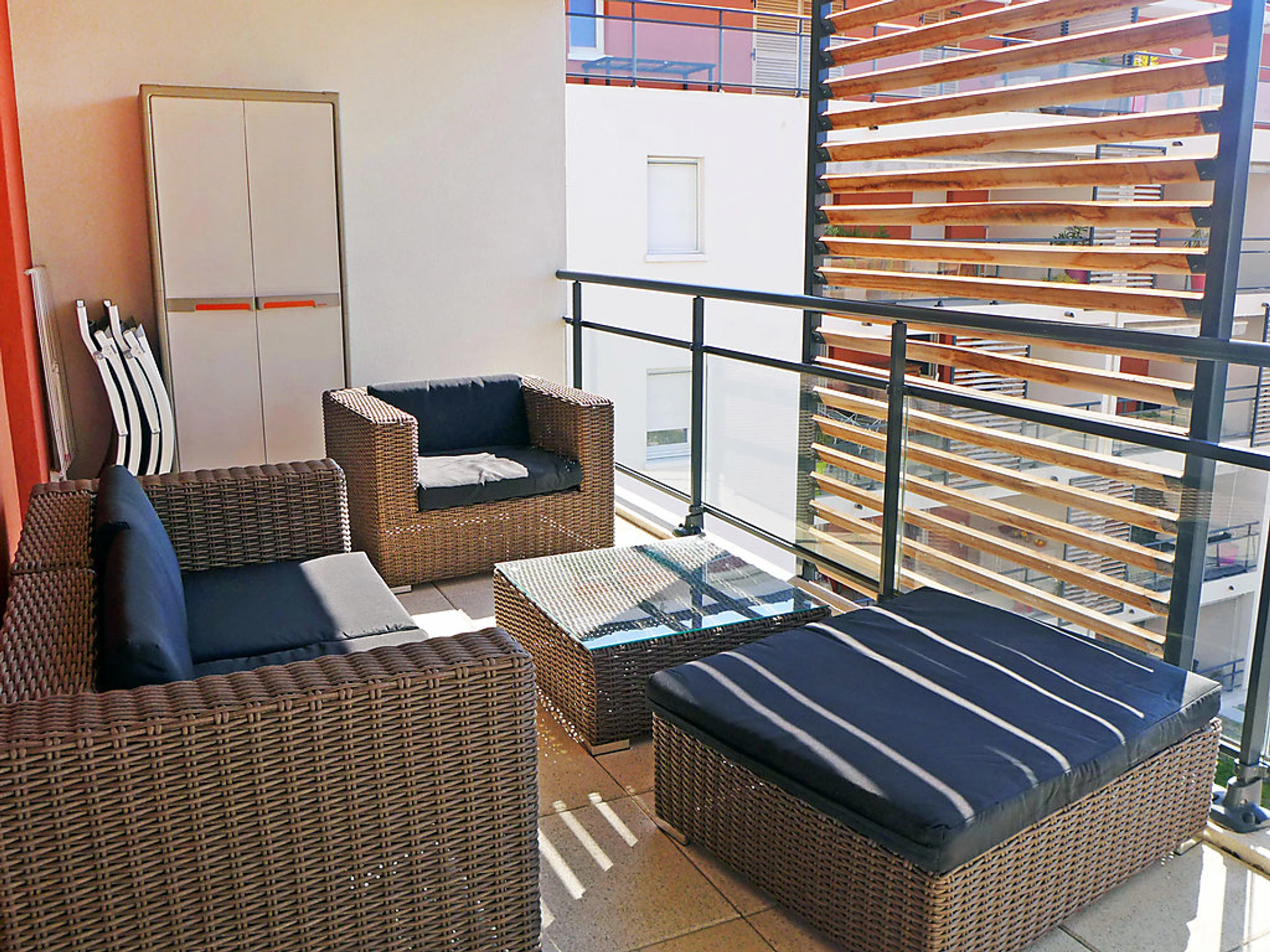 Apt 2 pièces 42 m2 au 4ème étage. Aménagement agréable: séjour/salle à manger avec 1 divan-lit double (1 x 140 cm, longueur 190 cm), table pour les repas, chaînes de TV internationales, écran plat et radio. Sortie sur la terrasse. 1 chambre avec 1 grand-lit (1 x 140 cm, longueur 190 cm), écran plat. Cuisine ouverte (3 plaques de cuisson, lave-vaisselle, congélateur, cafetière électrique, combiné micro-ondes). Sortie sur la terrasse. Douche/WC. Chauffage électrique. Terrasse 16 m2. Meubles de terrasse. A disposition: lave-linge, sèche-cheveux. Internet (Connexion WIFI, gratuit). Place de parking No 127 (couvert). Veuillez noter: non recommandé pour des enfants en bas âge non adapté aux enfants de moins de 15 ans. TV seulement FR. Détecteur de fumée. Inclus: Garantie satisfaction gratuite, Place de stationnement, Internet sans fil (WIFI) Disponible sur le site avec supplément: Linge de lit (premier jeu) 12.0EUR par personne, Poussette 3.0EUR par jour, Réhausseur bébé (pour enfants) 3.0EUR par jour, Chaise haute 3.0EUR par jour, Lit bébé (jusqu'à 2 ans) 3.0EUR par jour, Serviettes (premier jeu) 5.0EUR par personne Services supplémentaires obligatoires sur le site: Taxe de séjour enfants (par personne et par jour), Taxe de séjour 0.83EUR par personne et par jour, Taxe de séjour bébés (0-2) (par personne et par jour), Nettoyage final 17.0EUR par personne, Taxe de séjour 0.88EUR par personne et par jour