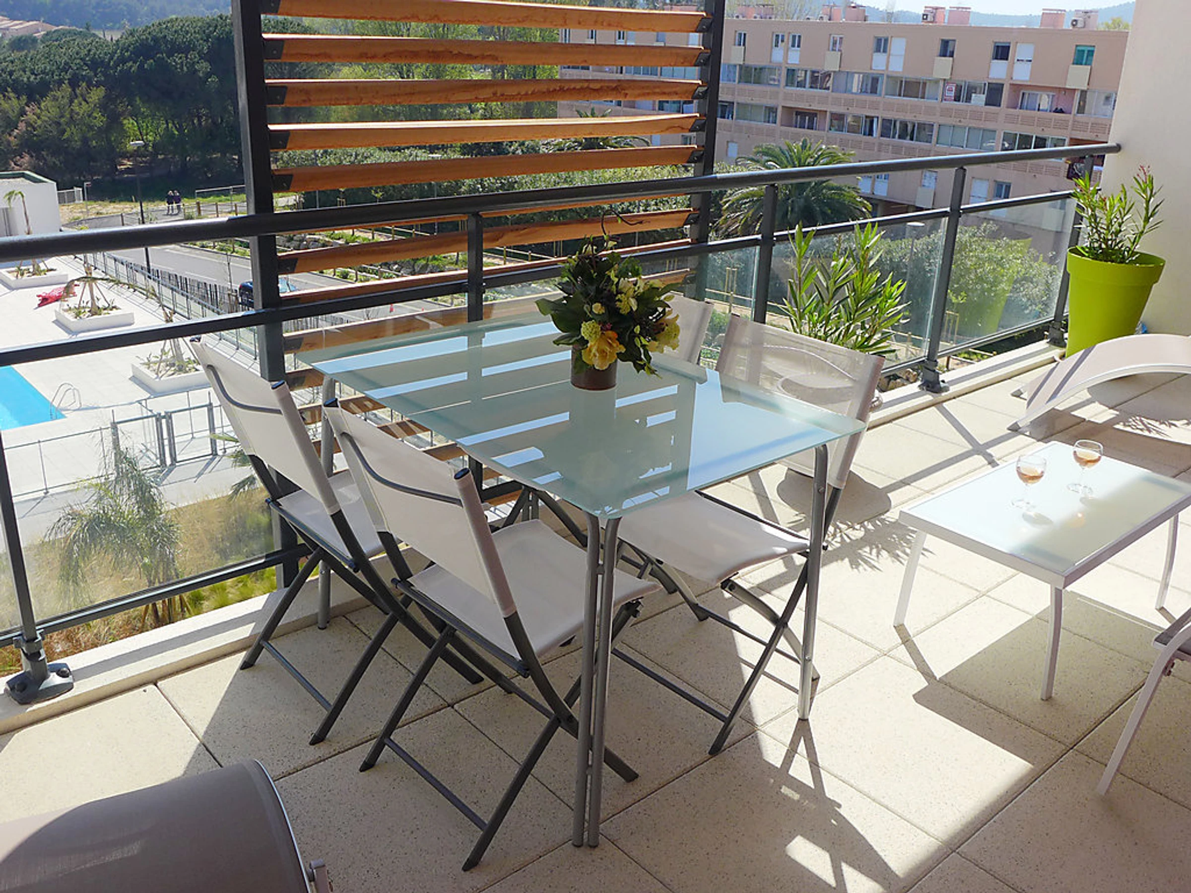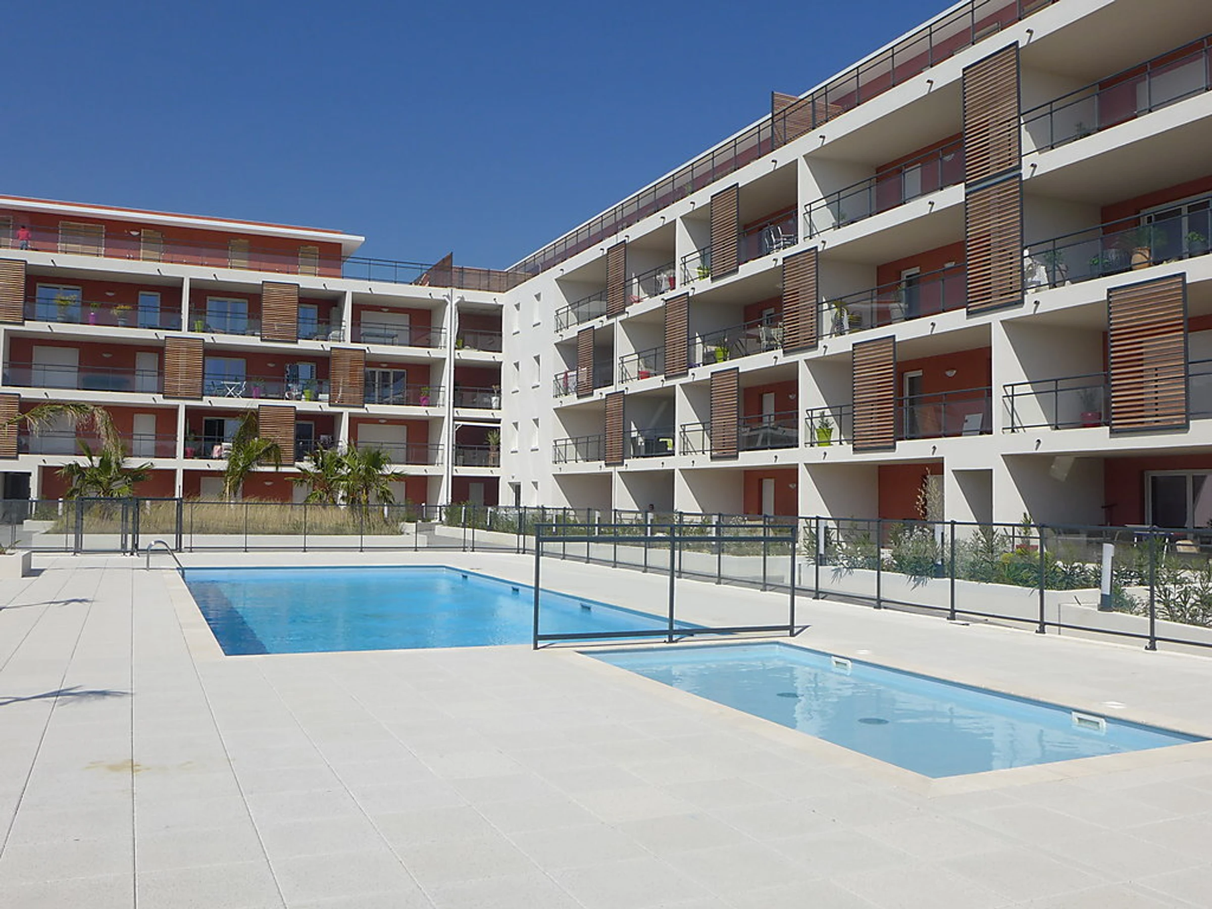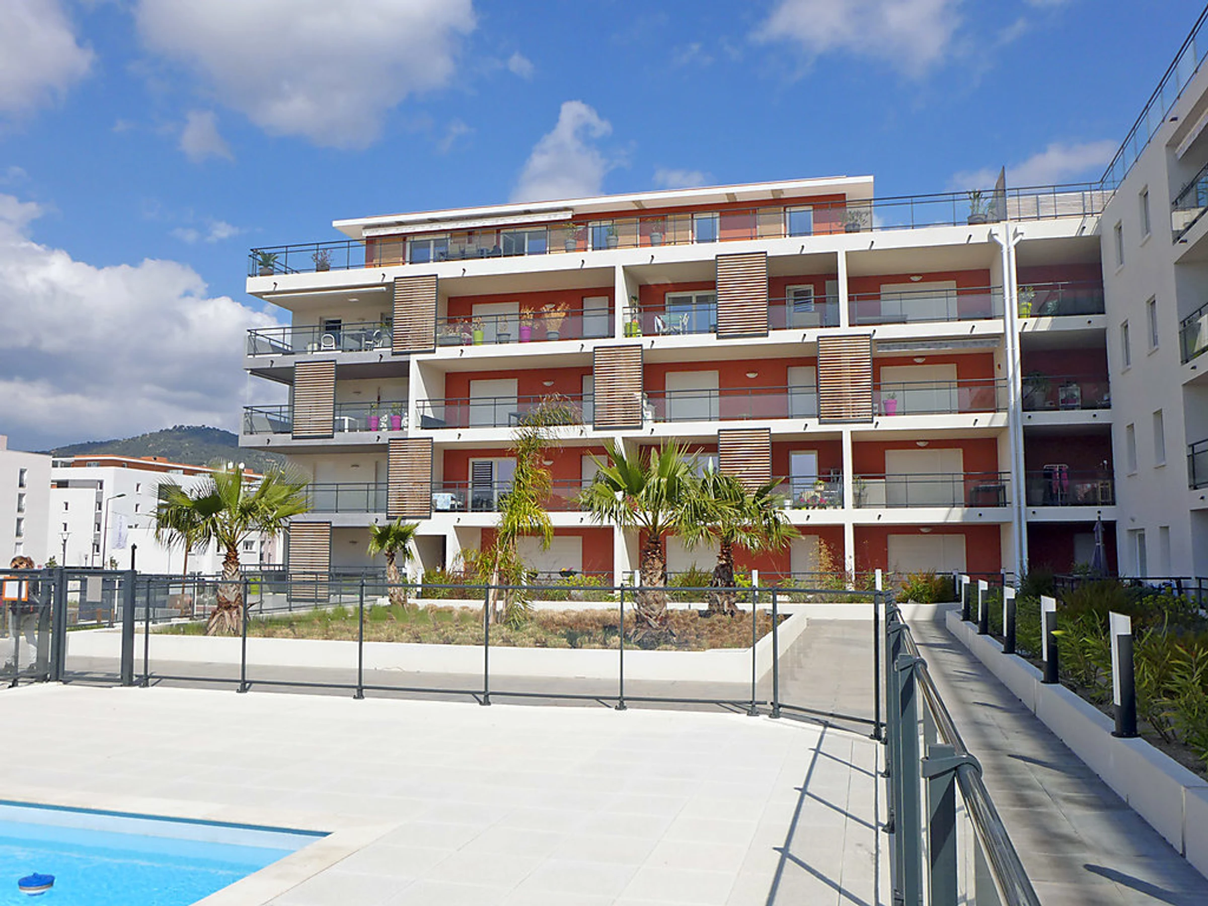 Belle résidence "L'Eden", de 5 étages, année de construction 2014. Dans la localité, à 300 m du centre de Lavandou, situation ensoleillée, à 300 m de la mer, à 300 m de la plage. En commun: piscine rectangulaire cloturée (13 x 7 m, profondeur 120 - 200 cm,[hidden].). Infrastructures de la Maison: réduit pour bicyclettes. Magasin d'alimentation, supermarché, boulangerie 50 m, location de bicyclettes 100 m, plage de sable 300 m. Port de plaisance 450 m. Veuillez noter: non recommandé pour des enfants en bas âge non adapté aux enfants de moins de 15 ans.