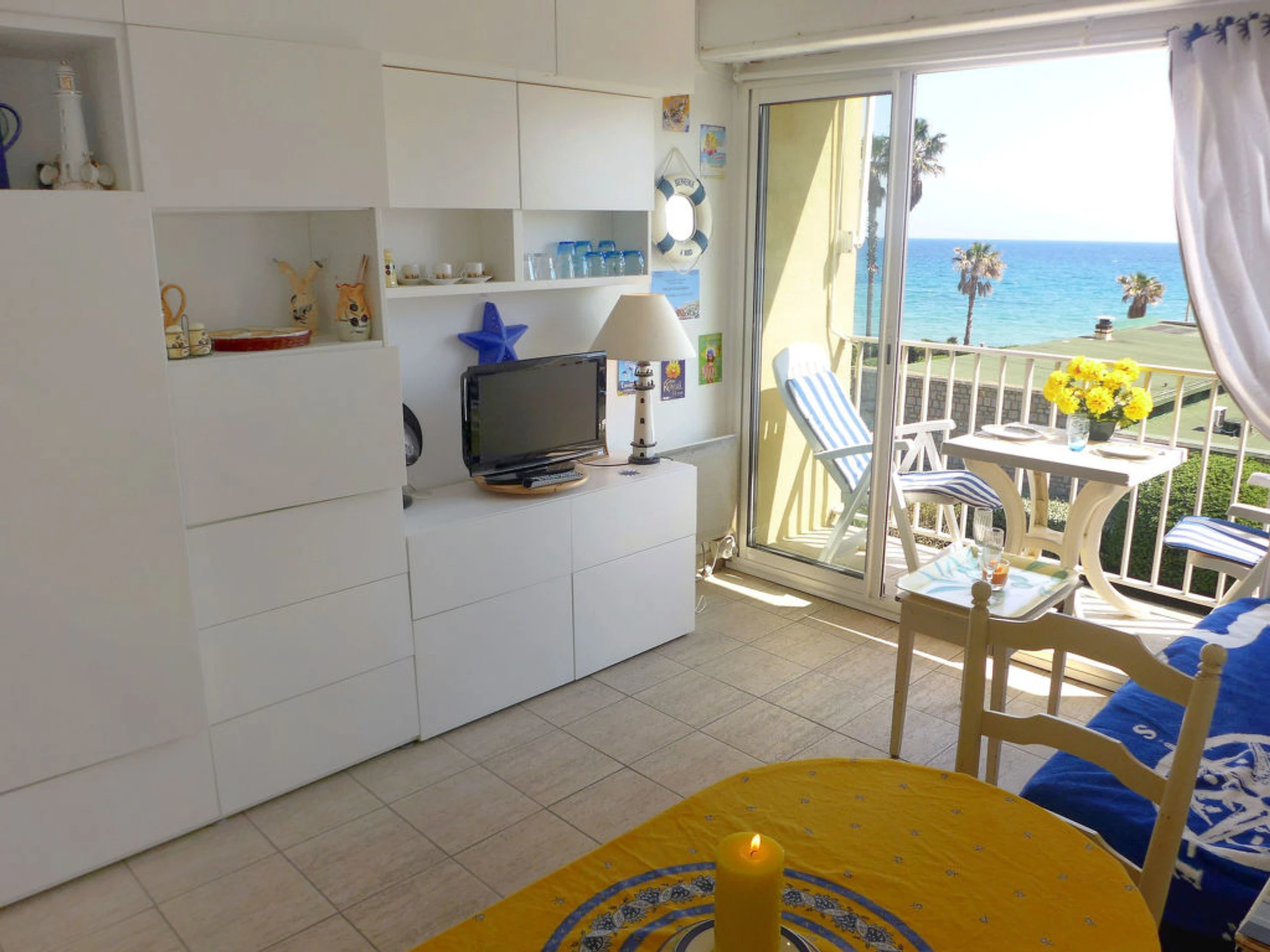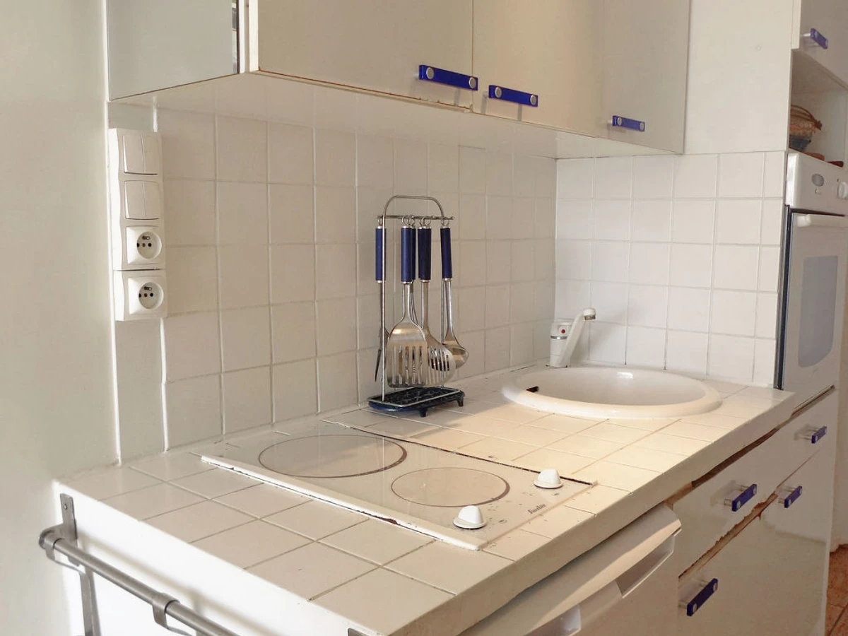 Studio 19 m2 au 2ème étage. Aménagement fonctionnel et agréable: séjour/salle à manger avec 1 lit double armoire (140 cm), table pour les repas et TV. Sortie sur le balcon. Coin cuisine (2 plaques de cuisson, four, cafetière électrique). Douche/WC. Balcon 4 m2, situation sud. Belle vue sur la mer. A disposition: fer à repasser. Place de parking (cloturée). Veuillez noter: logement pour non fumeurs. Maximum 1 animal/ chien de petite taille autorisé. Services supplémentaires obligatoires sur le site: Taxe de séjour enfants (par personne et par jour), Taxe de séjour 0.83EUR par personne et par jour, Taxe de séjour bébés (0-2) (par personne et par jour), Taxe de séjour 0.88EUR par personne et par jour