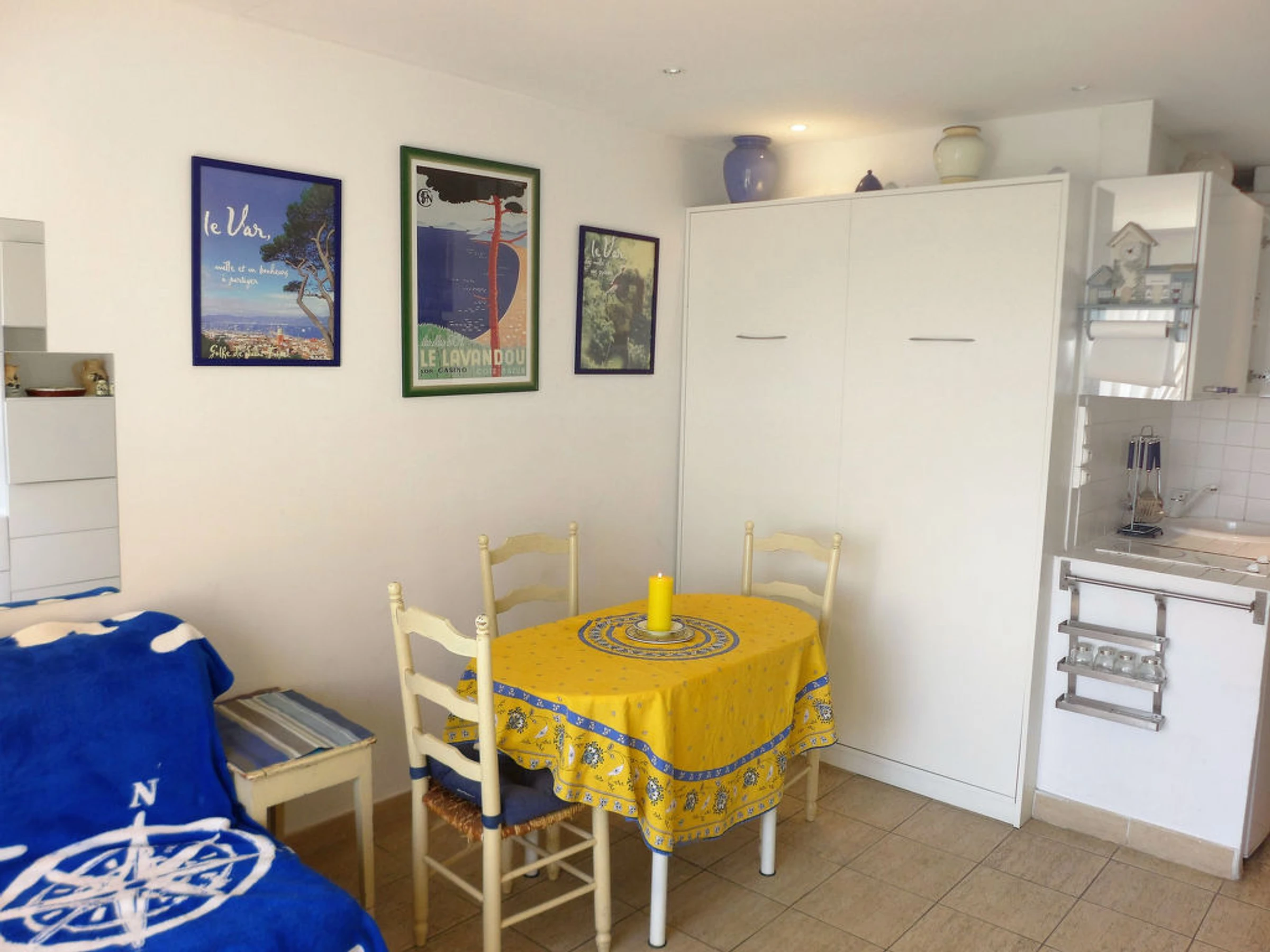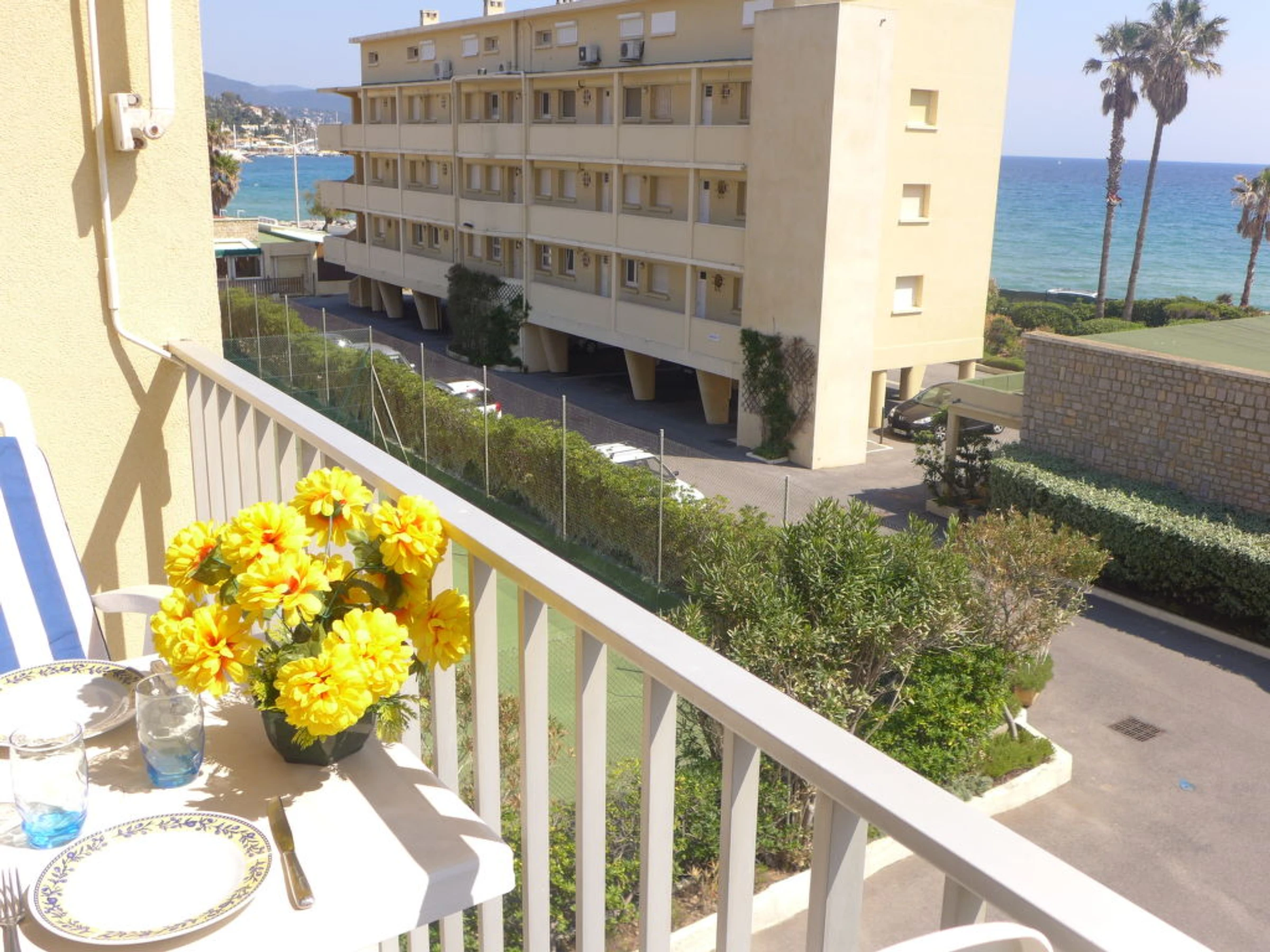 Résidence "Les Horizons", de 8 étages. Au centre de Lavandou, à 50 m de la mer. En commun: tennis (en sus). Infrastructures de la Maison: ascenseur. Place de parking sur le terrain. Magasins, magasin d'alimentation 100 m, supermarché 500 m, restaurant 100 m, arrêt de bus "Lavandou" 620 m, plage de sable 50 m, centre de plongée 941 m. Golf miniature 500 m. Veuillez noter: La photo ne montre qu’un exemple de location de vacances. Résidence fermée par un portail electrique, gardien, parking pour vélo.