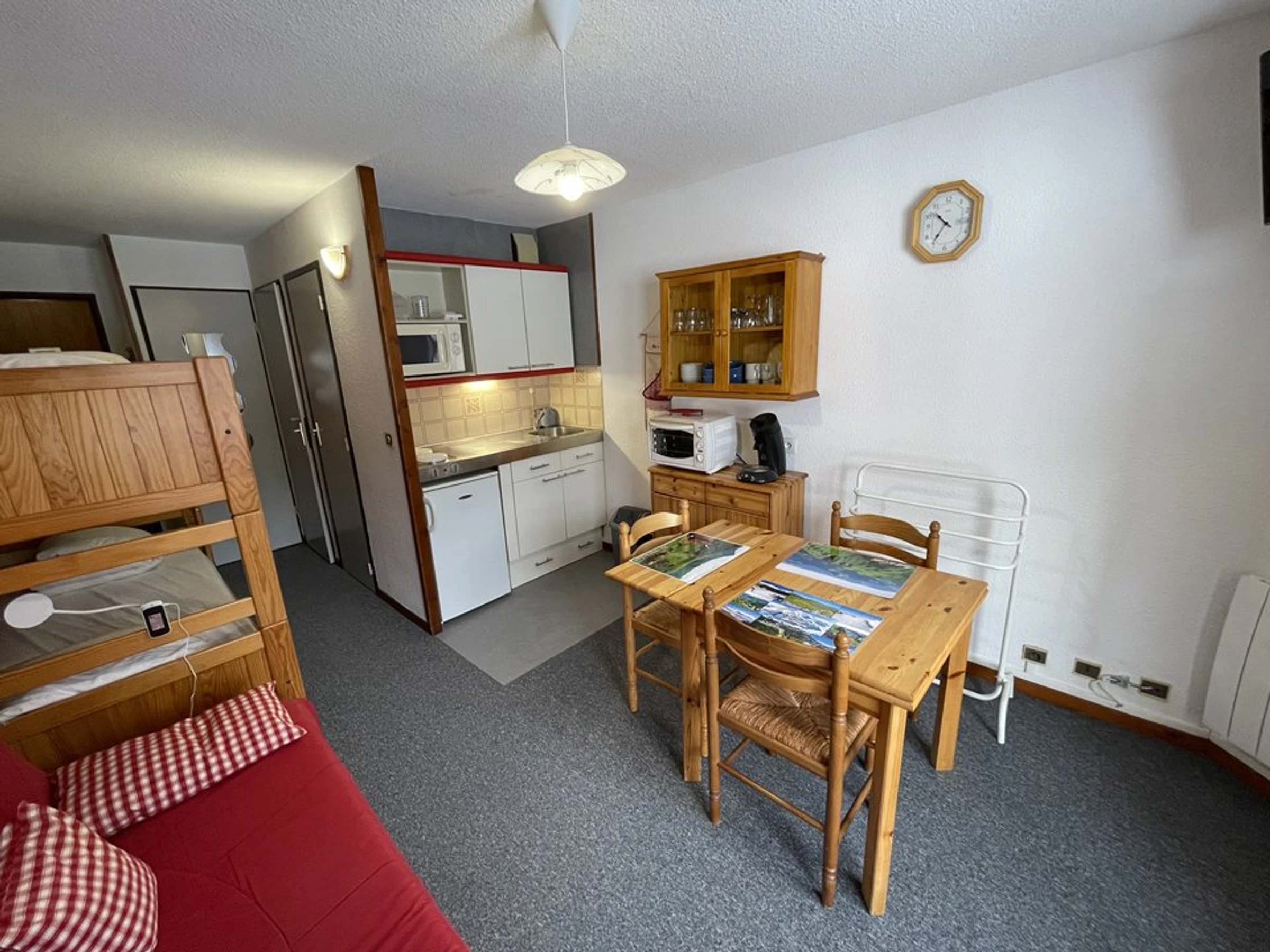 T2 balcon dans belle Résidence de 7 étages (résidence avec ascenseur). 27 m², 1er étage, Entrée A - Exposé Sud-Est. Patinoire, pistes et commerces sur place au bas de la résidence.