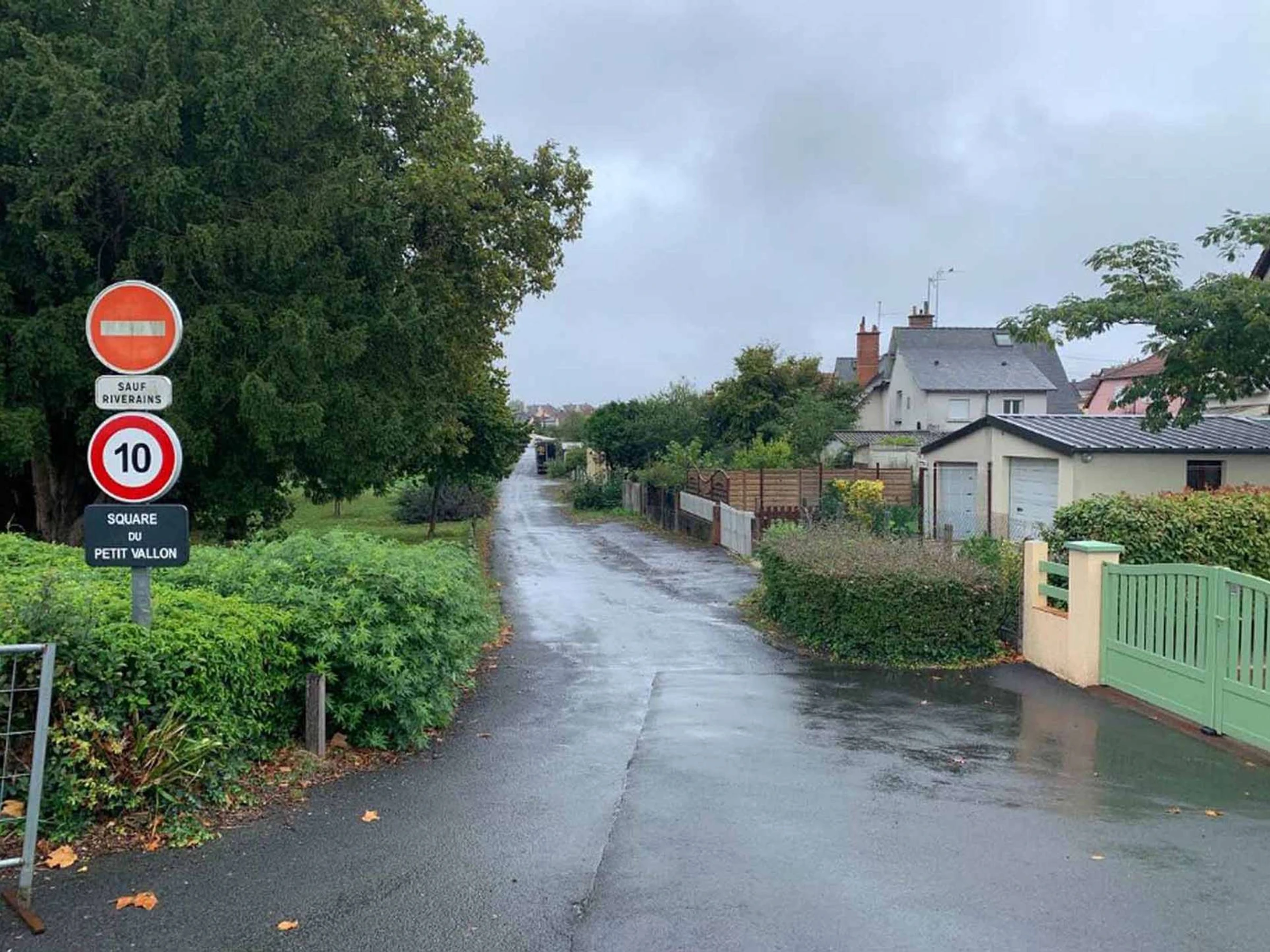 Stationnement dans l'allée de garage avec portail et accès dans une impasse privée.