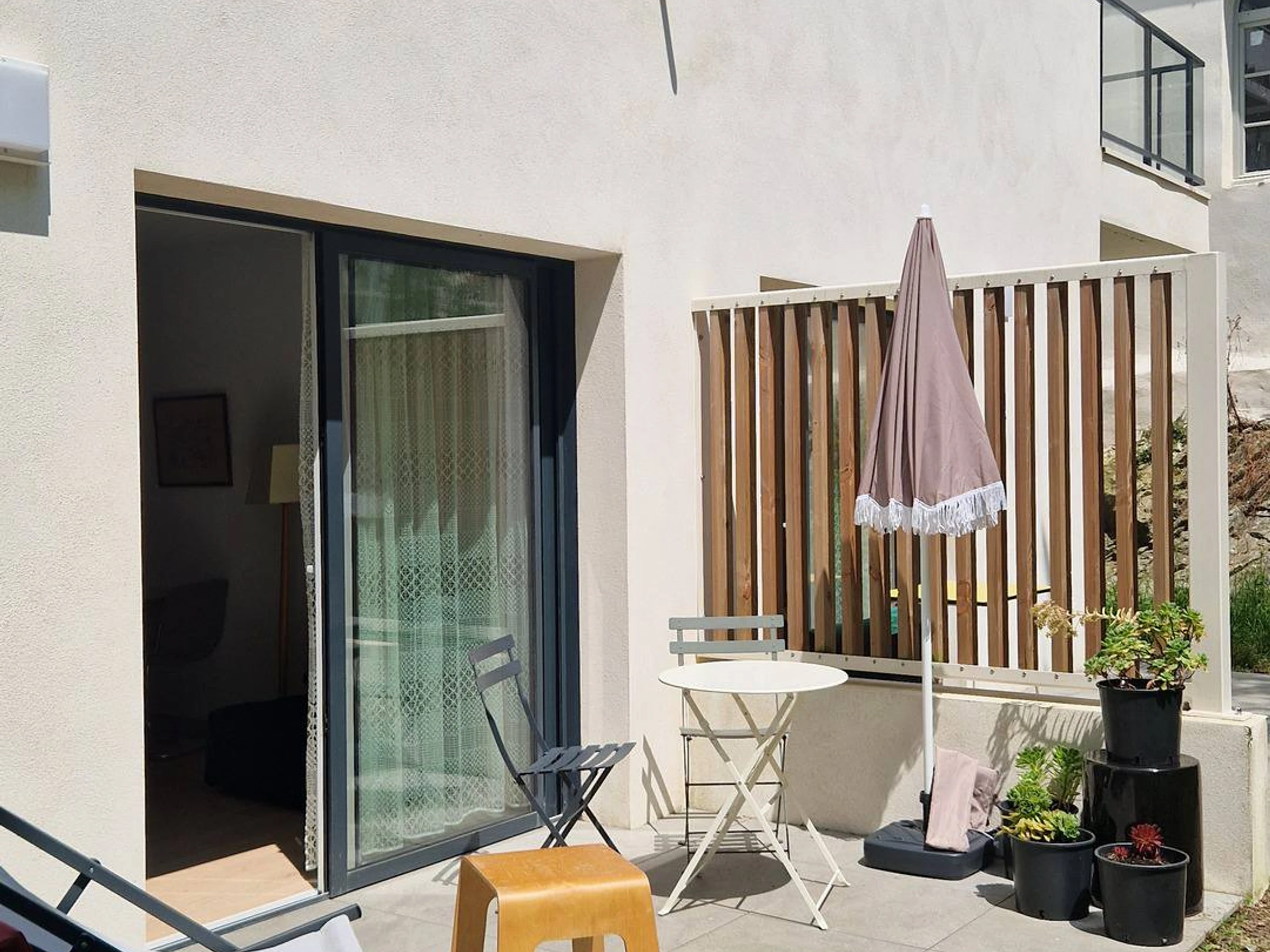 L'appartement dispose d'une terrasse de 8.4m² avec salon de jardin, parasol et barbecue électrique donnant sur un espace vert. Pas de TV. Pas de réseau téléphonique.