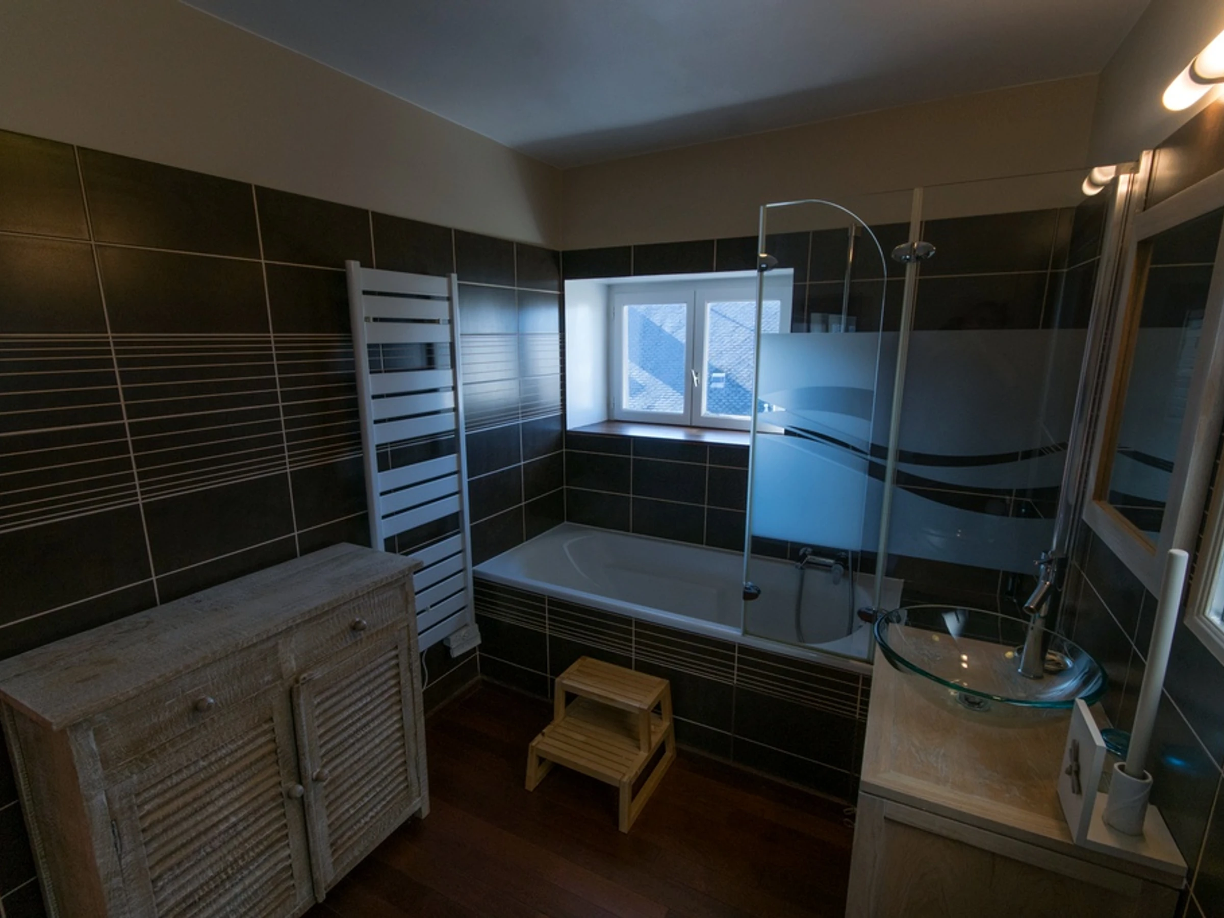 - Une salle de bain (7m²) avec baignoire, lavabo et WC.
