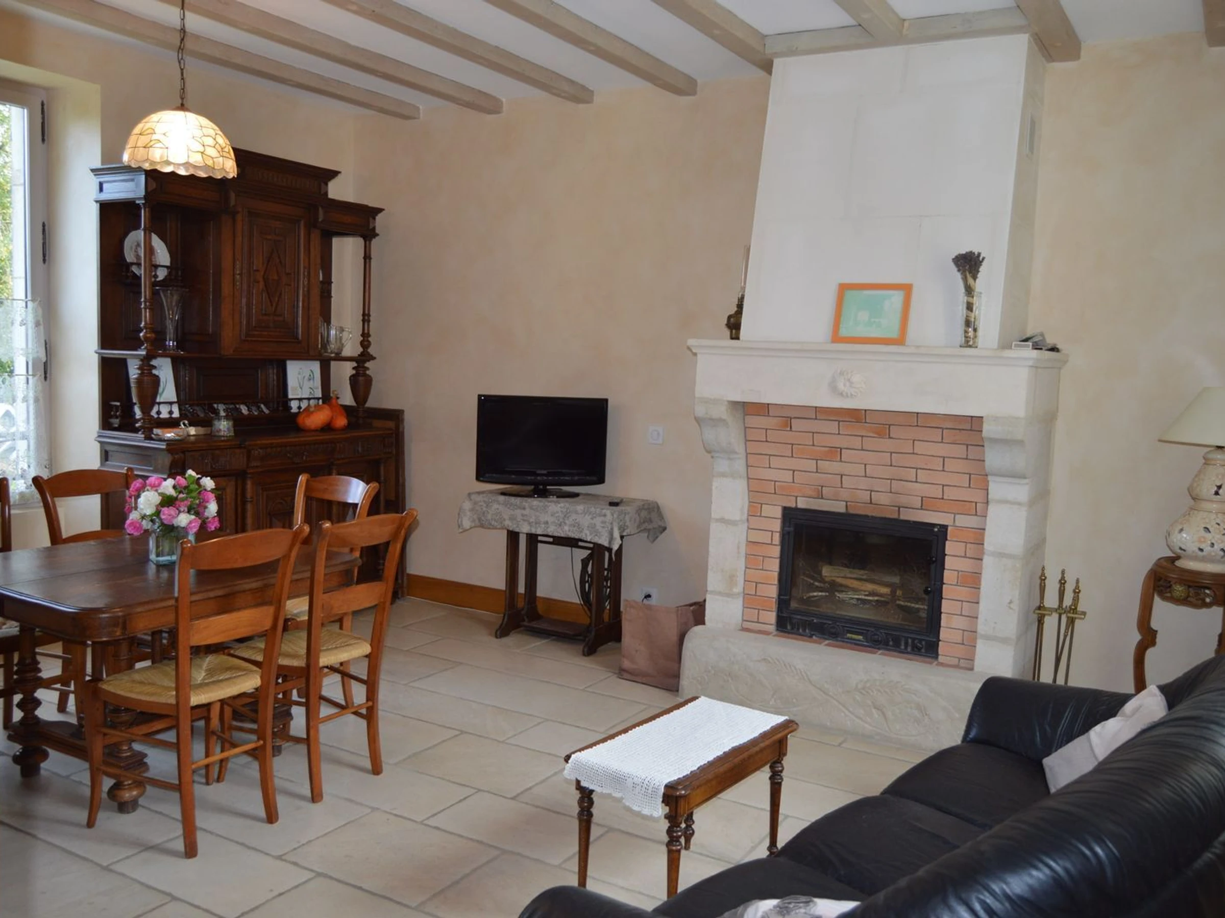 Au rez-de-chaussée : Salle à manger / salon avec cheminée / cuisine.