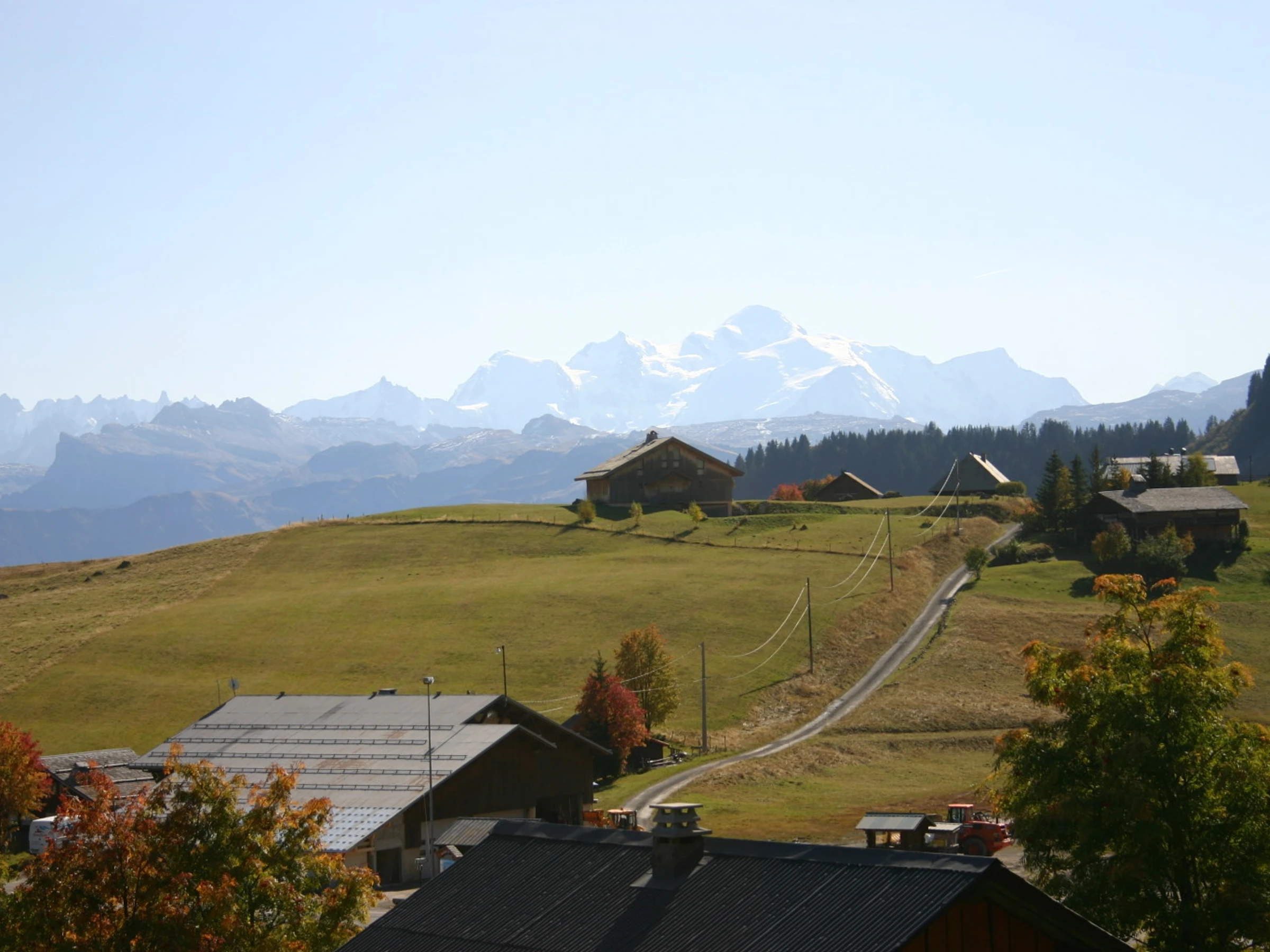 Chalet situé sur les pistes, avec un panorama exceptionnel sur le Massif du Mont-Blanc et les chaines des Alpes. A environ 160m du parking par une piste damnée.