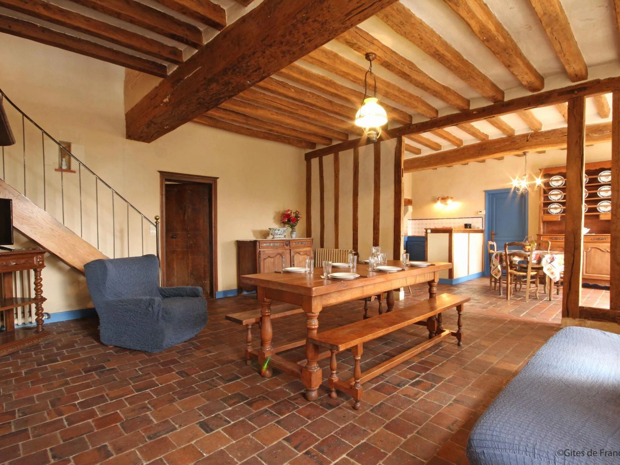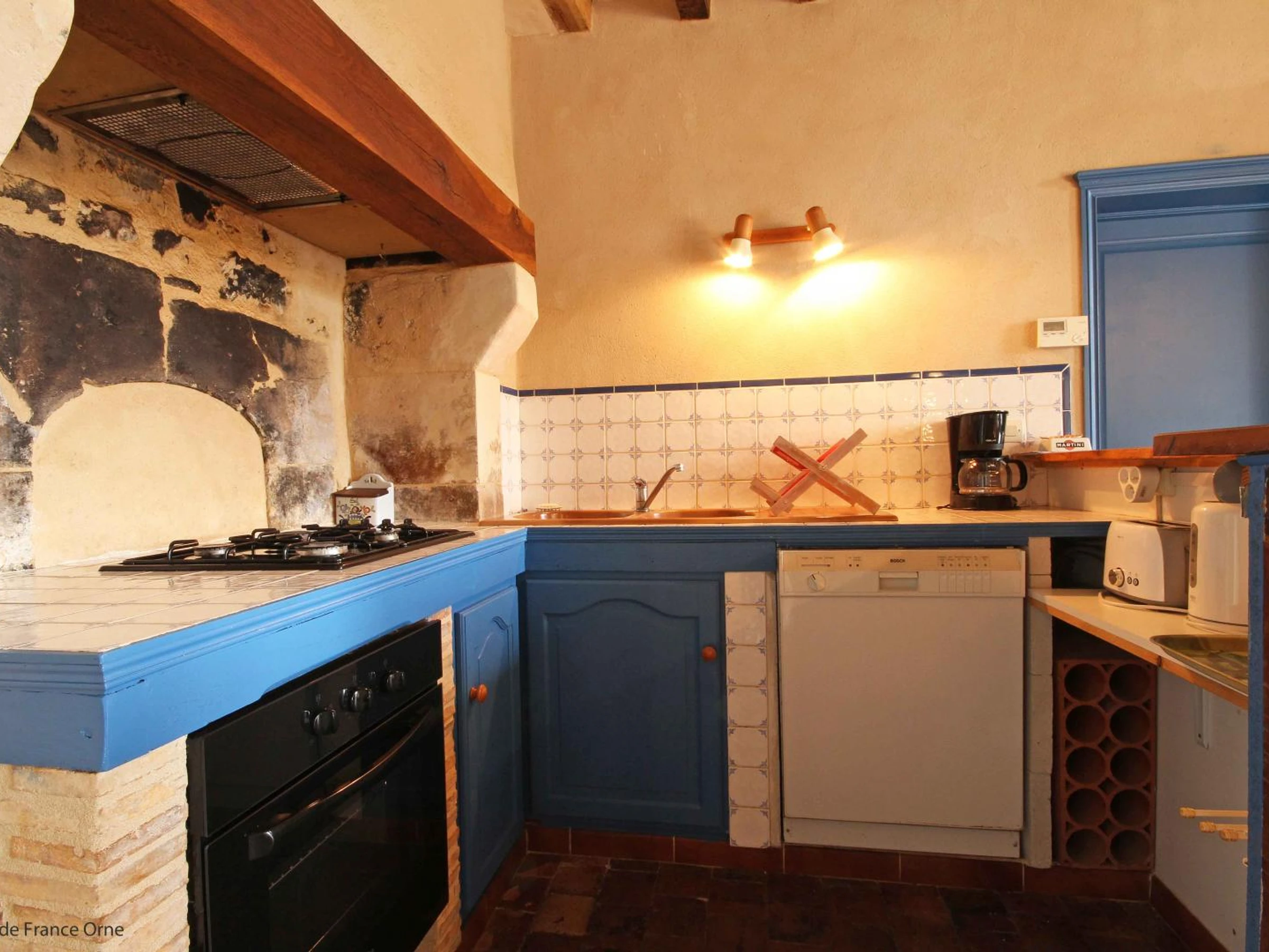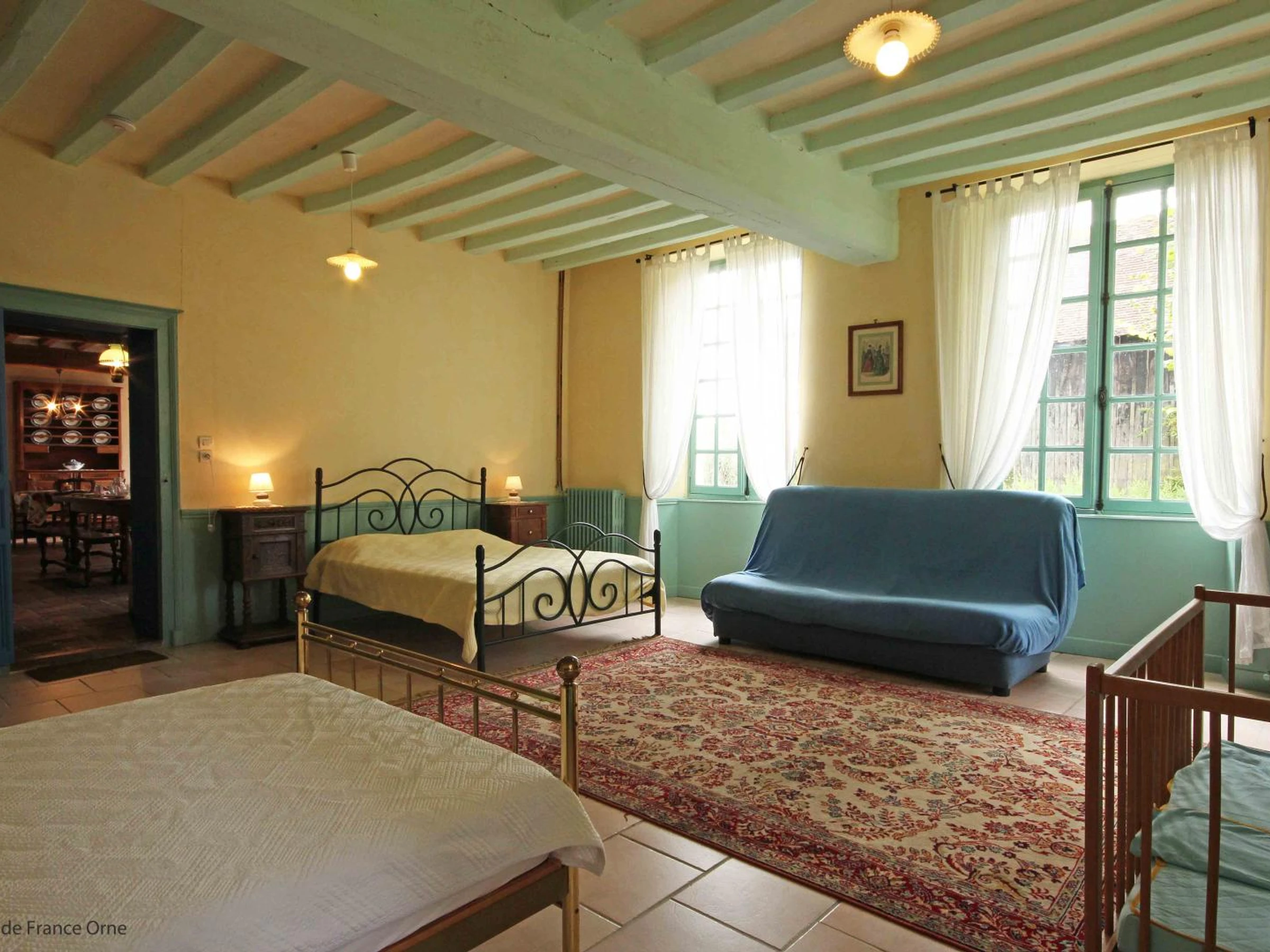 Maison du XVIIIè indépendante. Rez de chaussée : séjour (prise TV, canapé-lit 2 personnes), coin-cuisine, 1 chambre (1 lit 2 personnes, 1 lit 120 cm, lit bébé), buanderie, salle d'eau, wc. Etage : palier (2 lits 1 personne). Chauffage central. Jardin 2000 m², abri voiture, portique. Poutres, cheminée de pierre, meubles patinés et volets bleus, c'est tout le charme de cette maison. Les lourds chevaux et les fiers manoirs ont fait le renom de la région alentour : le Perche.