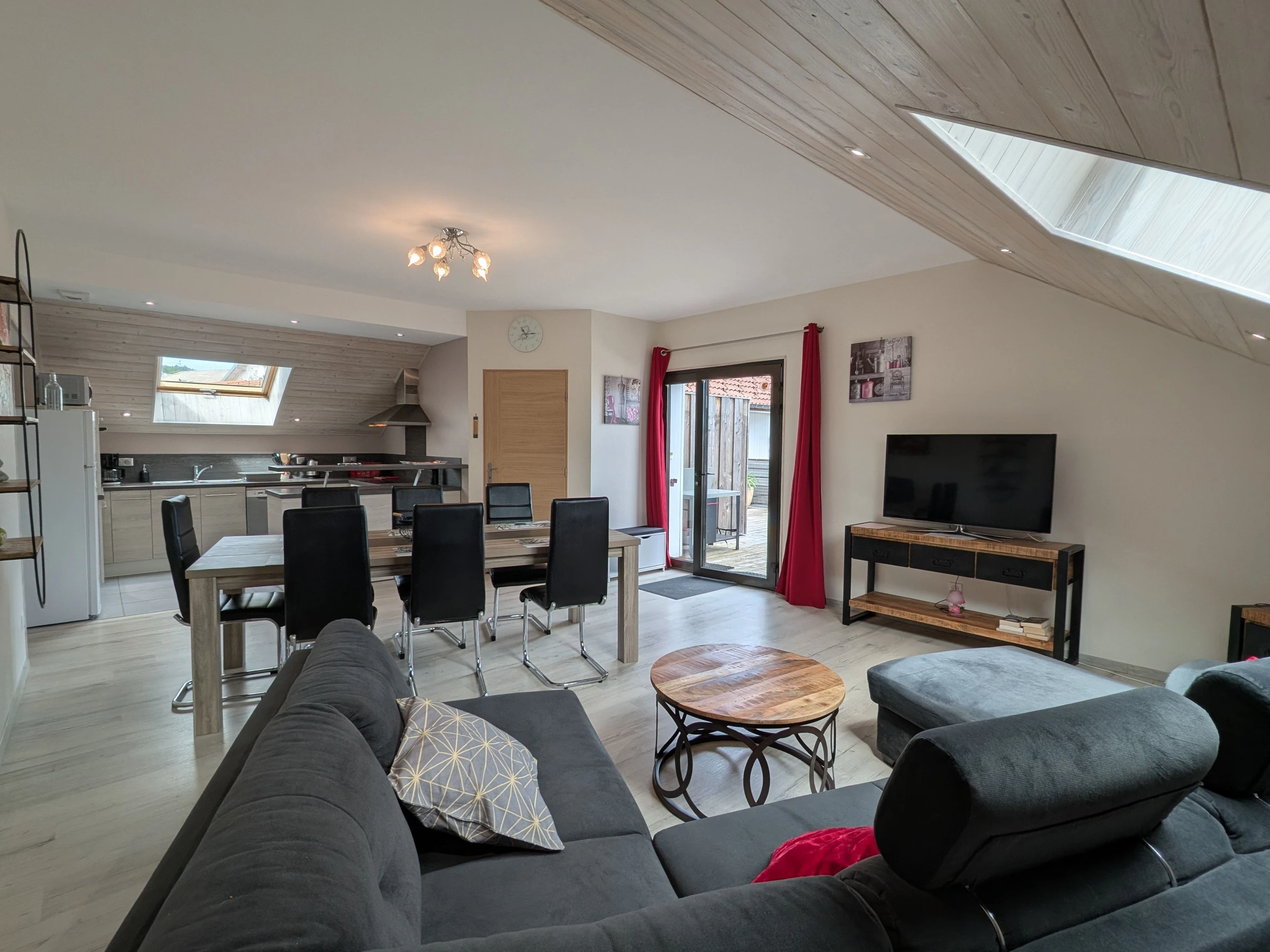 La cuisine équipée s’ouvre sur un vaste salon lumineux, parfait pour des moments conviviaux en famille ou entre amis. À l’extérieur, une grande terrasse bien exposée permet de profiter des beaux jours en toute tranquillité. Le chauffage au sol garantit un confort optimal en toute saison.