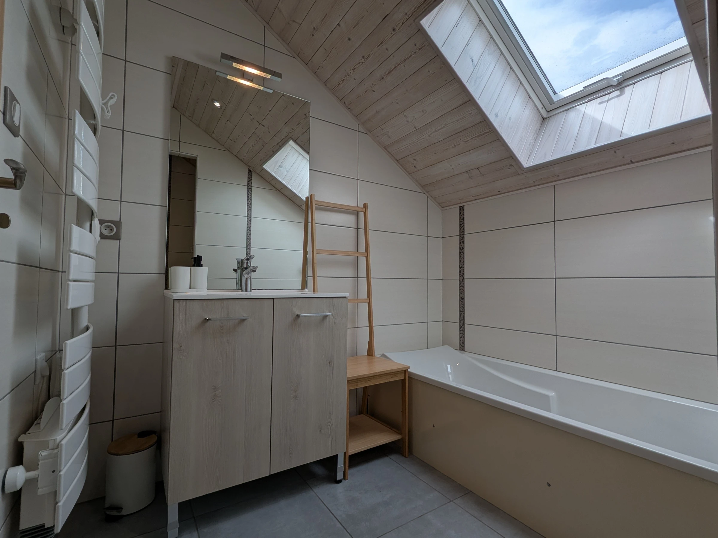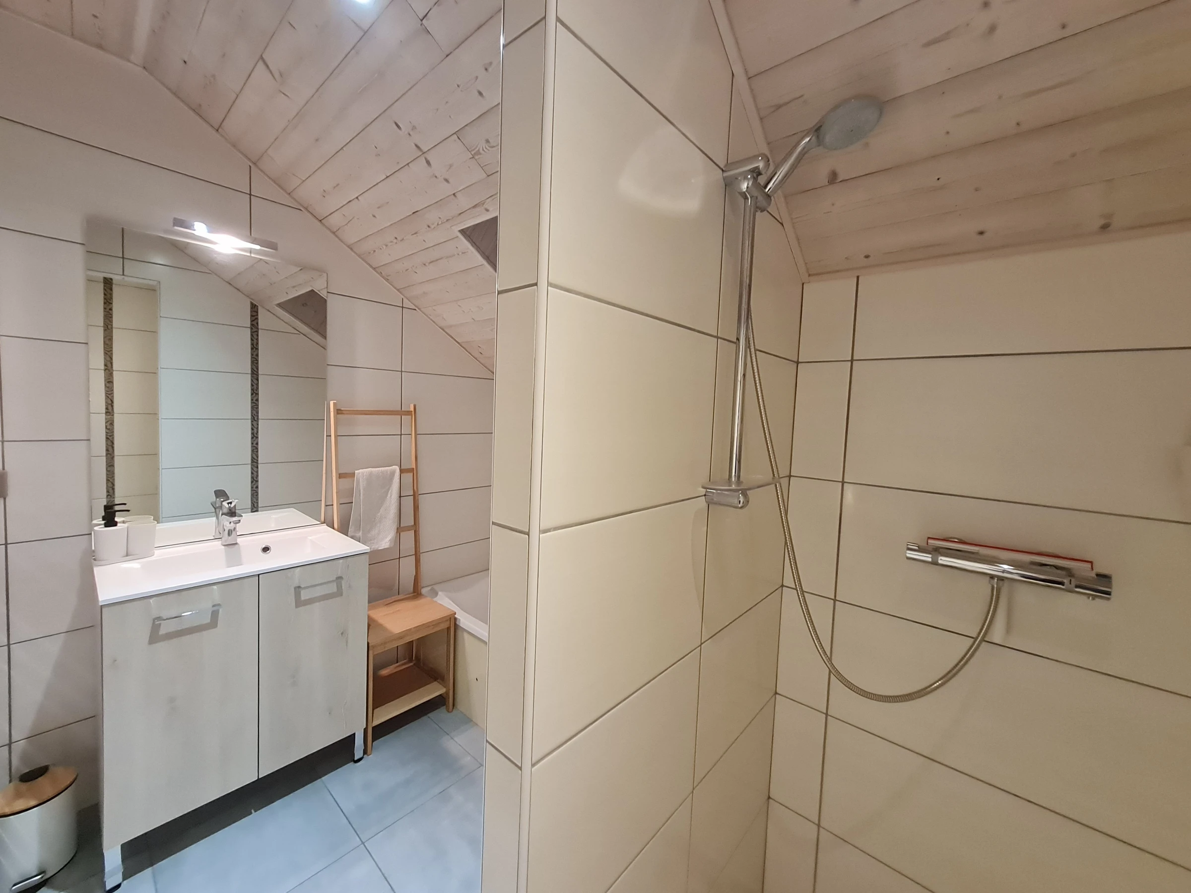 - salle d'eau avec une belle douche italienne 90/160 et une baignoire, lavabo une vasque, grand miroir, sèche-serviettes électrique, sèche-cheveux.