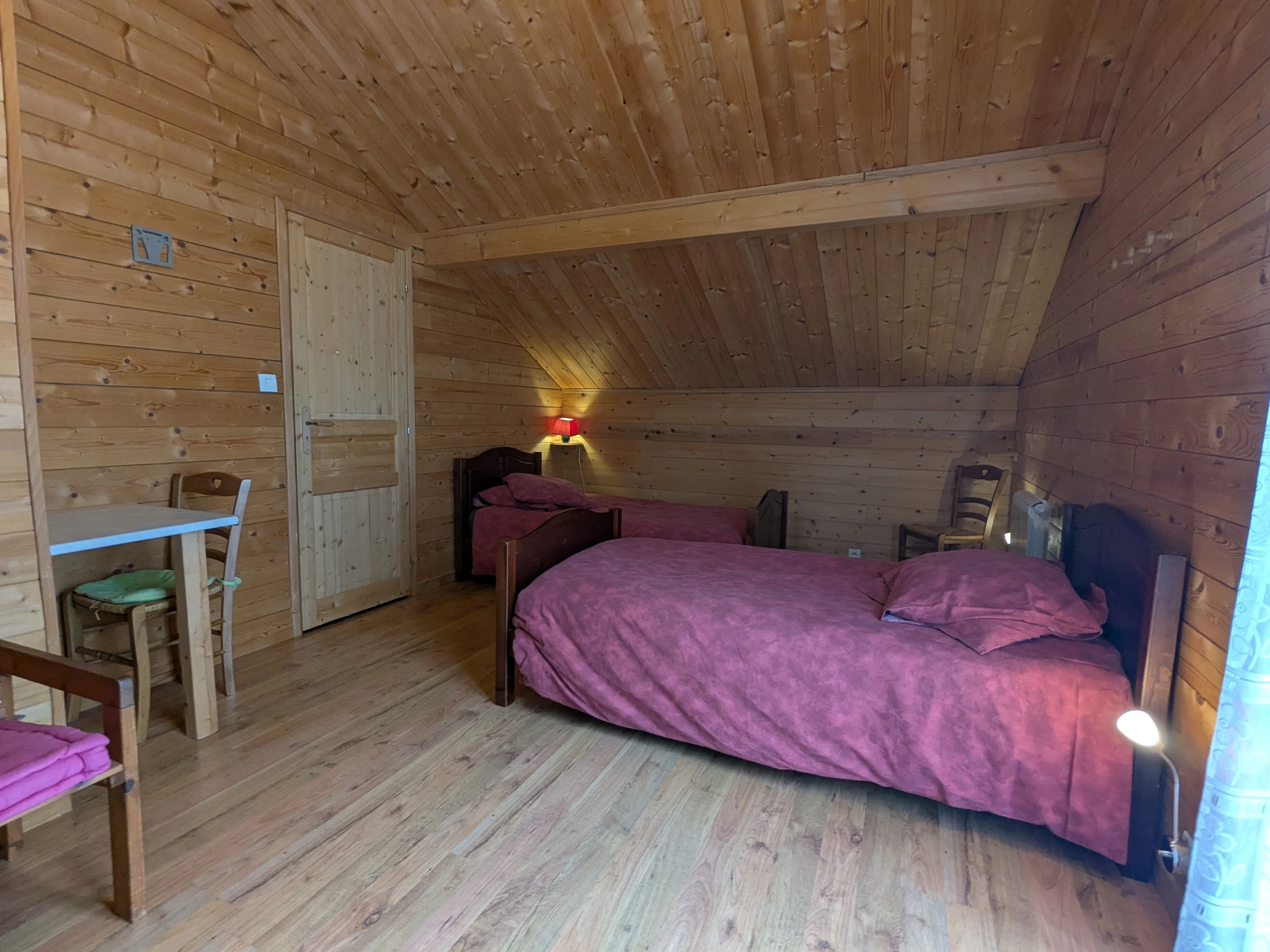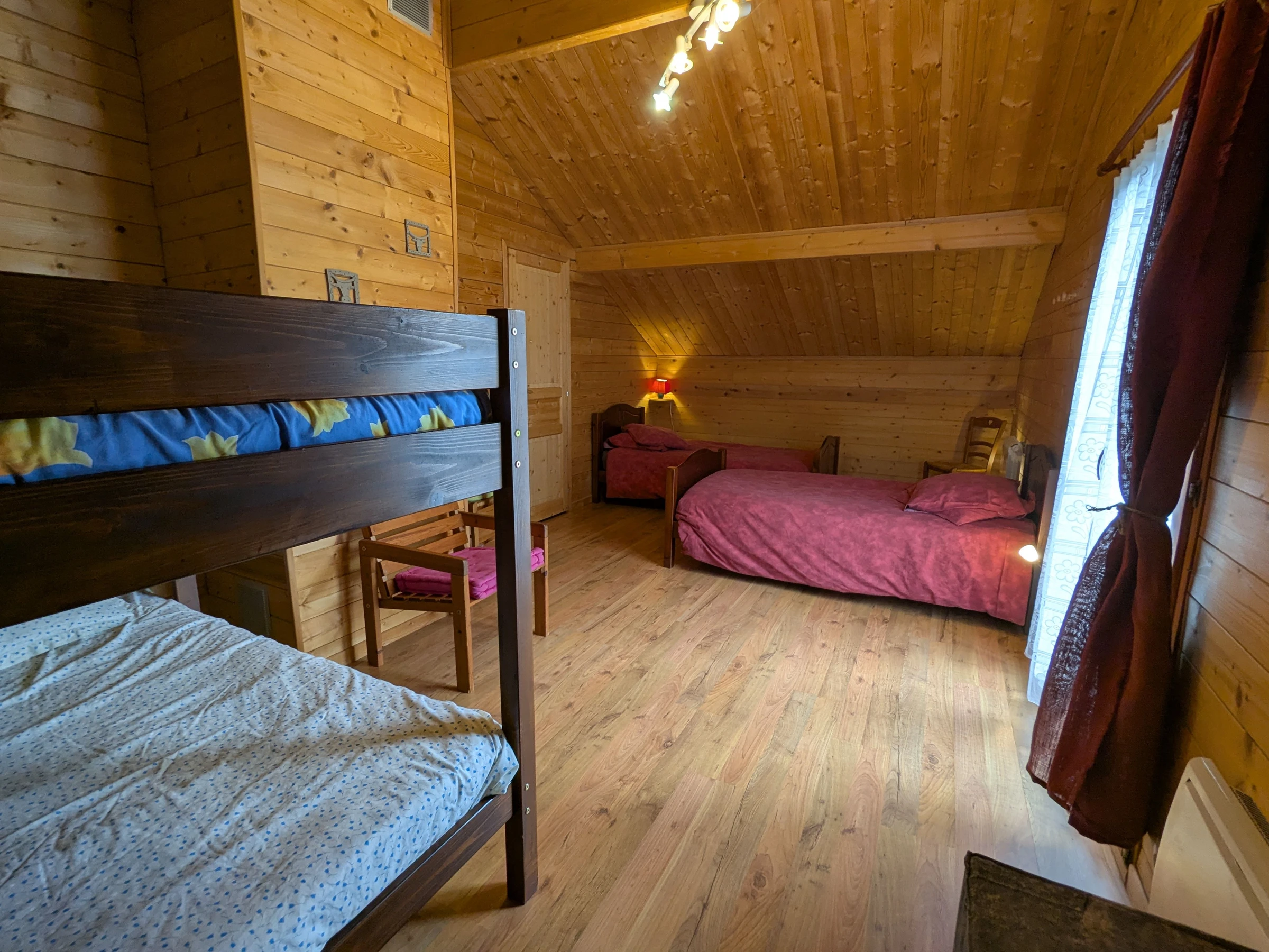 Pour des vacances à la montagne, à quelques minutes de Gérardmer, beau chalet spacieux et bien équipé. La terrasse couverte est un régal en toutes saisons. Les chambres sont mansardées et vastes, chacun y trouve sa place. Des chevaux trouvent leur place dans le champ voisin en saison. Sous le chalet un verger et un rucher. Repos, ballades à pieds - à cheval - à vélo, skis, activités nautiques, artisanat local, vous aurez de quoi occuper votre séjour dans cette belle région des Vosges non loin de Gérardmer. Pour les familles qui veulent séjourner ensemble, un second gîte de 5 personnes est situé à proximité immédiate. Chalet individuel de 90 m². Rez-de-chaussée : Cuisine ouverte sur séjour (4 feux vitrocéramiques, lave vaisselle 12 couverts, réfrigérateur et congélateur, four). Chambre avec lit 160x200cm. WC. Salle d'eau. -
