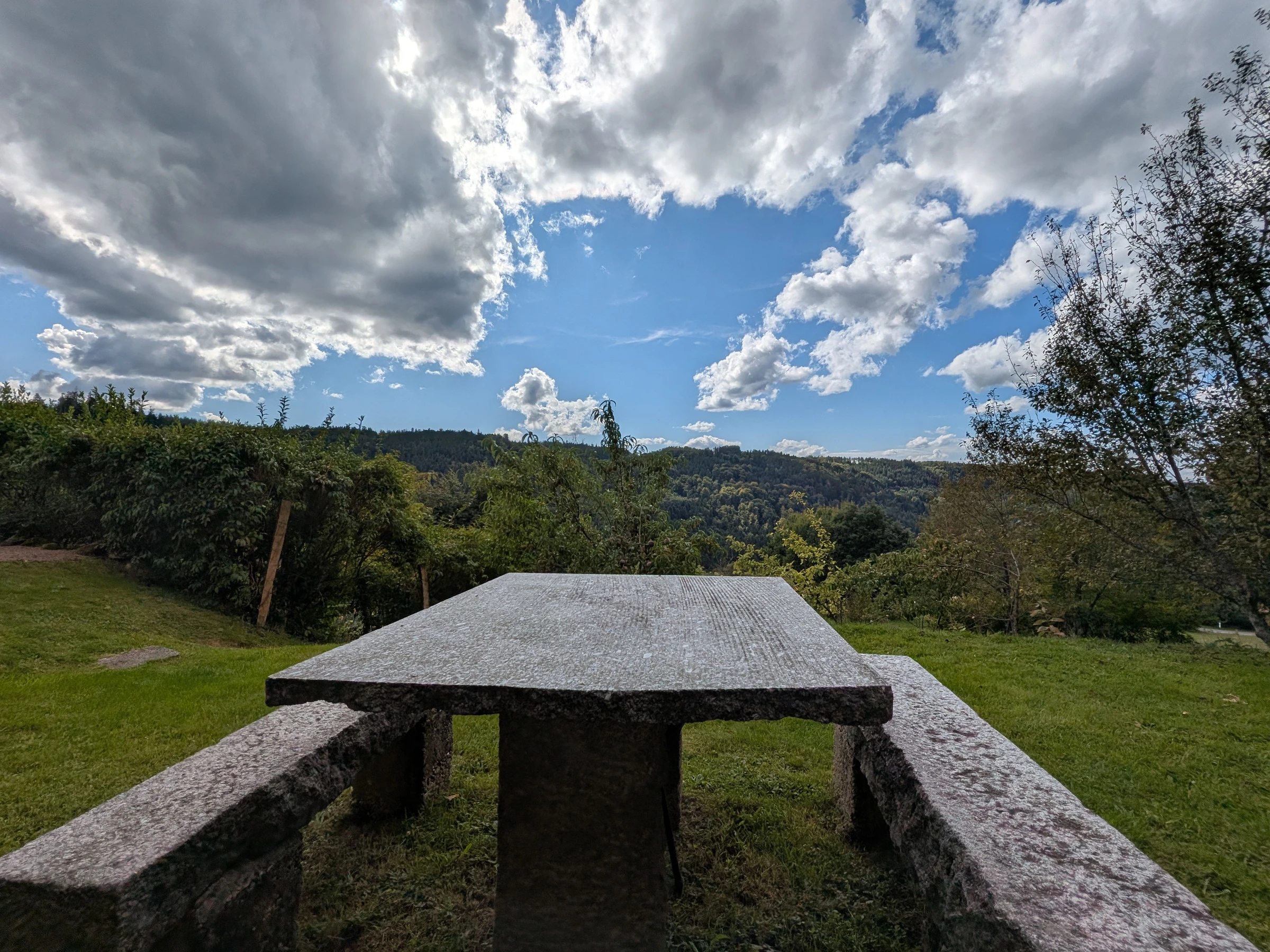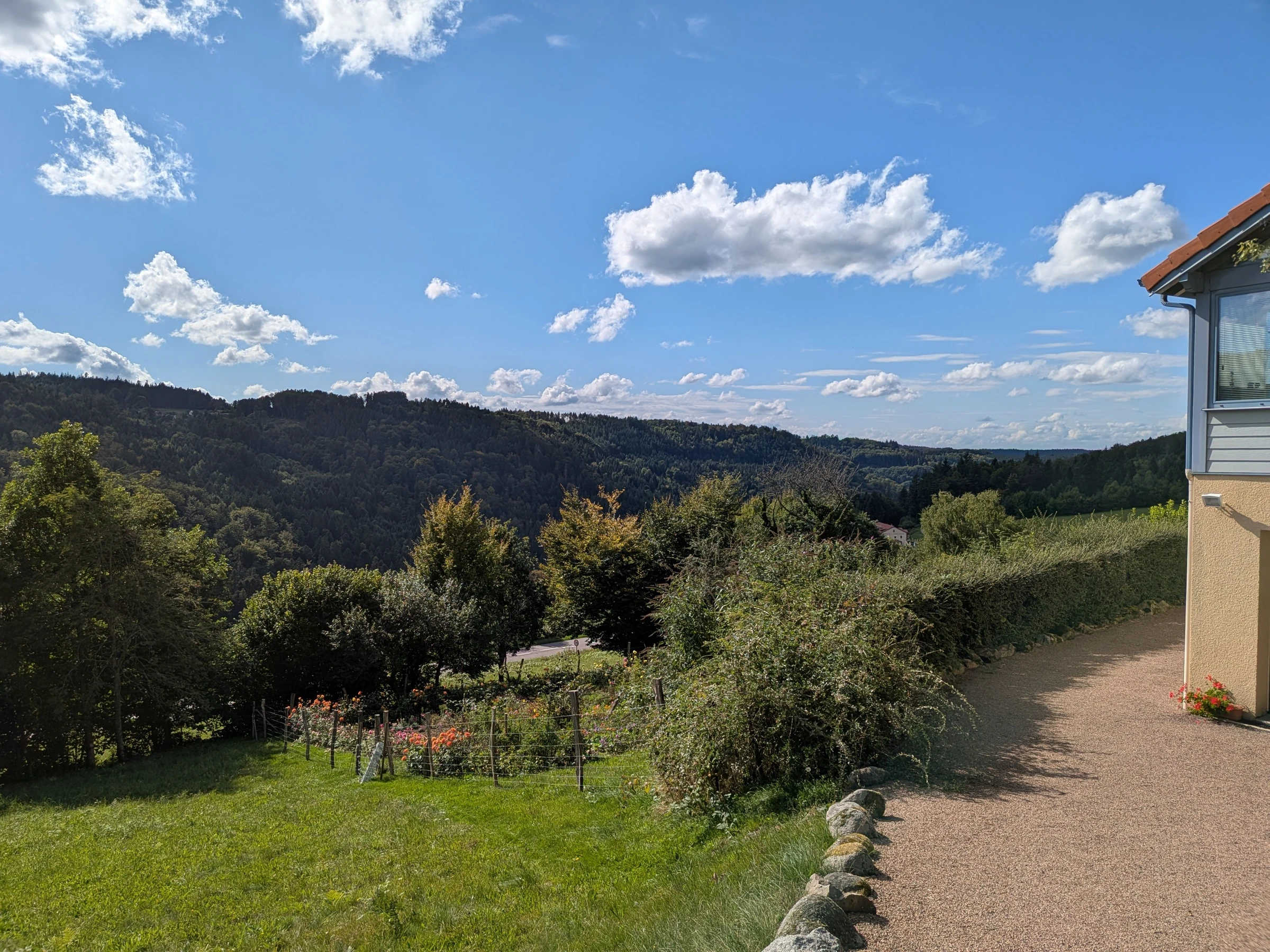 Depuis le gîte, profitez d’une vue dégagée sur les montagnes vosgiennes, idéale pour admirer le lever ou le coucher du soleil. Les amoureux de nature seront ravis d’observer le passage de gibier directement sur la propriété, témoignage de la richesse de la faune locale. En contrebas, le jardin des propriétaires, joliment fleuri, apporte une note colorée et conviviale à l’ensemble.
