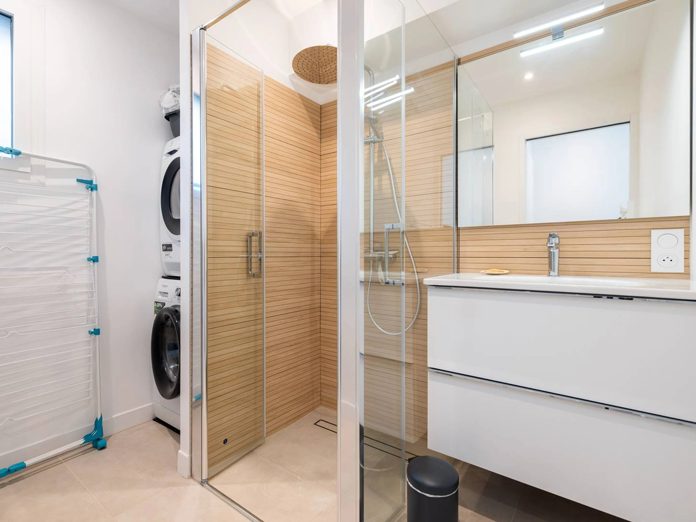 Buanderie (machine à laver + sèche linge avec salle de douche.