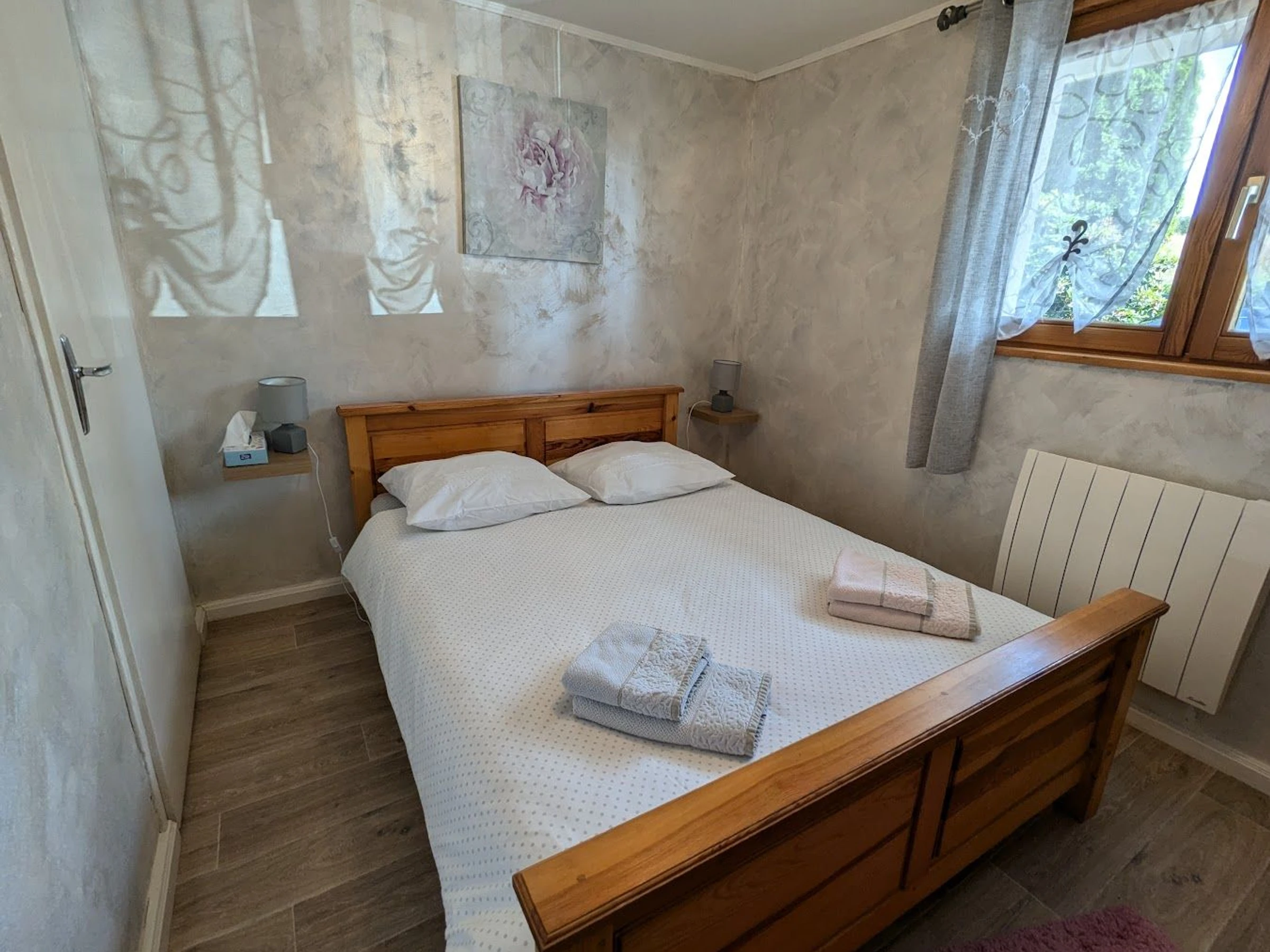 Au rez-de-jardin vous trouverez une chambre avec un lit 2 personnes (140/190). WC et vasque attenants.