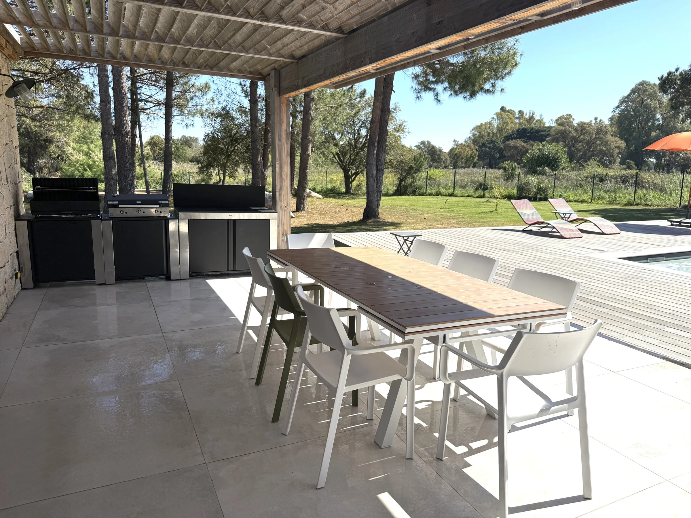 - cuisine extérieur couverte, avec plancha, coin repas pour savourer de belles soirées estivales