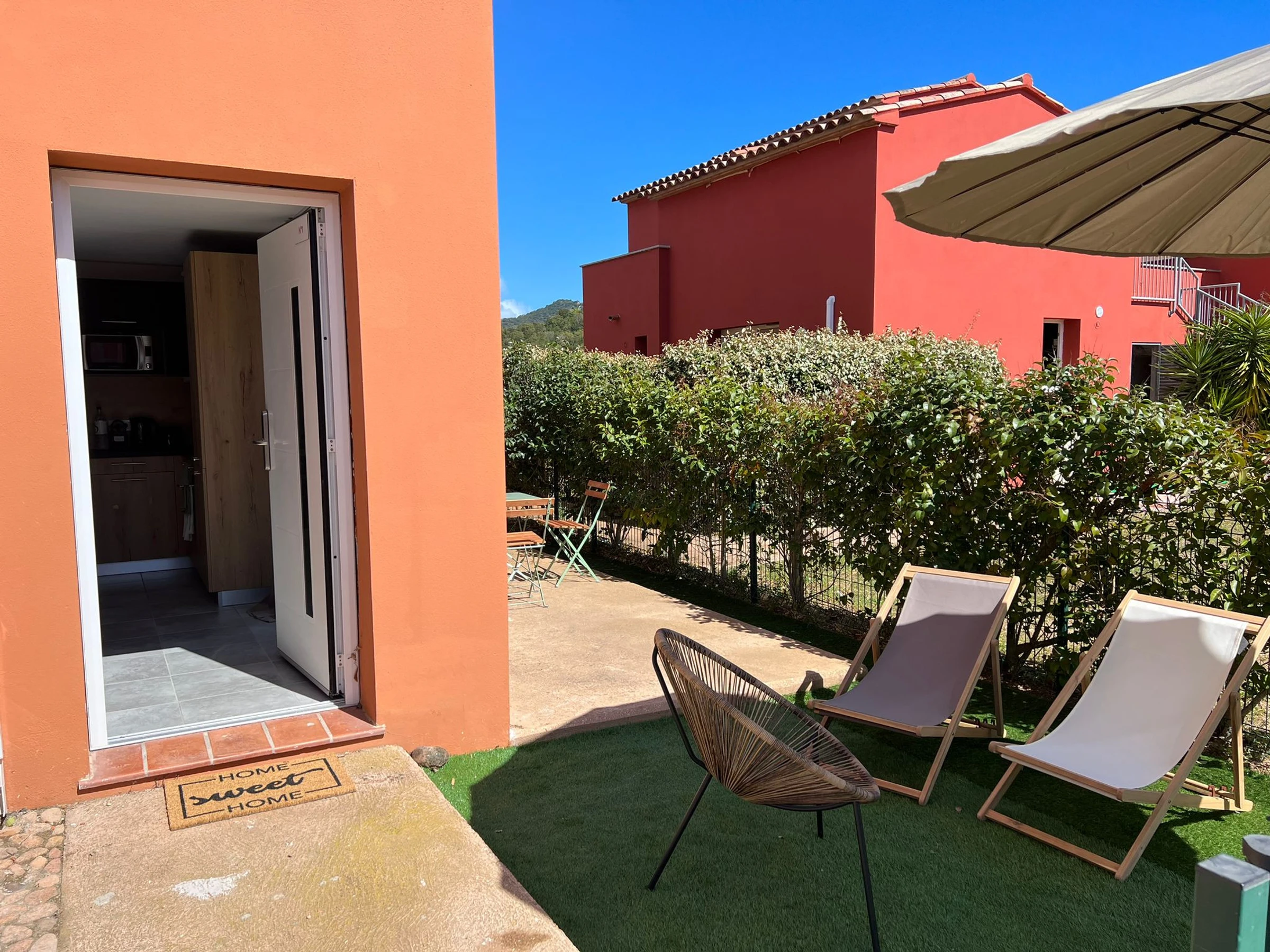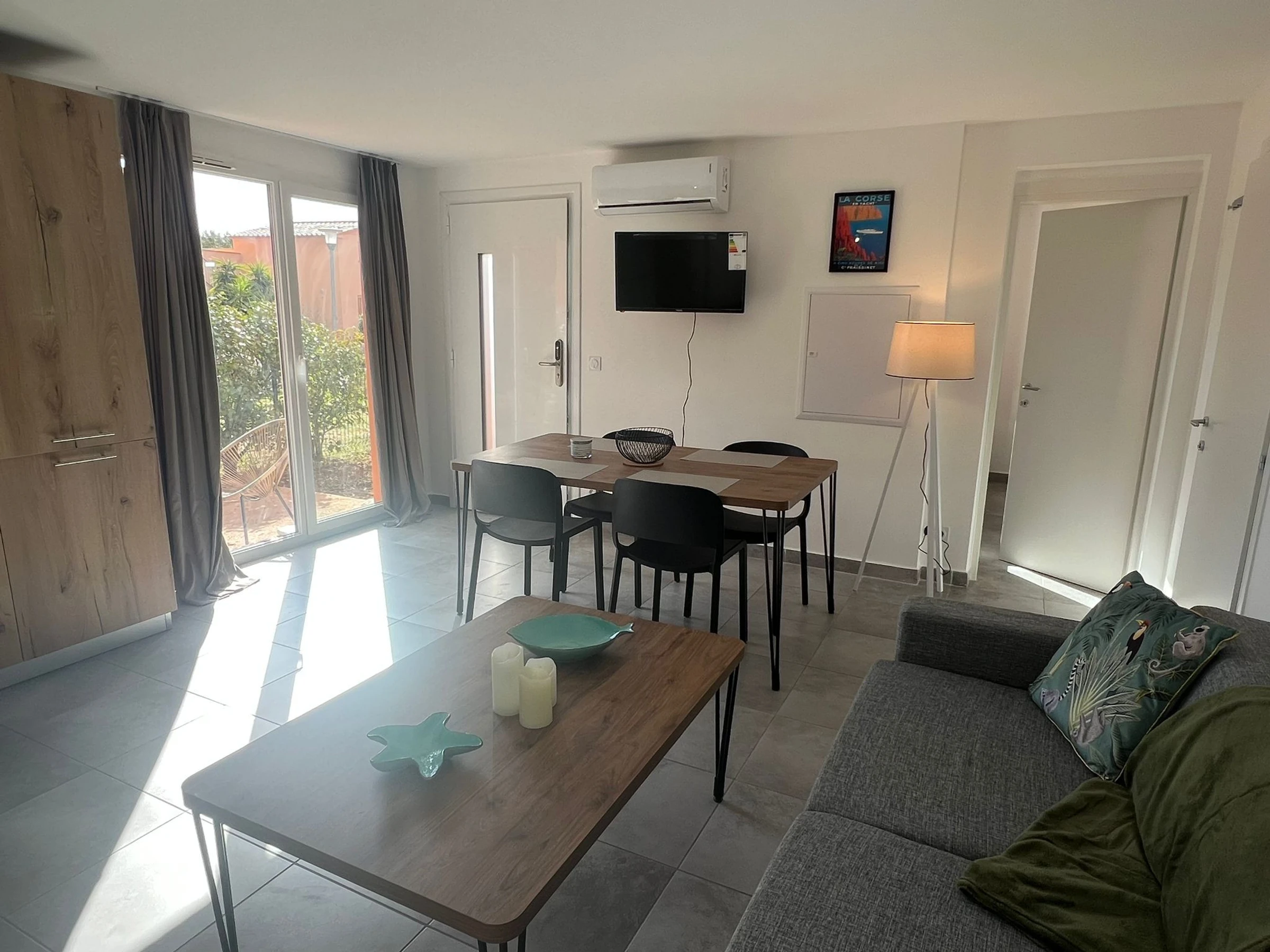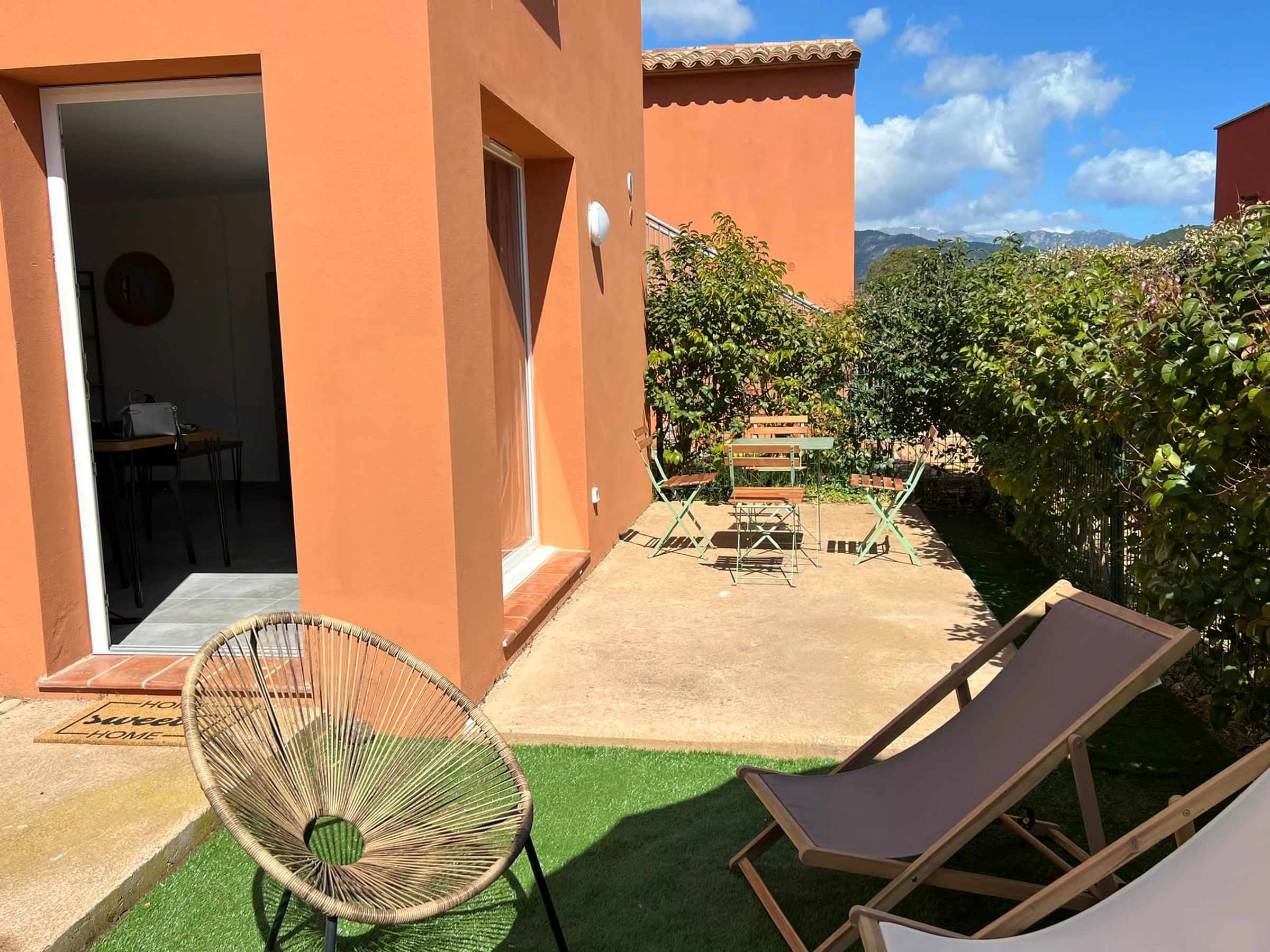 Il dispose d'une terrasse et d'un petit jardin ,du mobilier de jardin, une climatisation, un chauffage électrique, parking privé gratuit.