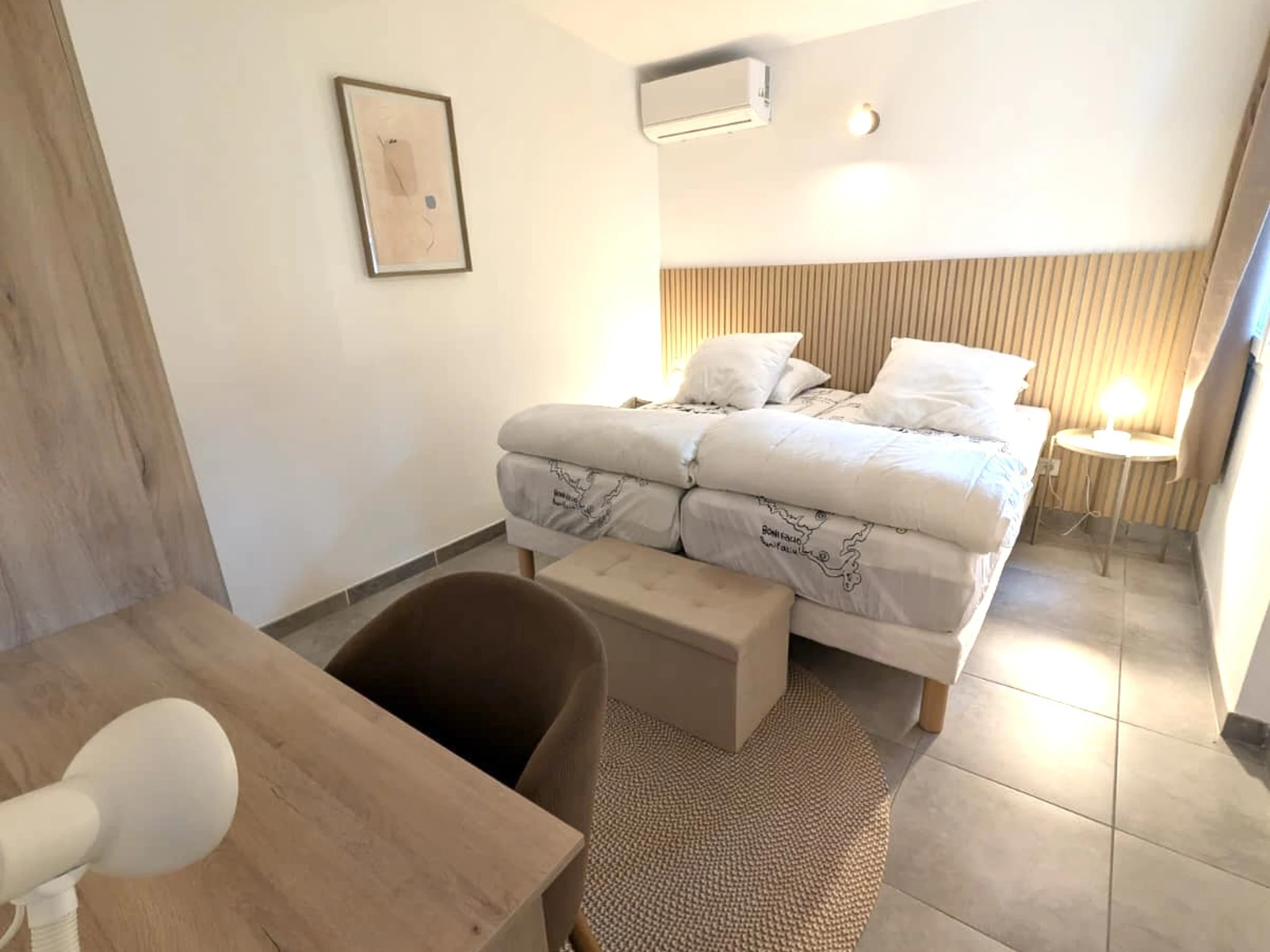 La résidence propose une piscine partagée de 200m², idéale pour se détendre et profiter de moments de fraîcheur. Côté pratique, deux places de parking privées sont disponibles à proximité du logement. La climatisation et des radiateurs électriques assureront votre confort été comme hiver.