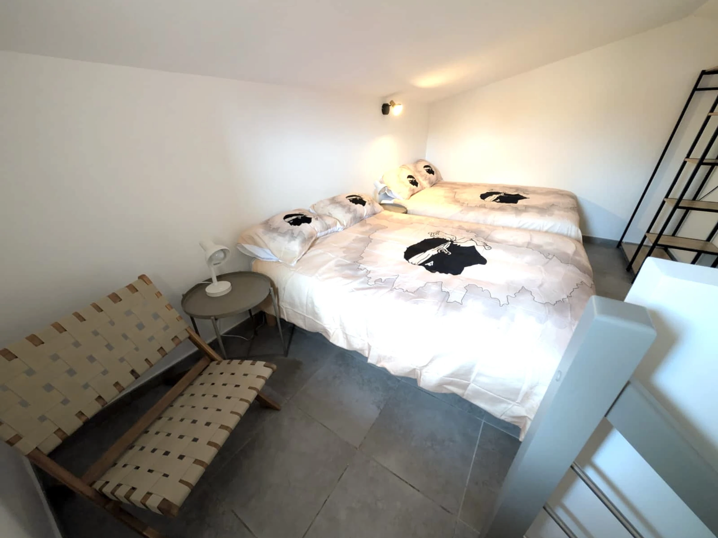 L'intérieur dispose de deux chambres confortables : l'une équipée d'un lit king size et l'autre d'un canapé-lit double, garantissant un repos optimal pour tous les occupants. La cuisine américaine entièrement équipée vous permettra de préparer de délicieux repas avec ses nombreux équipements : réfrigérateur, congélateur, four, micro-ondes, machine à café, et bien plus encore.