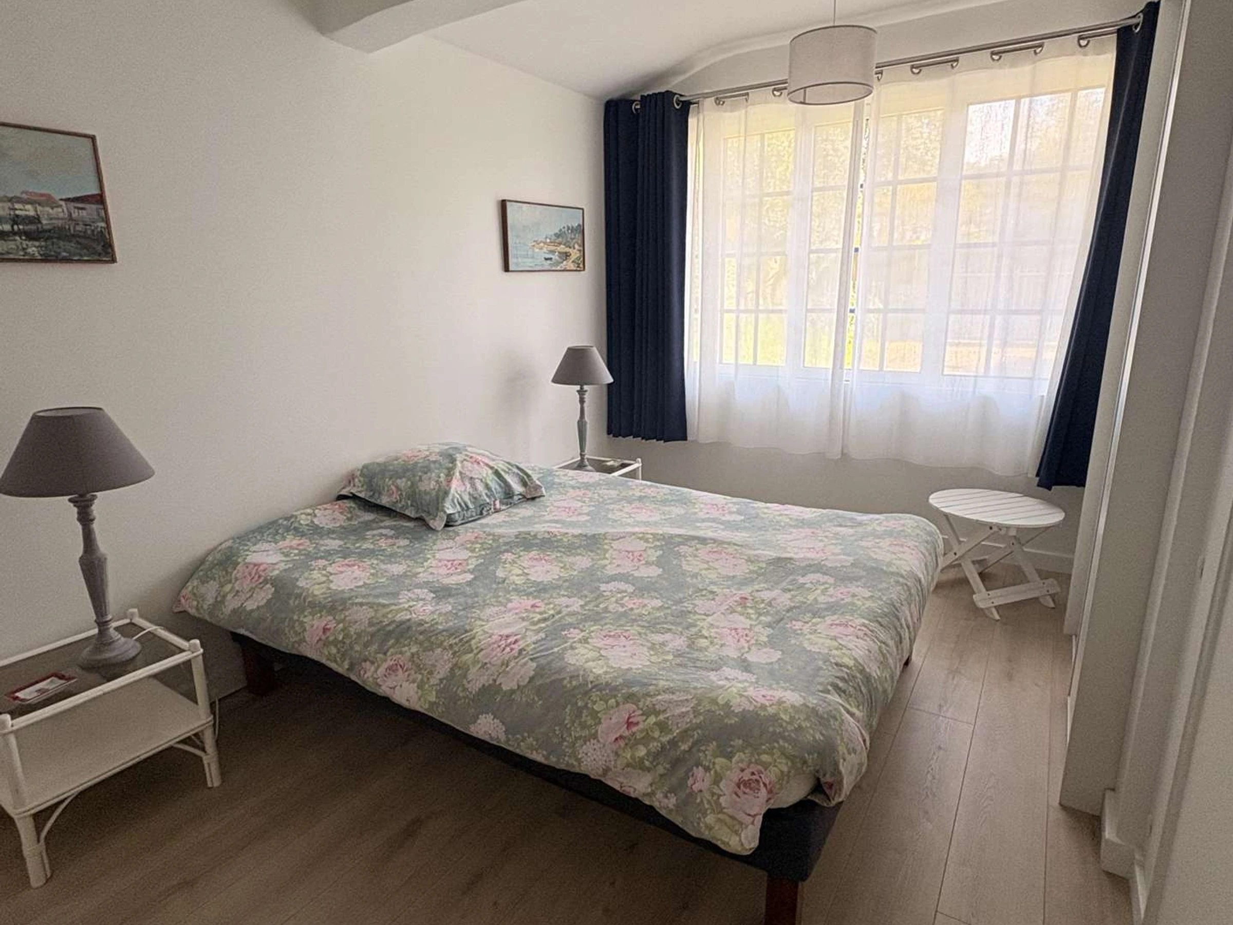 La propriété comprend 4 chambres, dont 3 dans la maison et une chambre supplémentaire dans le cabanon. Les 3 chambres de la maison disposent d'un lit en 140, dont l'une avec sa salle d'eau privative (douche à l'italienne, double vasque) et télévision, donnant directement sur la terrasse. Une salle d'eau indépendante et des WC séparés viennent parfaire l’aménagement.