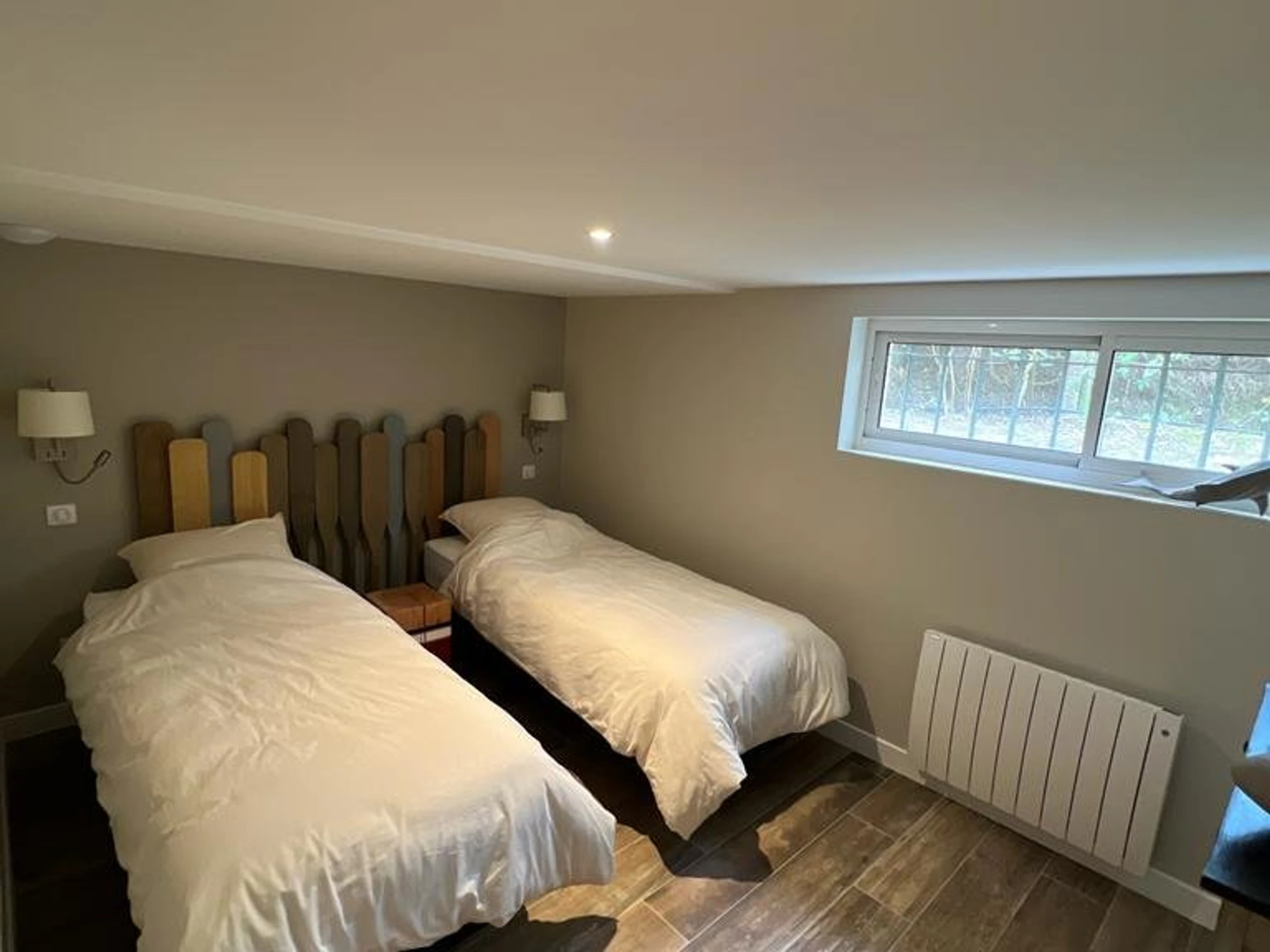 Du rez-de-chaussée, un deuxième escalier vous mène au rez-de-jardin, comprenant une chambre avec un lit 160, deux chambres avec chacune deux lits 80, une salle de bain (baignoire et douche), un wc indépendant, ainsi qu'une buanderie et un garage pour vélos.