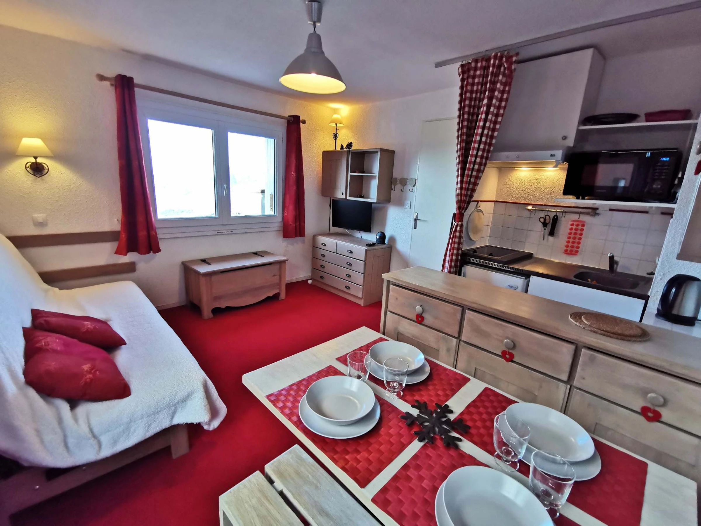 Studio cabine supérieur proche pistes, 4 pers, balcon sud, casier à ski