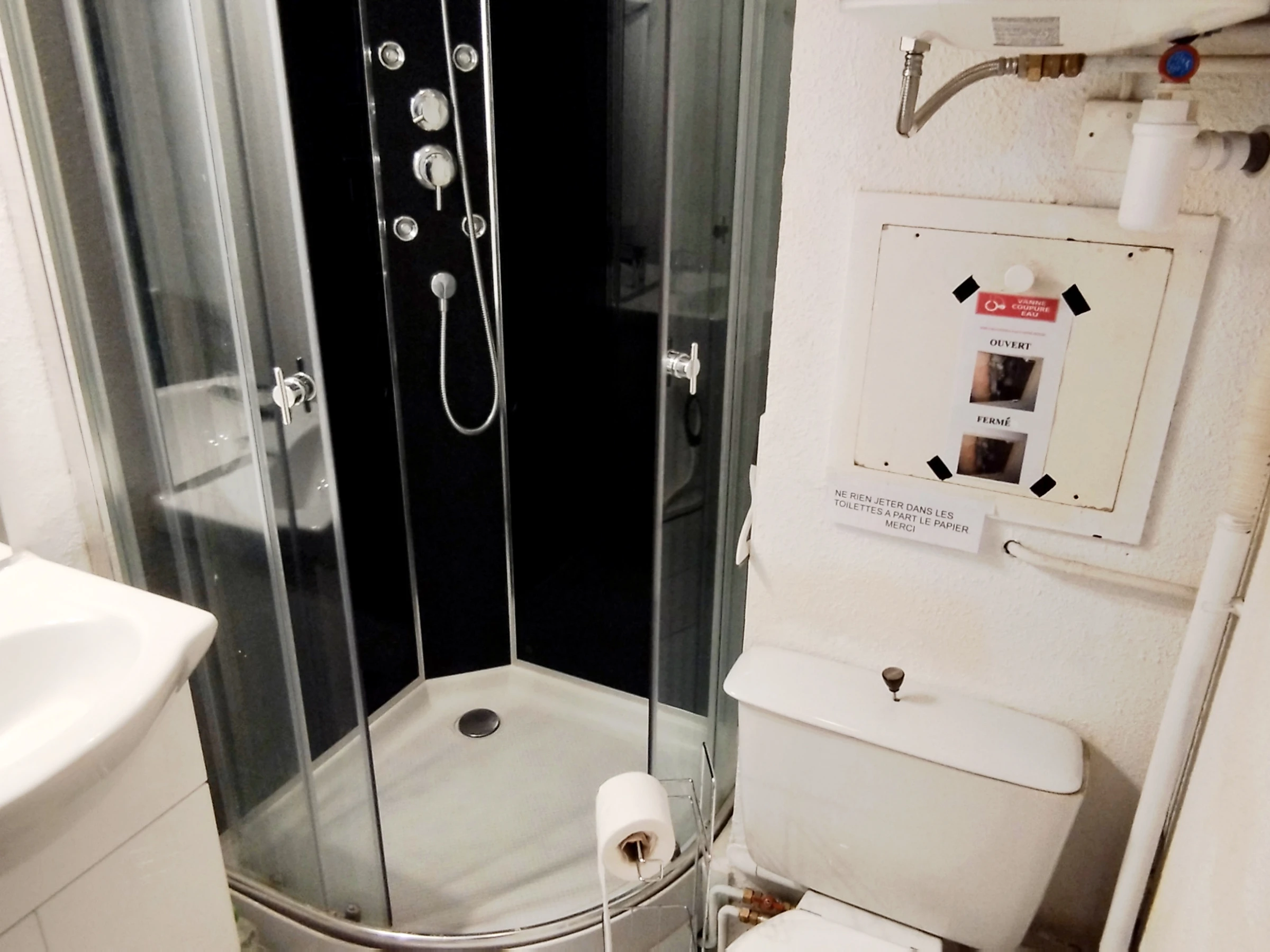 - Kitchenette : 1 plaque induc 2 feux, lave vaisselle, frigo, micro onde, cafetière TASSIMO