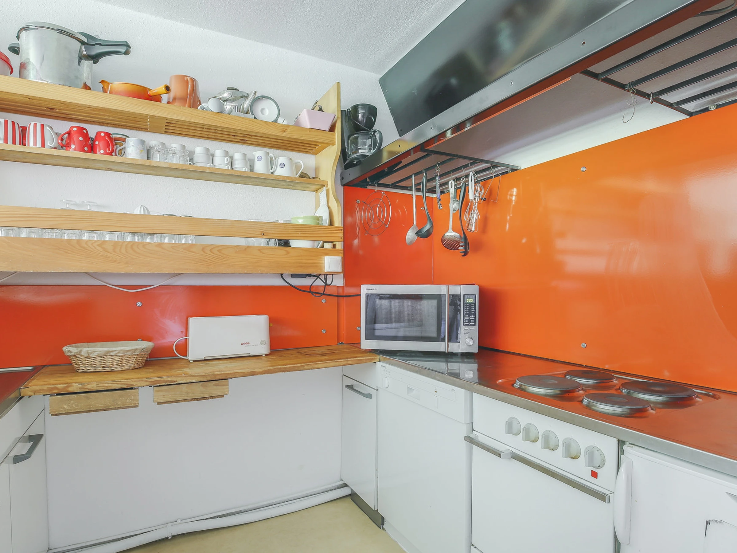 Il est équipé de plaques électriques, d'un combiné four micro-ondes, d'un lave-vaisselle et d'un réfrigérateur.