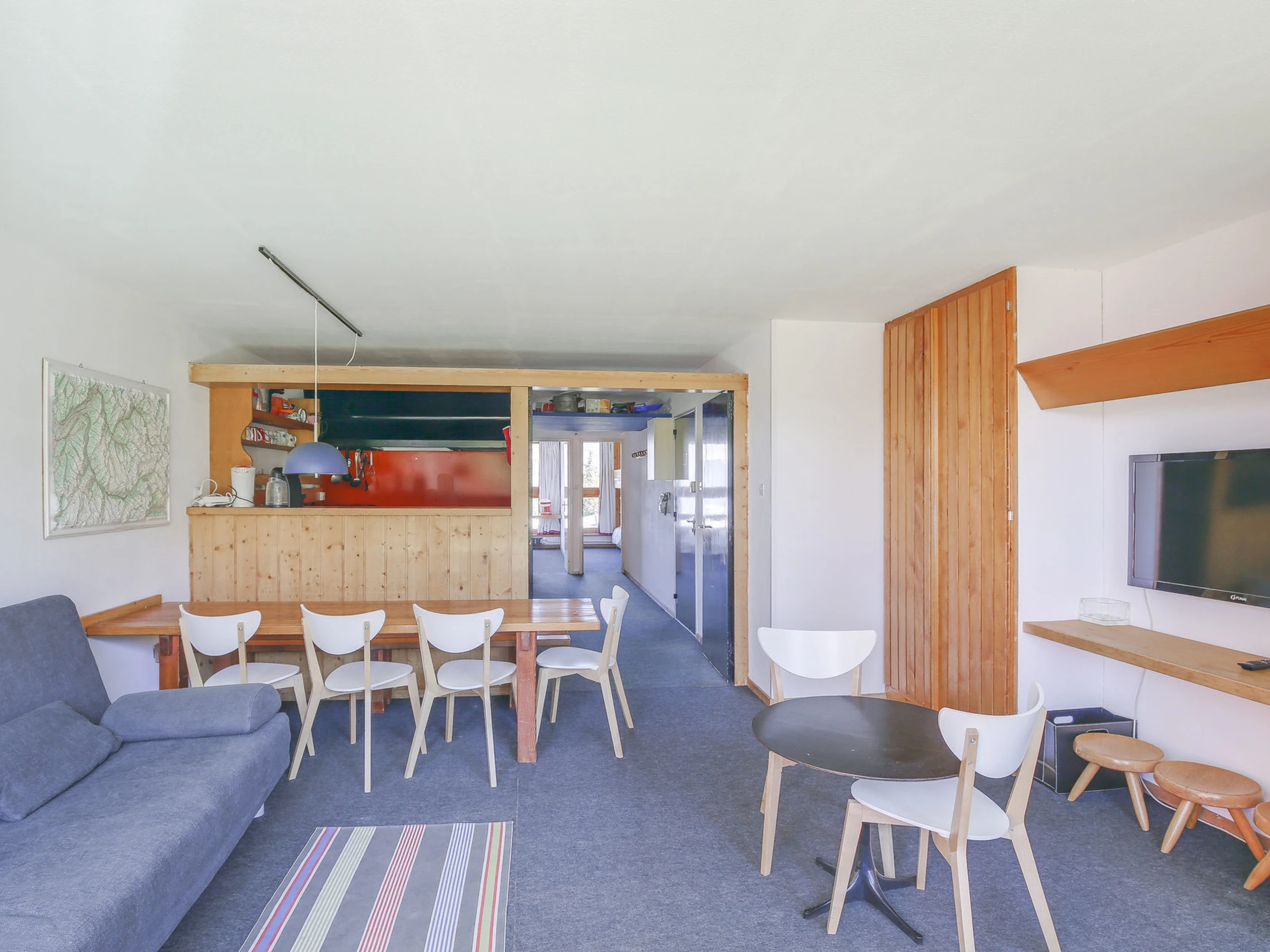 Pour vos vacances à la montagne en hiver ou en été dans la station d'Arc 1600, réservez cet appartement de 3 pièces avec un balcon exposé Sud avec une vue sur les pistes.