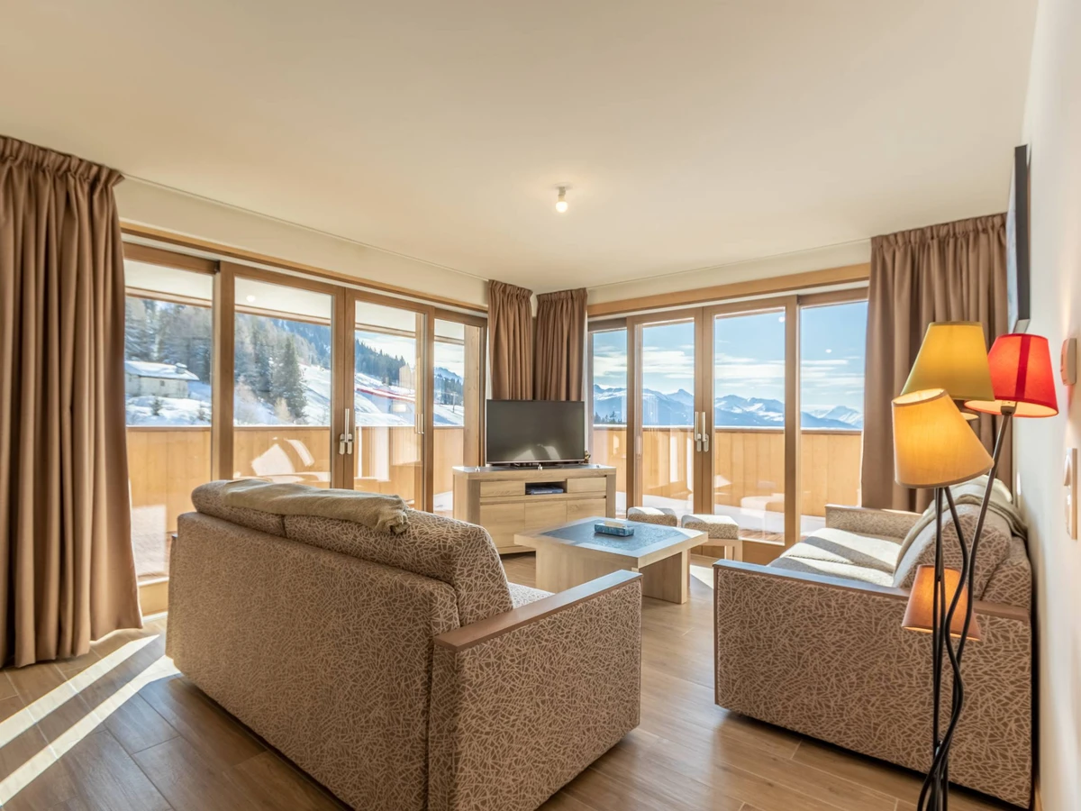 Avec son orientation Sud-Ouest, certains appartements du RIDGE bénéficient d'une vue panoramique sur les montagnes et la vallée de Haute-Tarentaise : Ensoleillement maximum et couchers de soleil flamboyants garantis.