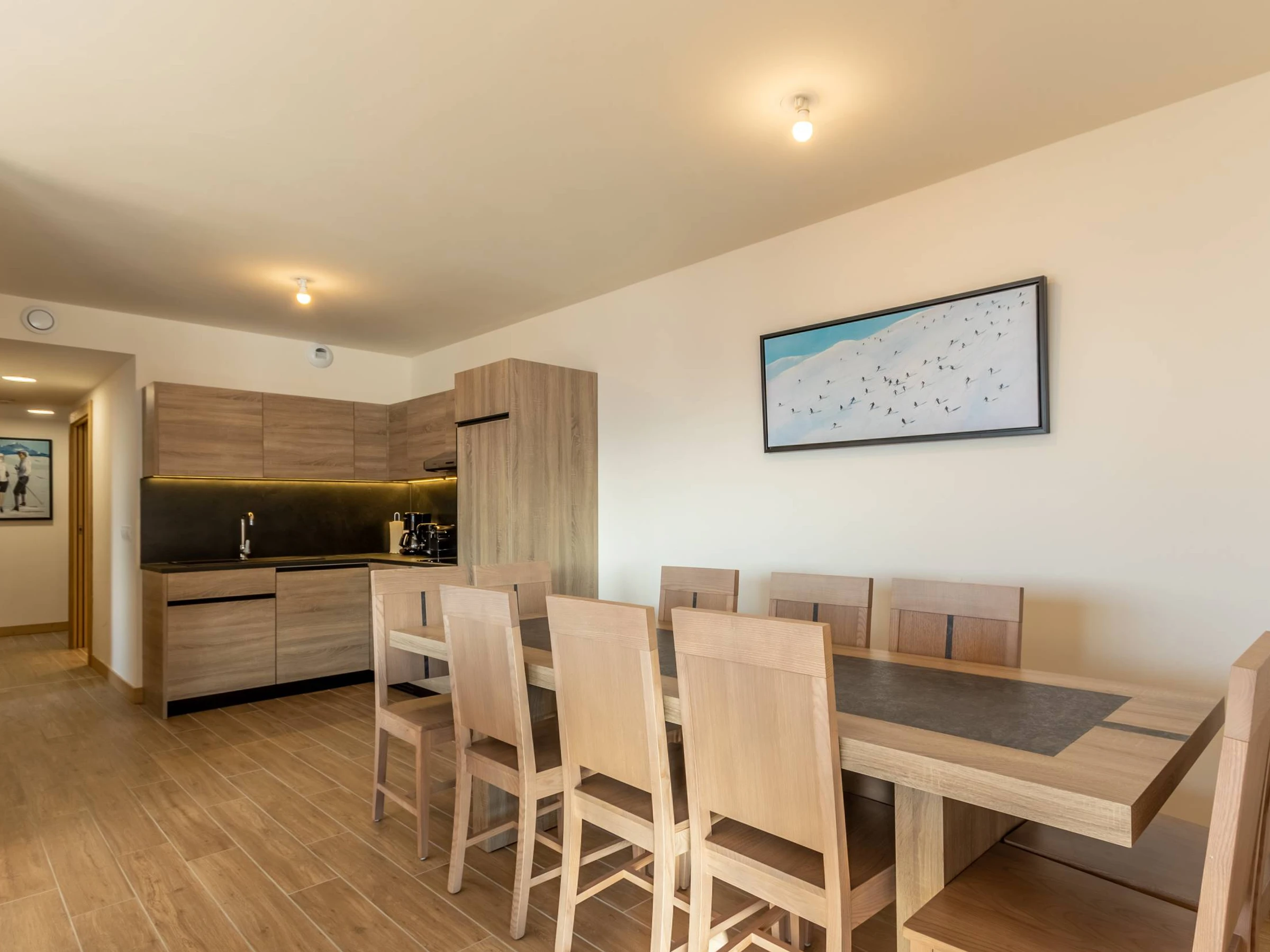 Décoration cosy et contemporaine, finitions intérieures haut de gamme. Situé au 3ème étage avec ascenseur. Lits faits à l'arrivée. Linge de toilette inclus. 1 place de parking couverte incluse (hauteur max 2m05). WIFI. Casier à ski avec accès direct aux pistes. Chauffage au sol. Accès à l'espace bien-être avec piscine, sauna, hammam et salle de sport.