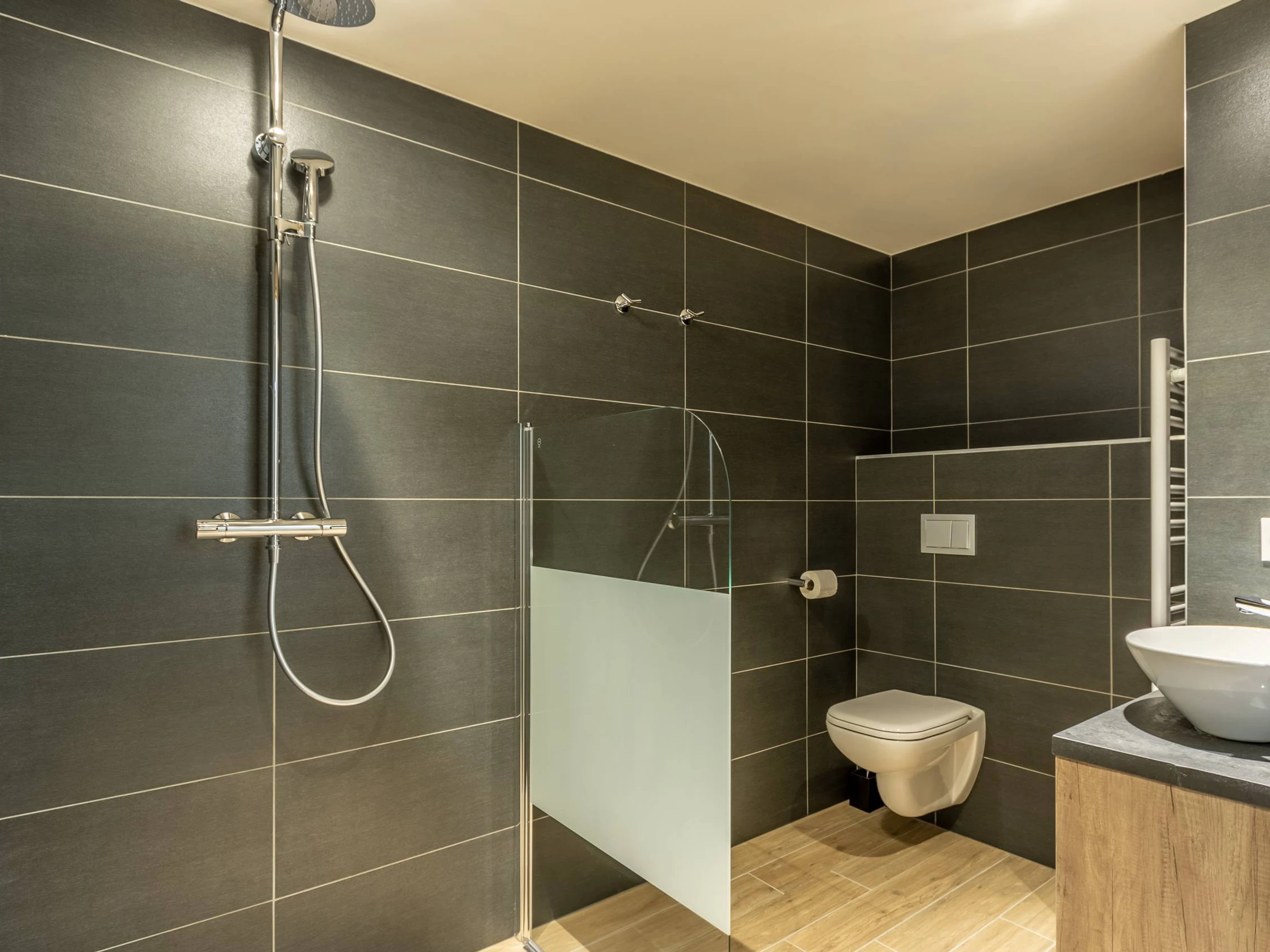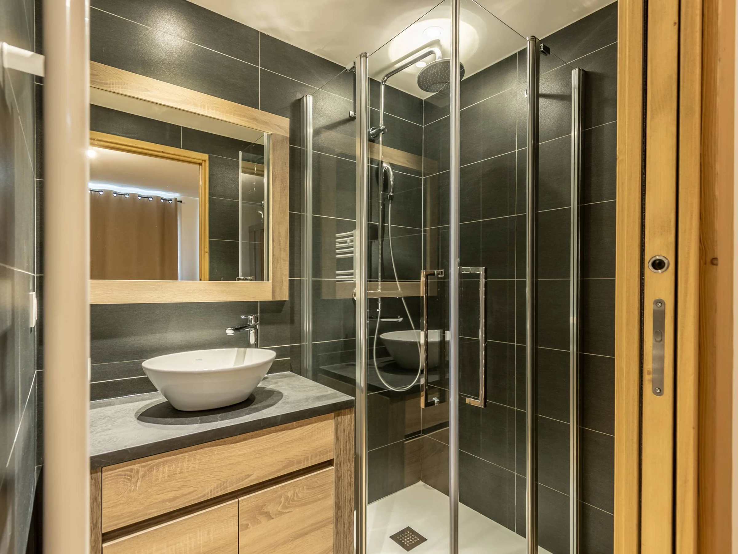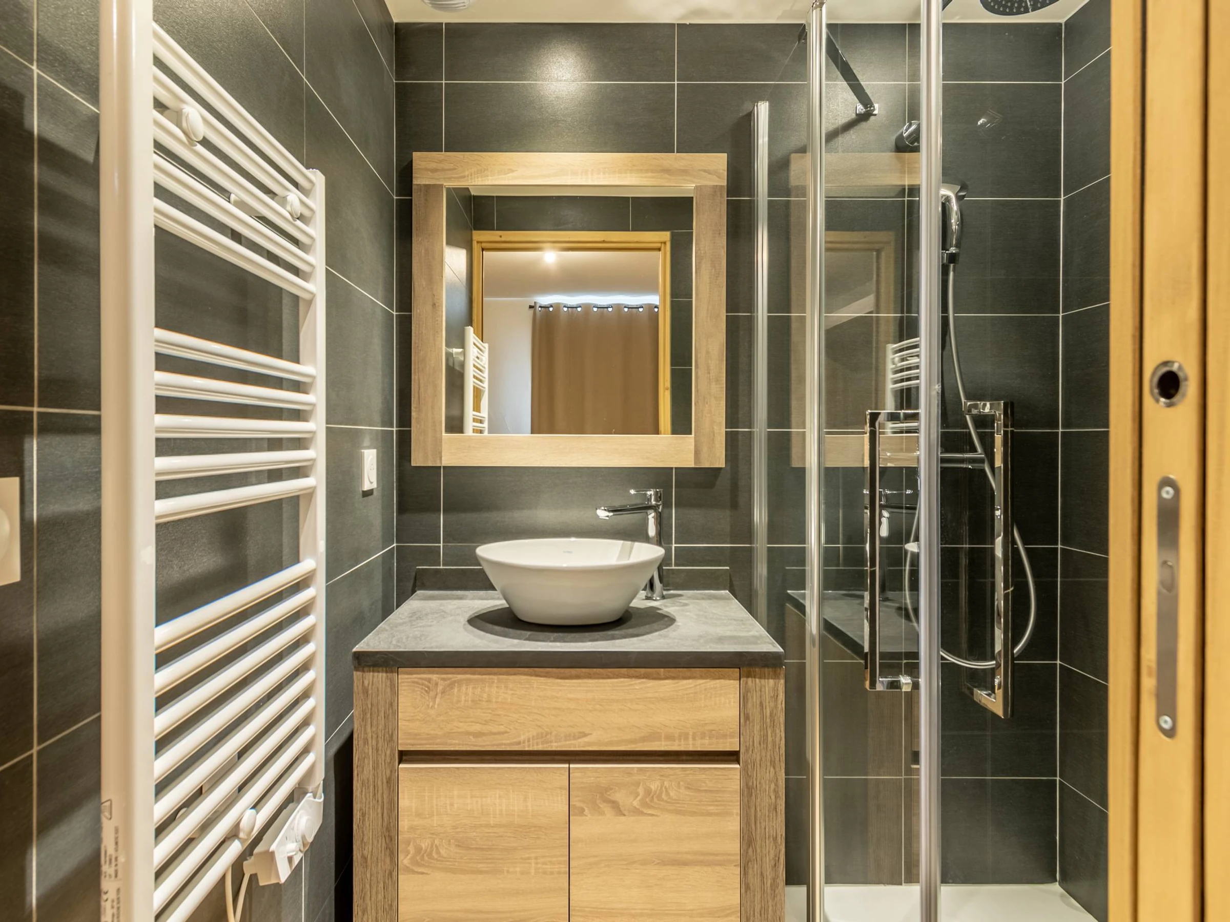 - 1 salle de douche avec sèche-serviettes et WC, équipé PMR,