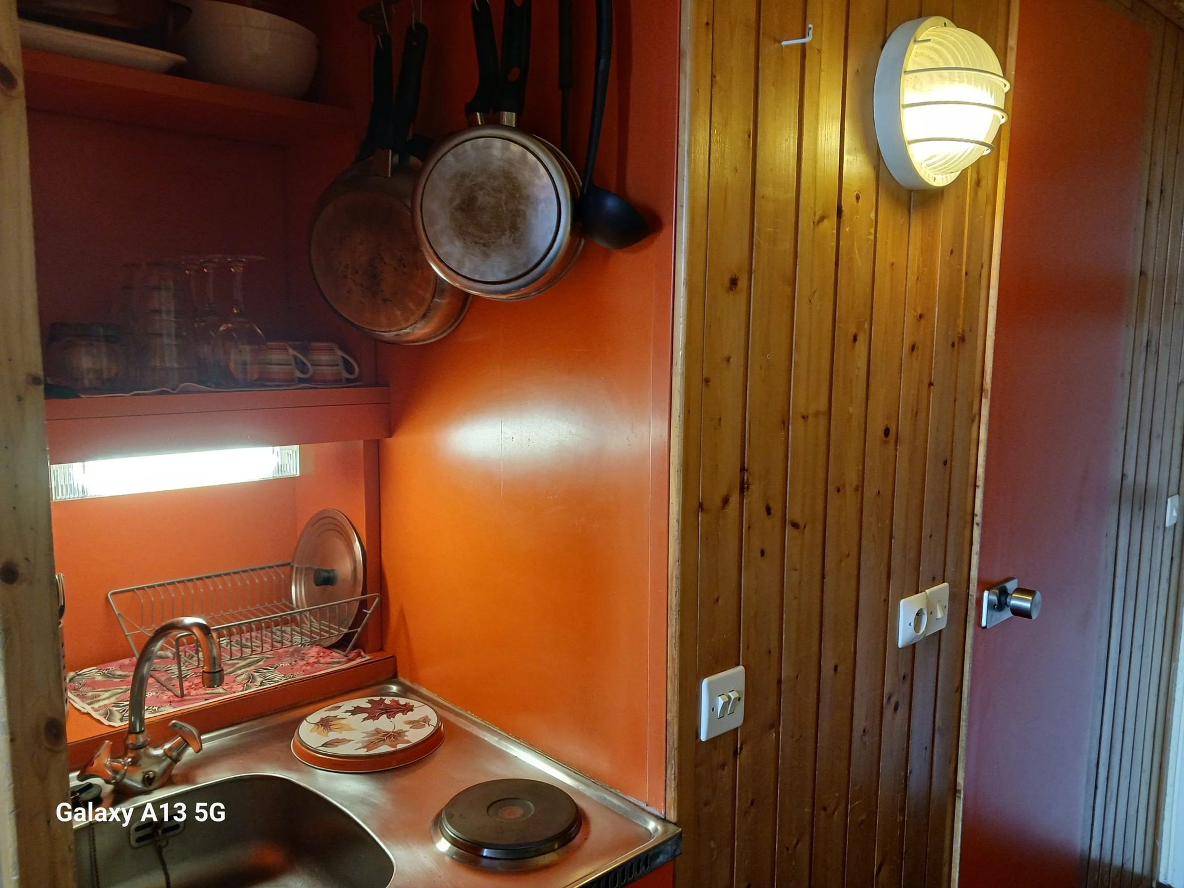 Elle est entièrement équipée avec des plaques électriques, un combiné four, un réfrigérateur, un grille-pain, une bouilloire, une cafetière