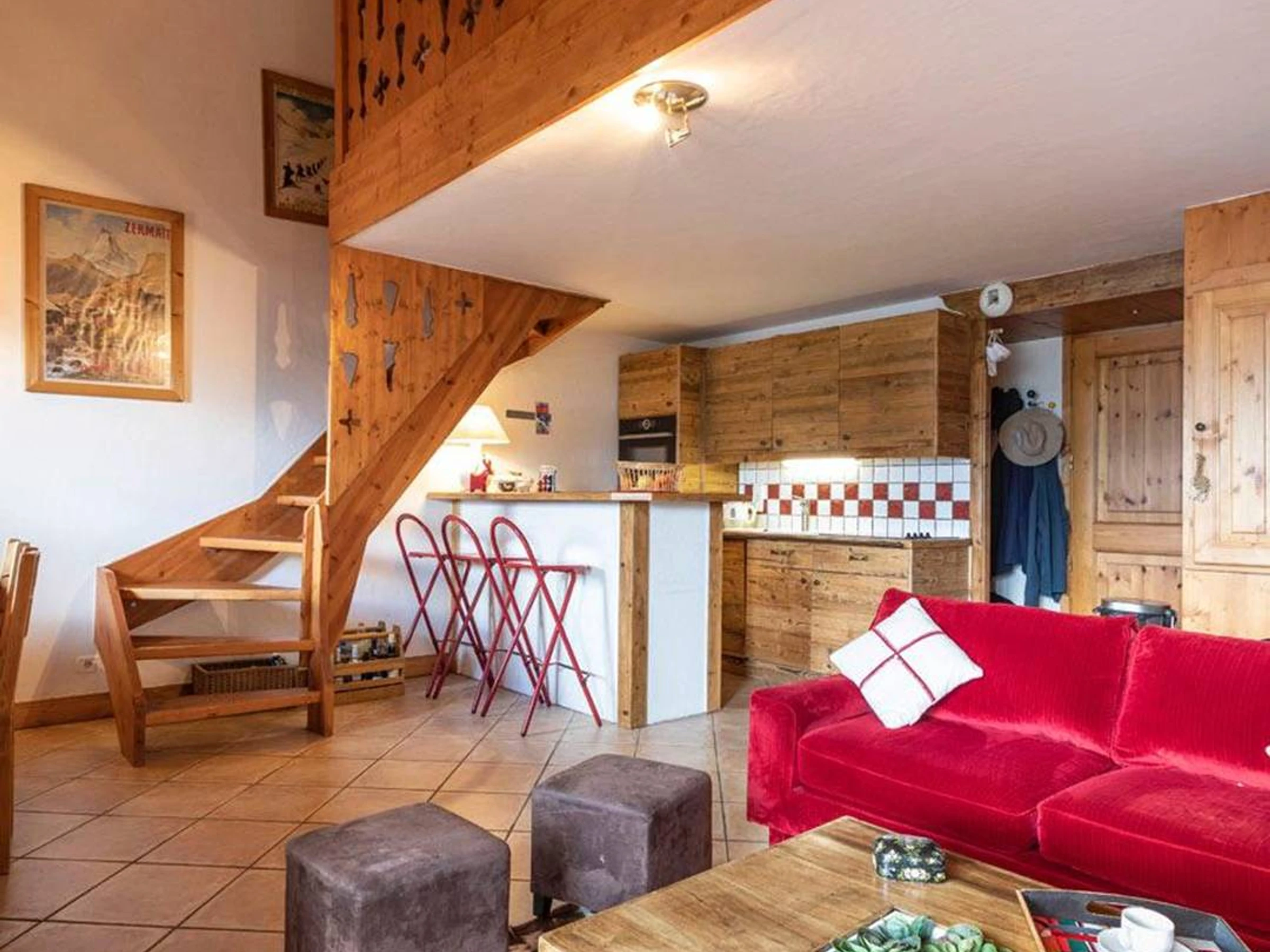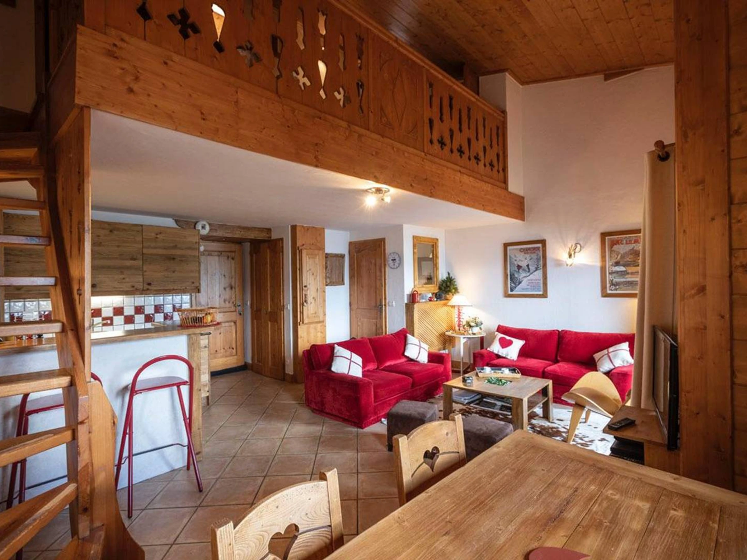 Appartement en duplex 3 chambres + mezzanine, 70m², 8 personnes avec balcon, au 1er étage (entrée résidence) avec ascenseur, skis aux pieds