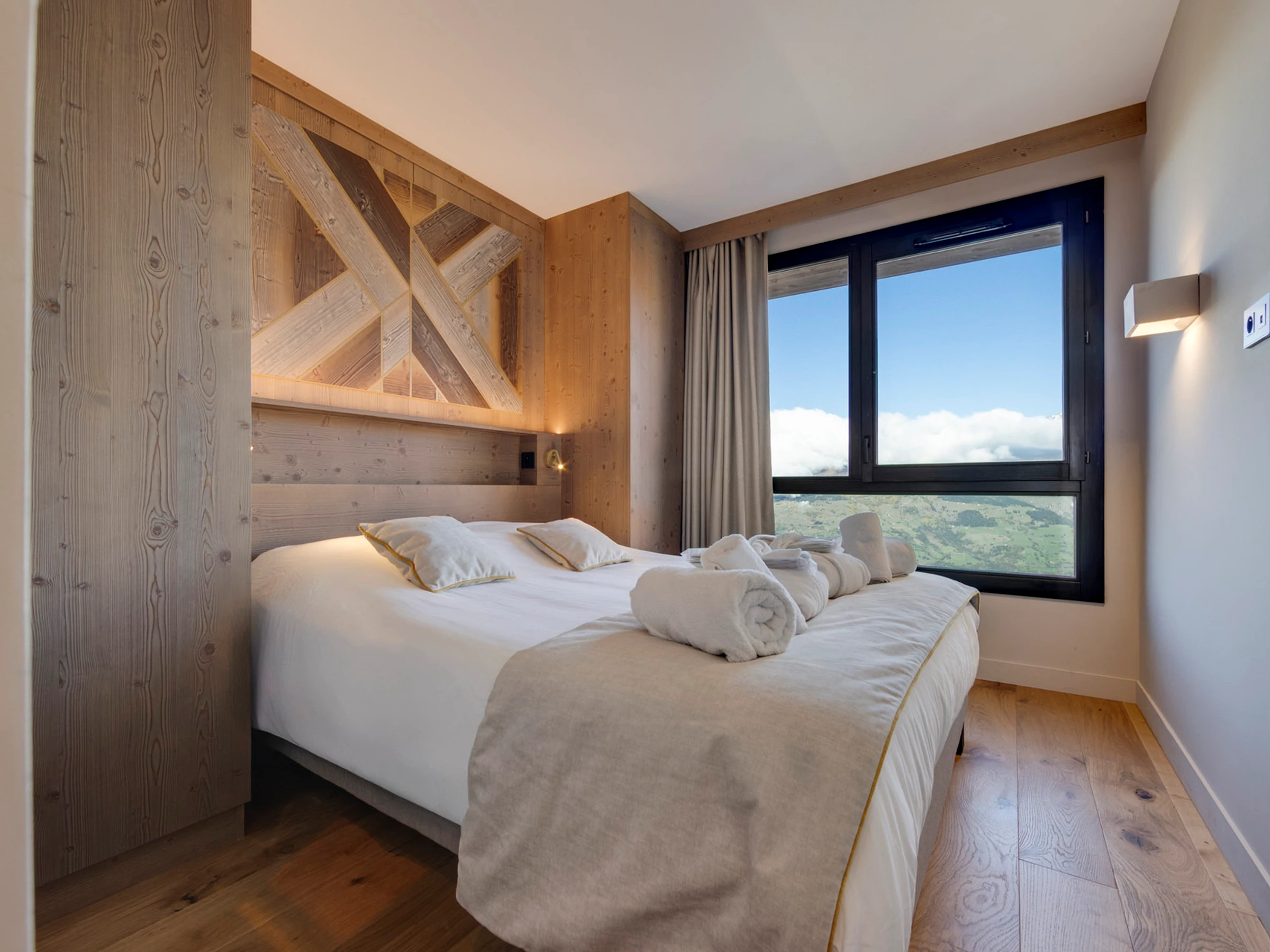 Appartement B31 en duplex dans la résidence Les Cristaux d'une superficie de 90m², quarier du Chantel à Arc 1800, à côté des commerces et au pied des pistes. Il est équipé de 3 chambres et peut accueillir 6 adultes.