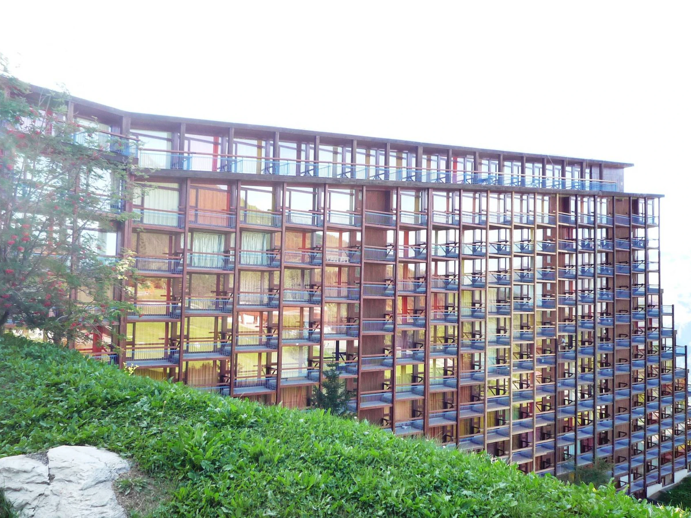 Ce studio de 30m² pouvant accueillir jusqu'à 5 personnes est situé au 8ème étage avec ascenseur de la résidence Pierra Menta, 3ème étage vu de l'extérieur.