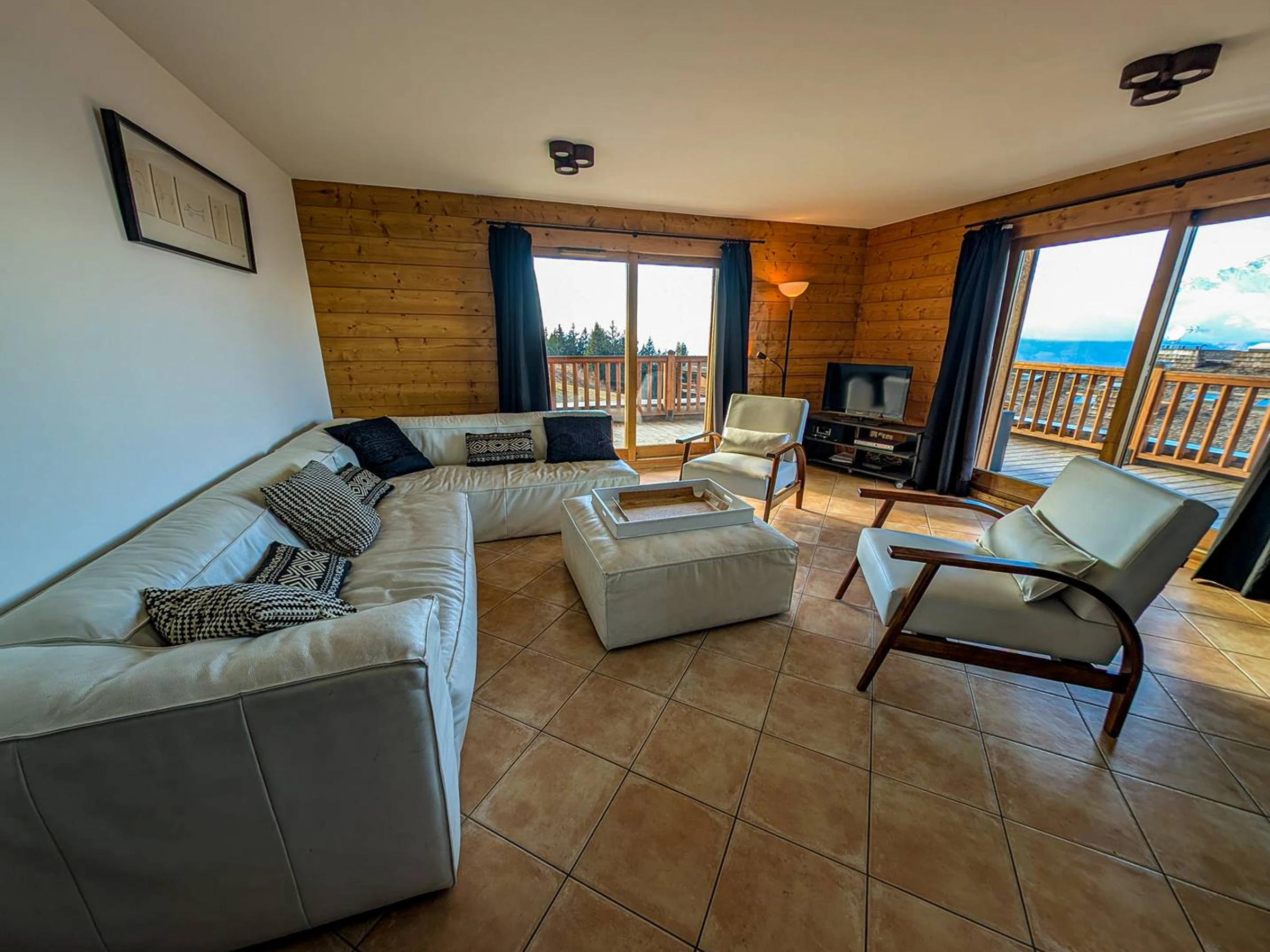 ARCS 1800 – Résidence 4 cristaux : L'ISERAN. Dans un esprit de décoration moderne 'Lounge', magnifique appartement 6 Pièces, avec terrasse panoramique, exposé sud-ouest et une vue exceptionnelle sur la vallée et le Mont Blanc. Une résidence 46 appartements de grand standing ski aux pieds l'hiver, bénéficiant d'un panorama somptueux et d'une piscine couverte chauffée.