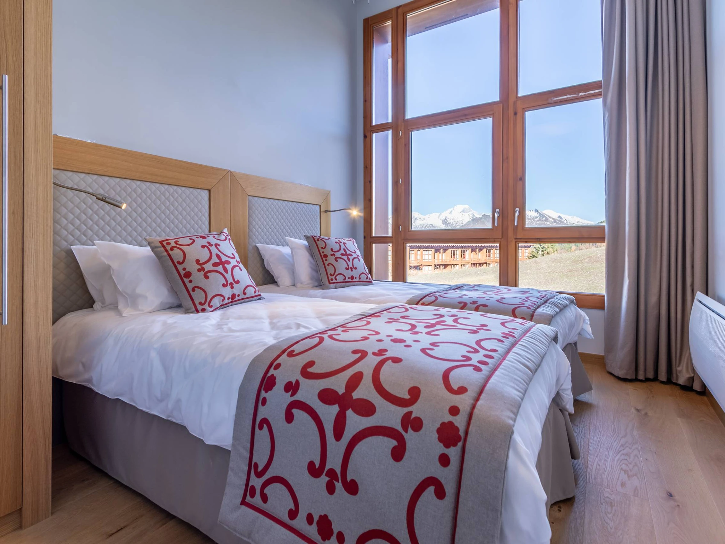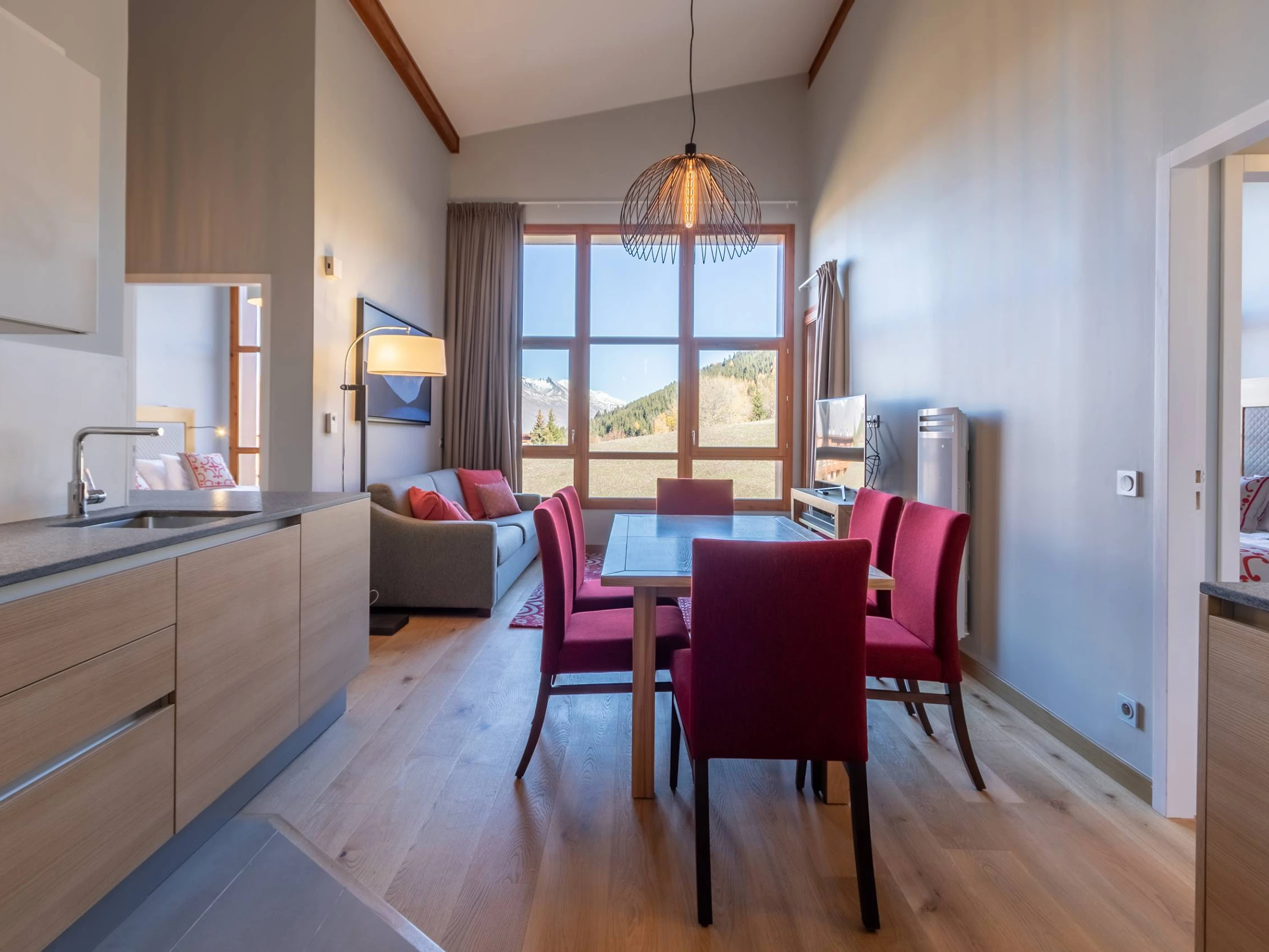 ARCS 1800 - Résidence premium 4* : LES MONARQUES, ambiance cosy et moderne pour cet appartement 4 pièces, de 73m2, avec un balcon offrant une vue magnifique sur le Mont blanc. Exposition Nord. Prestations incluses : piscine, spa et salle de fitness sur le site exceptionnel d'Edenarc au Chantel à Arc 1800, au coeur du domaine skiable Paradiski. Résidence de standing avec prestations hôtelières, ski aux pieds l’hiver et à côté du terrain de golf l’été.